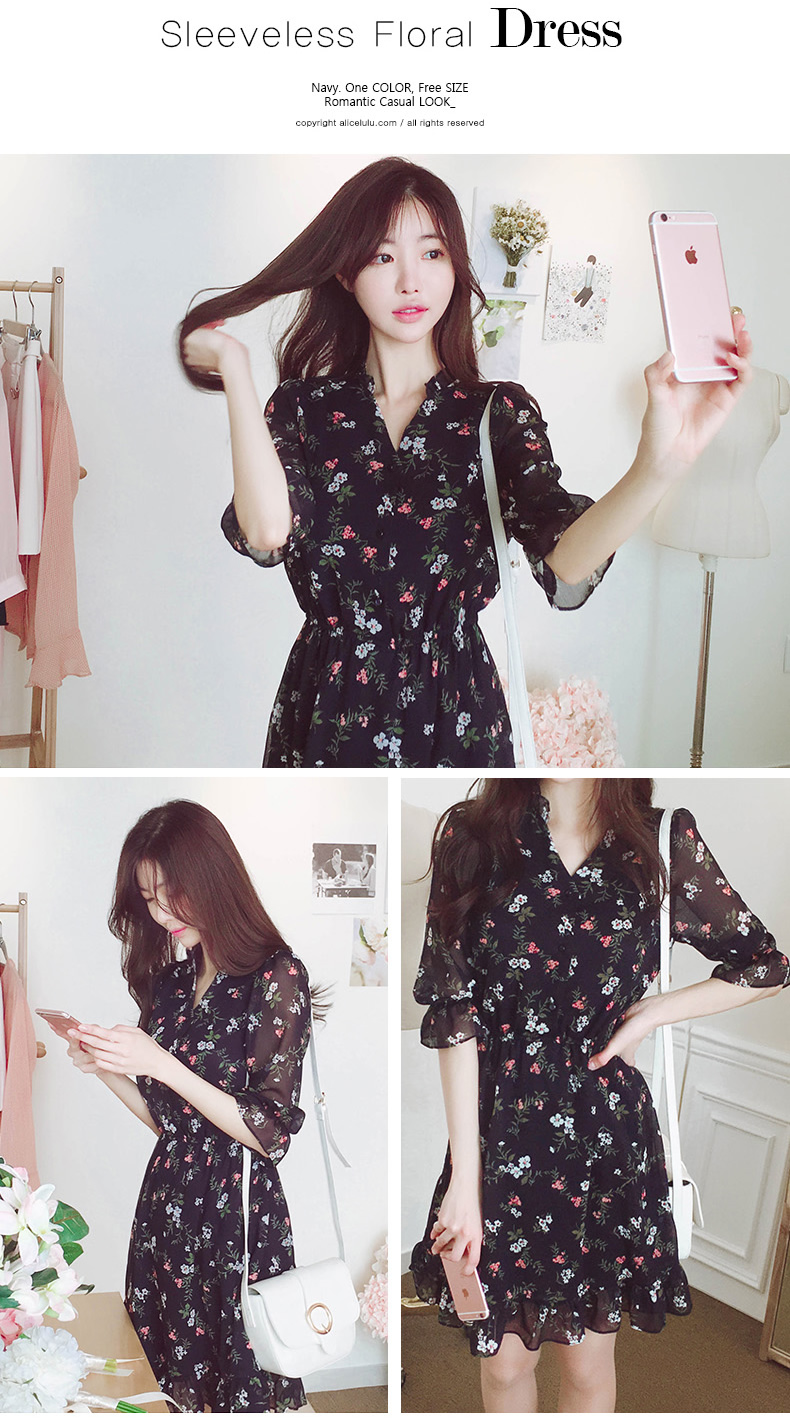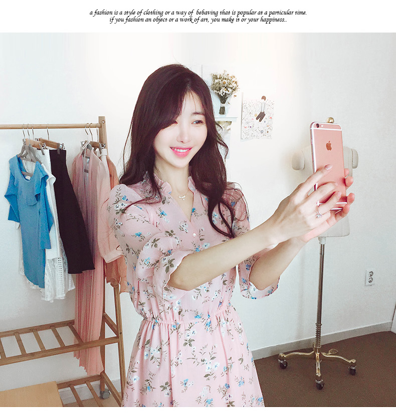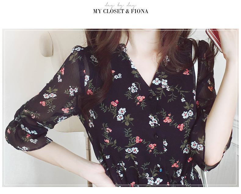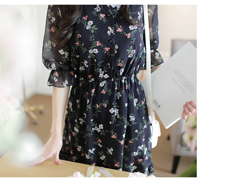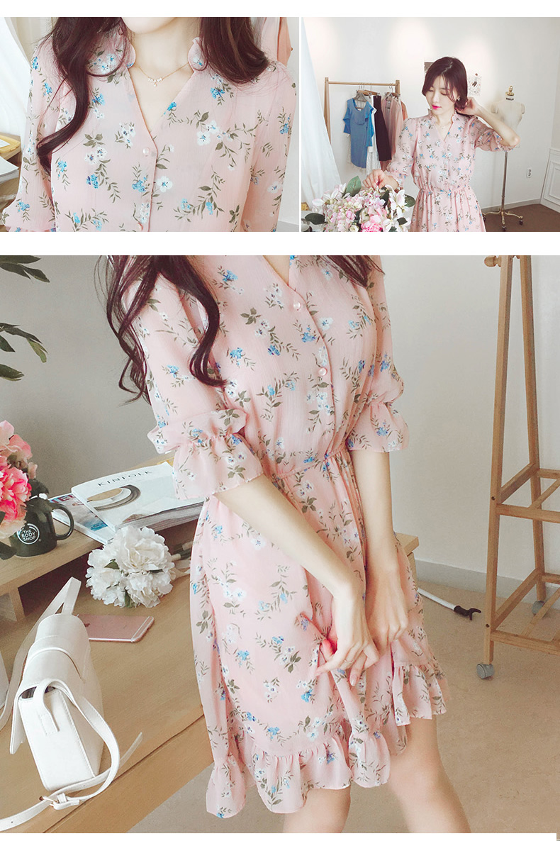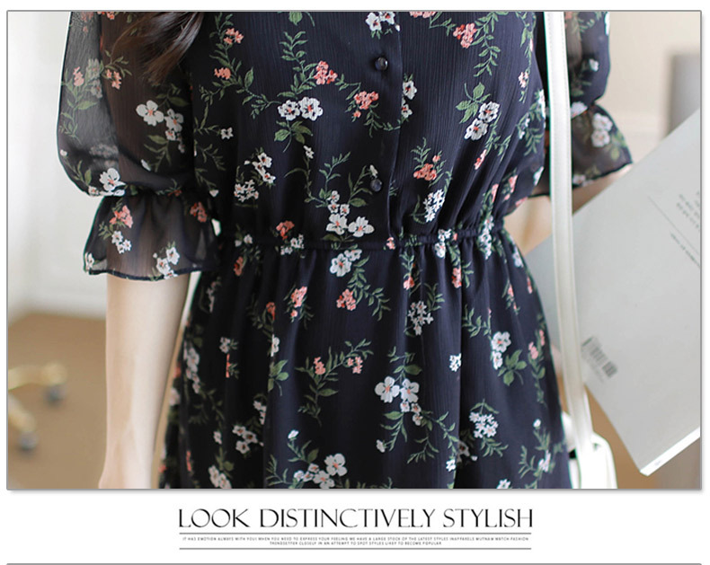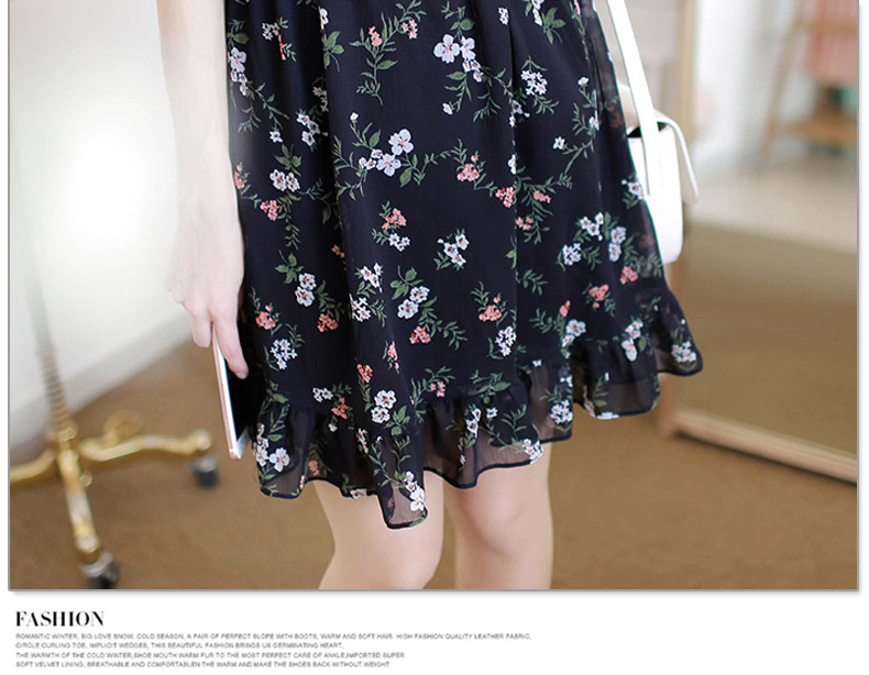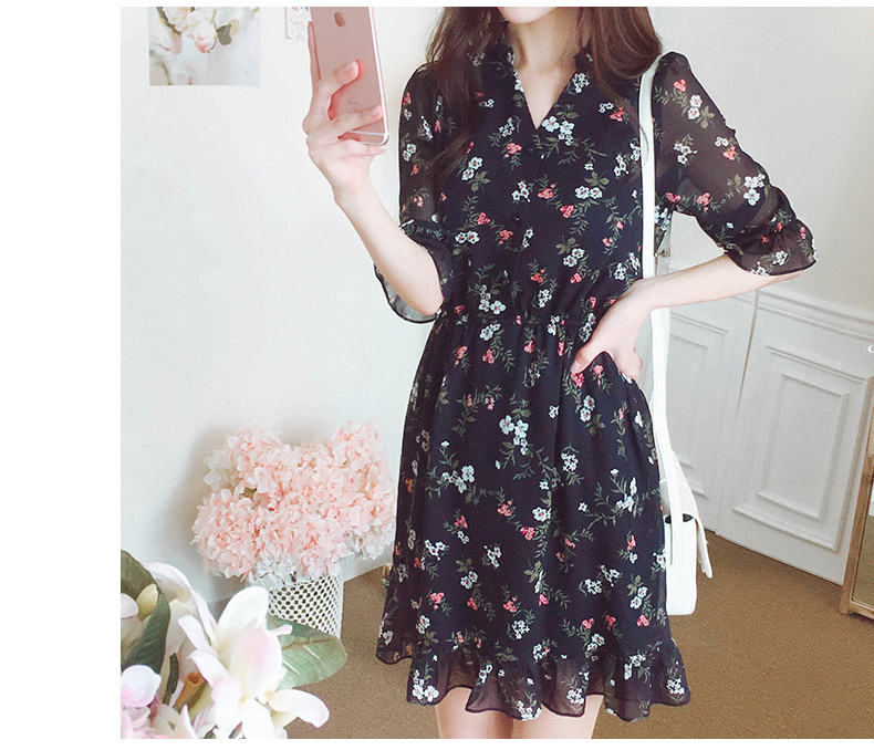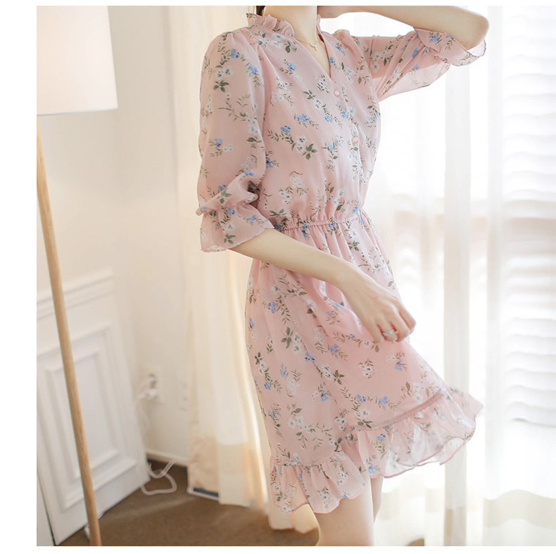 法式桔梗收腰连衣裙很仙的雪纺碎花裙少女小个子仙女裙chic裙春秋