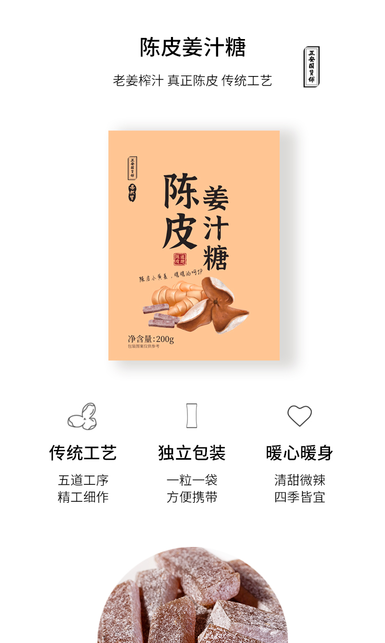 正安国货铺 陈皮姜汁糖 老姜榨汁风味陈皮清甜微辣休闲零食