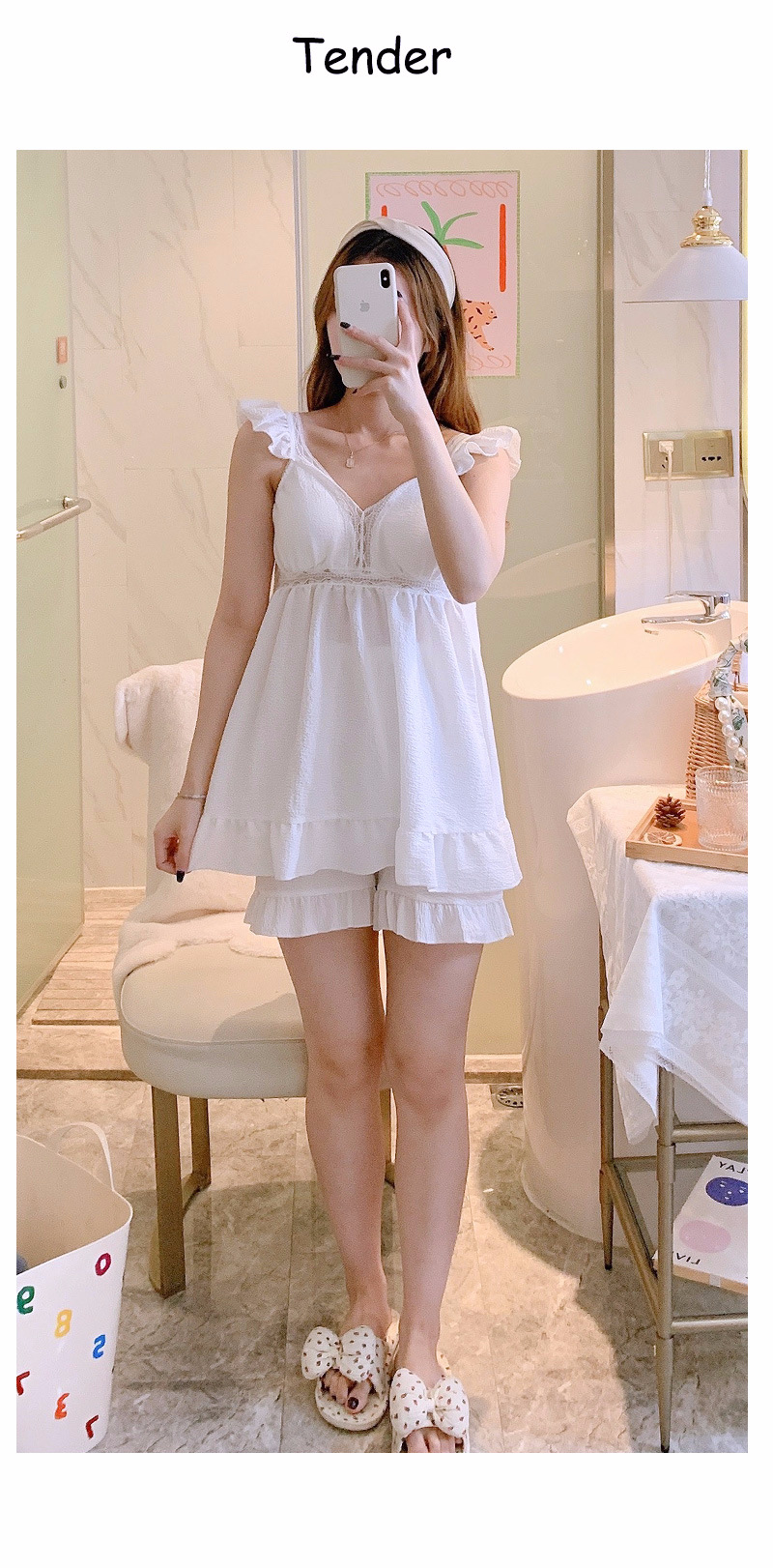 无袖背心带胸垫花边睡衣仙女套装 QYSY980