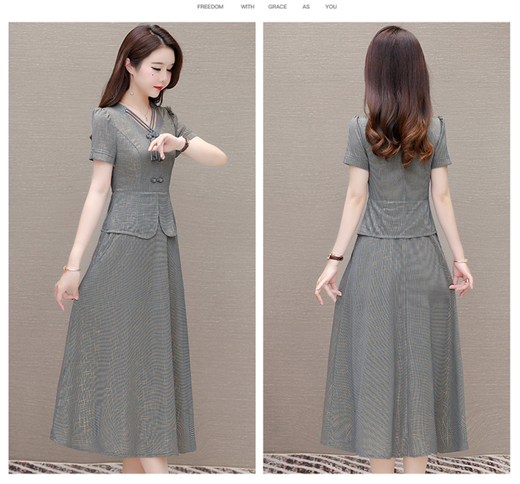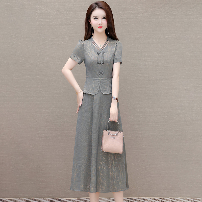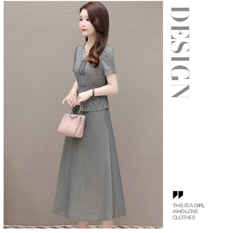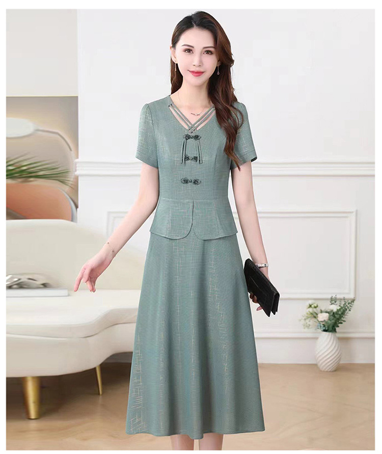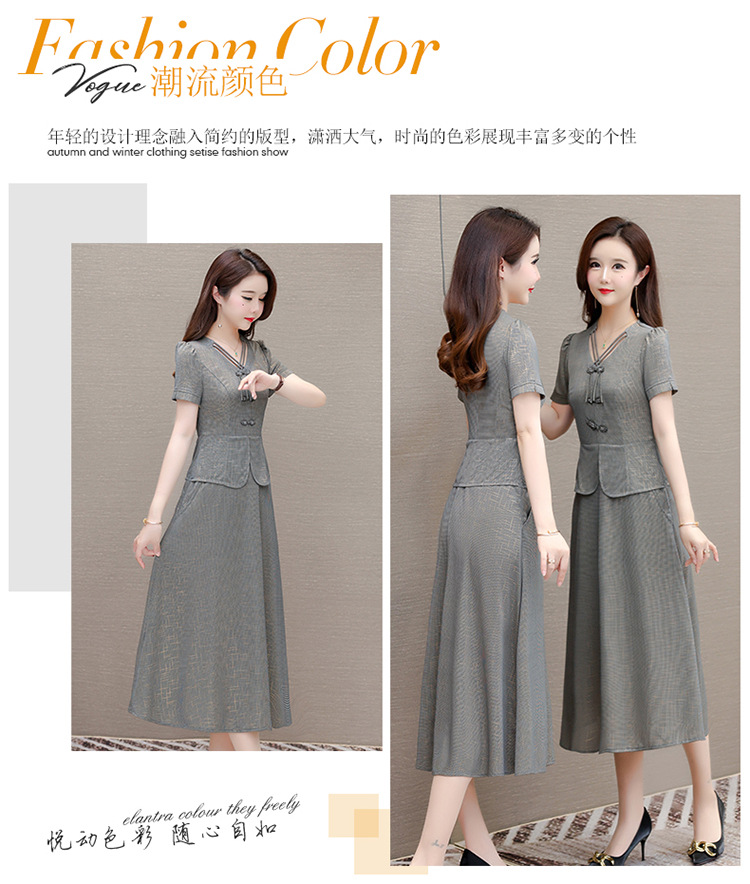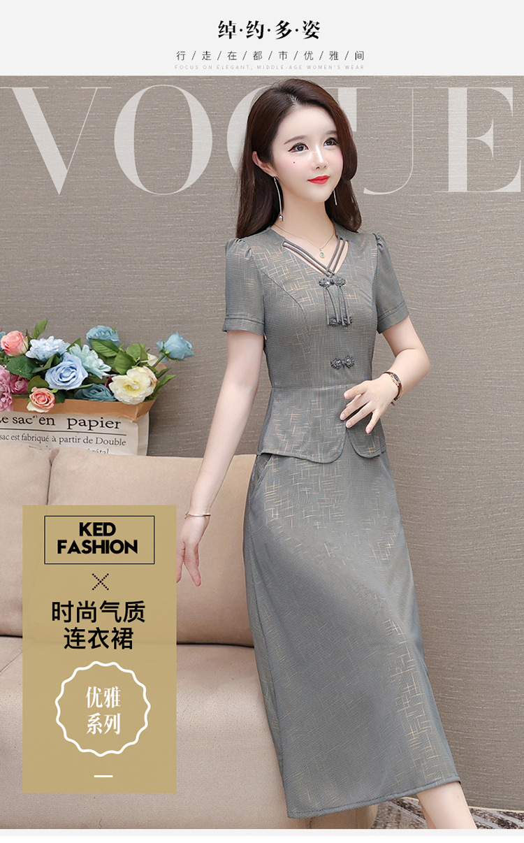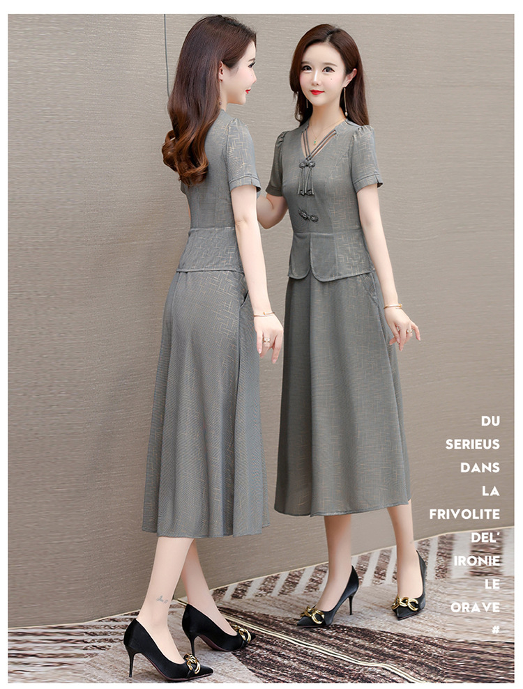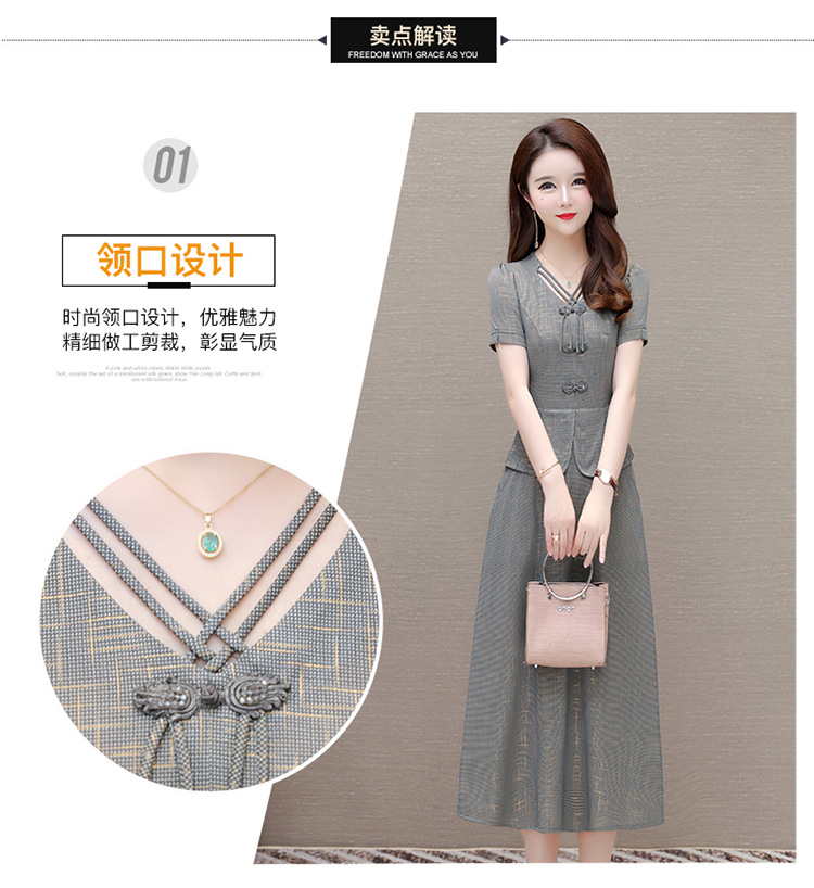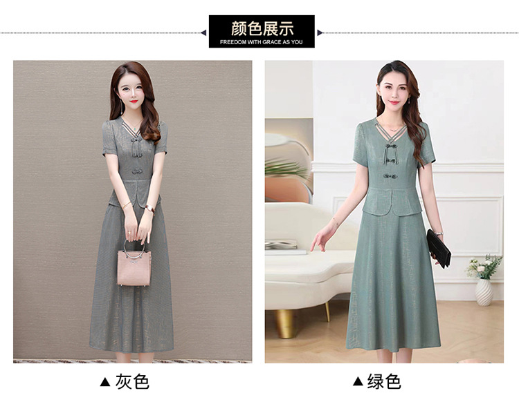 中式盘扣连衣裙,假两件洋气中长裙QYM-KED-H1805-Y