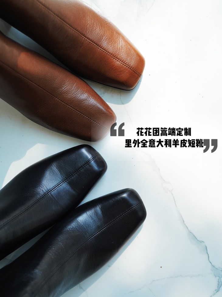 来了,花花团秋冬短靴,眞正的篙端货,内外全意大利🇮🇹进口的皮料,给姐妹们升级秋冬靴子的脚感!肉眼即看得见的品质质感,我当时定鞋子的时候,就觉得真的是好鞋子呀,有一种意式绅士般的温柔克制感,手作工匠的质朴感,真的很篙级!