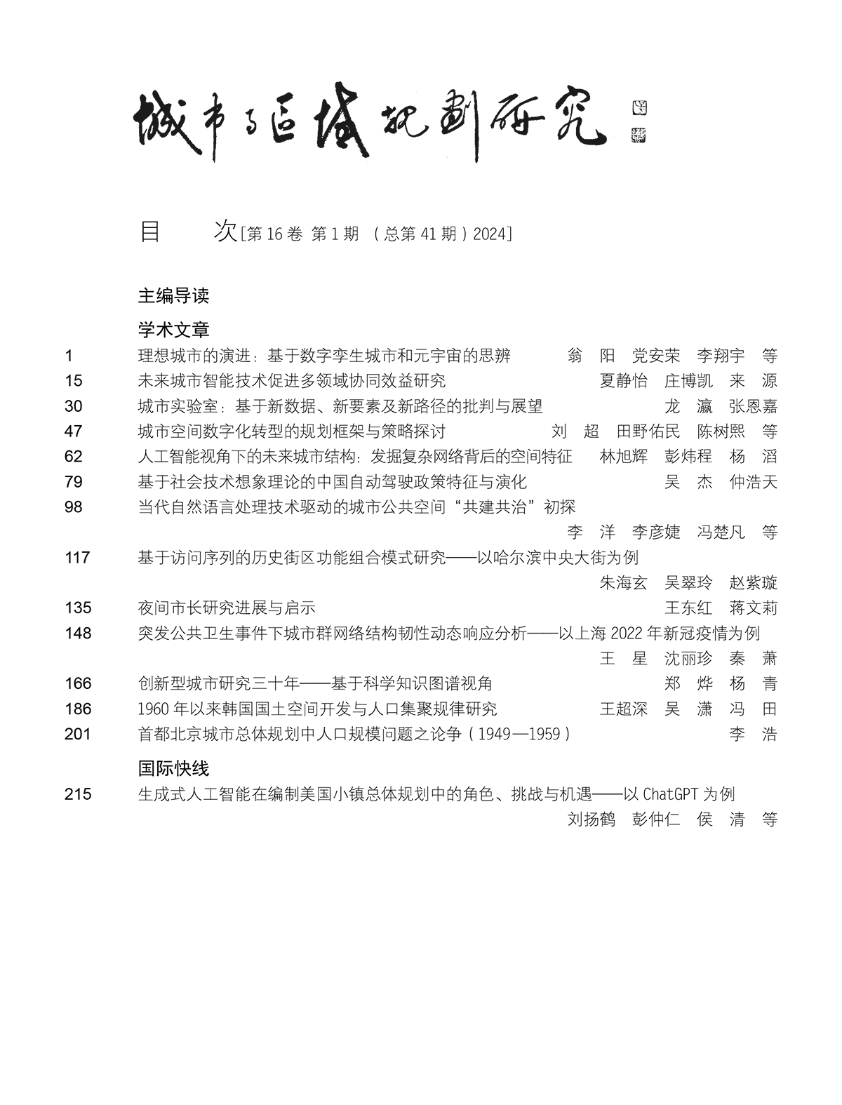 本书为《城市与区域规划研究》第16卷第1期(总第41期)。由大数据、物联网、深度学习、元宇宙等技术驱动的智能技术正迅速渗透当代城市的物理-社会-赛博三元空间。目前亟须从规划视角探讨人工智能技术对城市与区域发展的影响,以应对围绕人工智能与未来城市的科学问题和社会议题。本期聚焦“人工智能与未来城市社会”,关注生成式大模型、智慧城市、数字孪生、自动驾驶等技术对未来城市生产、生活和生态的重大影响,梳理人工智能驱动的未来城市新技术,研判智慧技术衍生的城市发展新趋势,探索可指导未来智慧城市发展的新理论,发掘智能技术影响下人类社会面临的新问题,以期从多学科视角和国际前沿视野探讨人工智能背景下未来城市社会的规划研究。