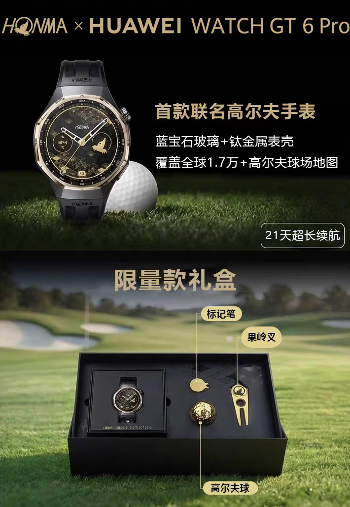 26新款华为Watch GT6 Pro 联名Honma x HUAWEI 高尔夫运动智能表