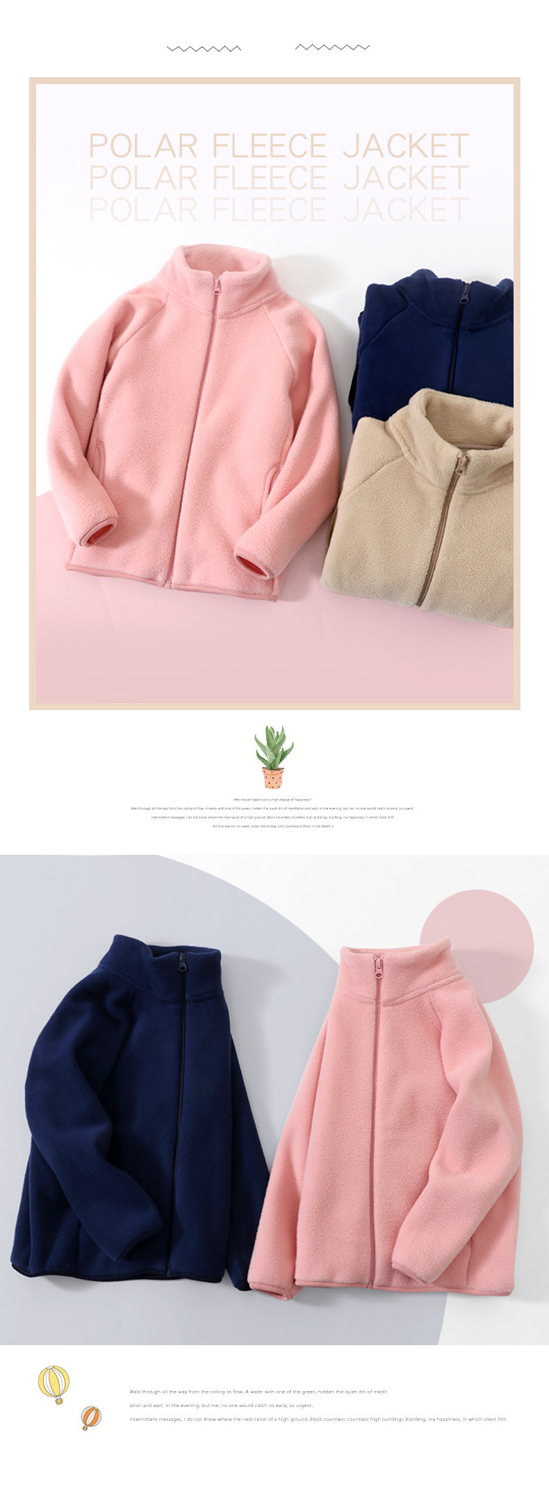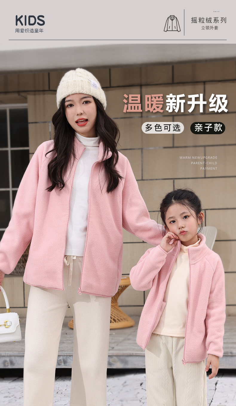 可亲子 110-180校服冲锋衣内搭 加厚立领摇粒绒防风保暖外套