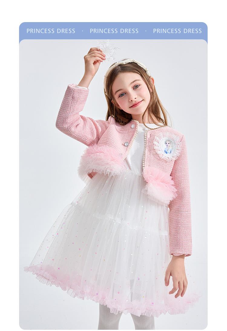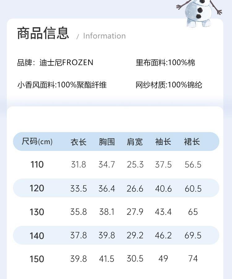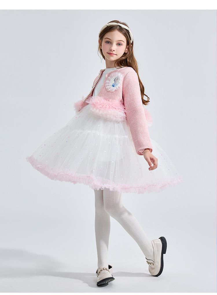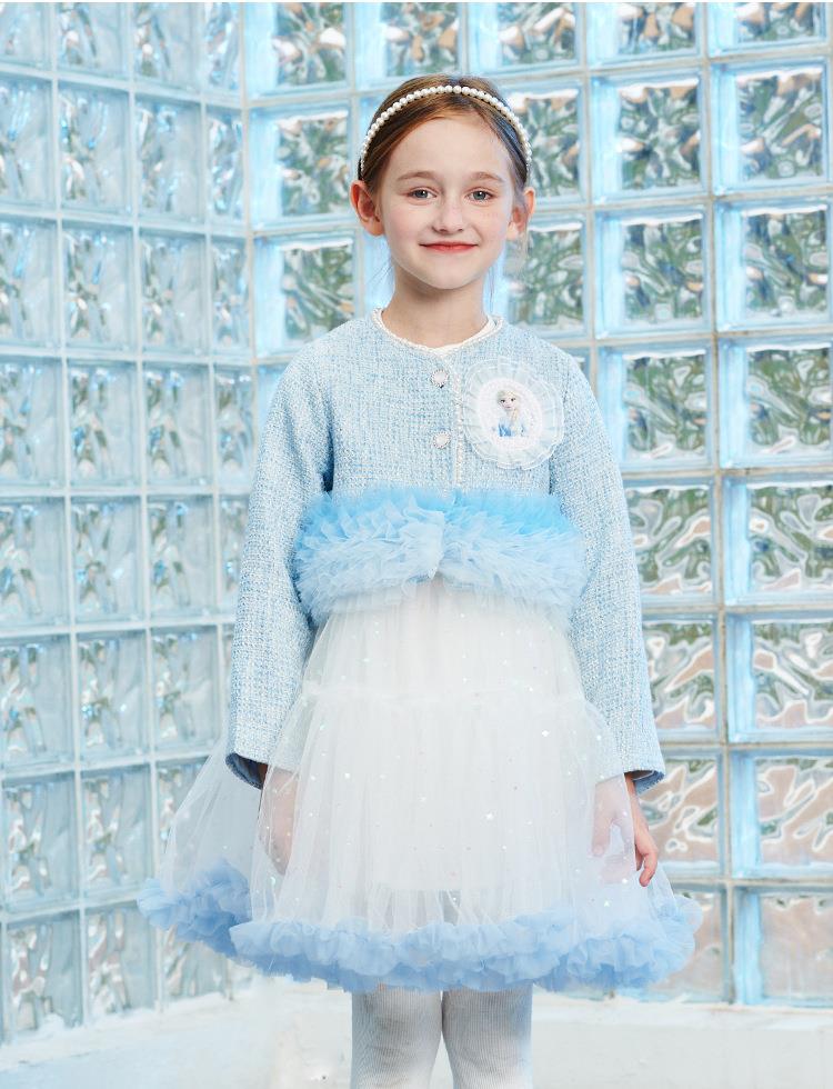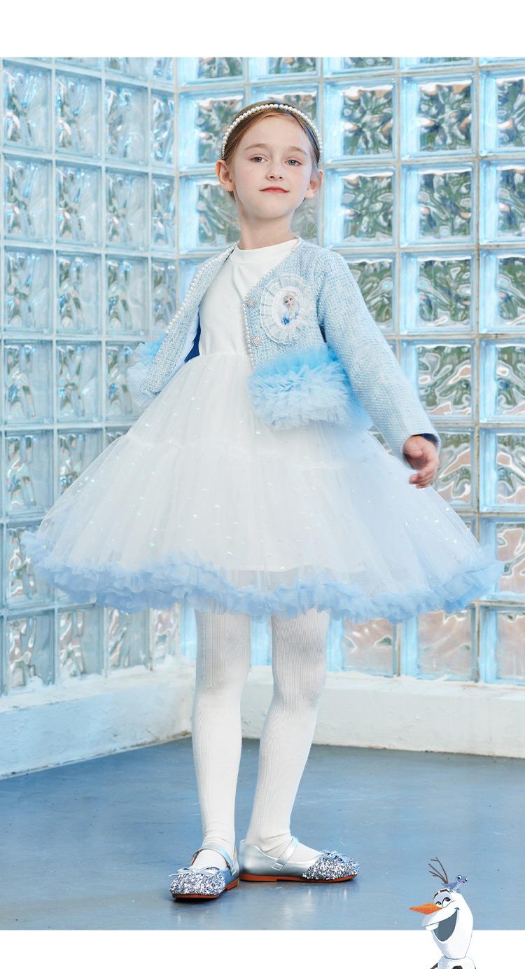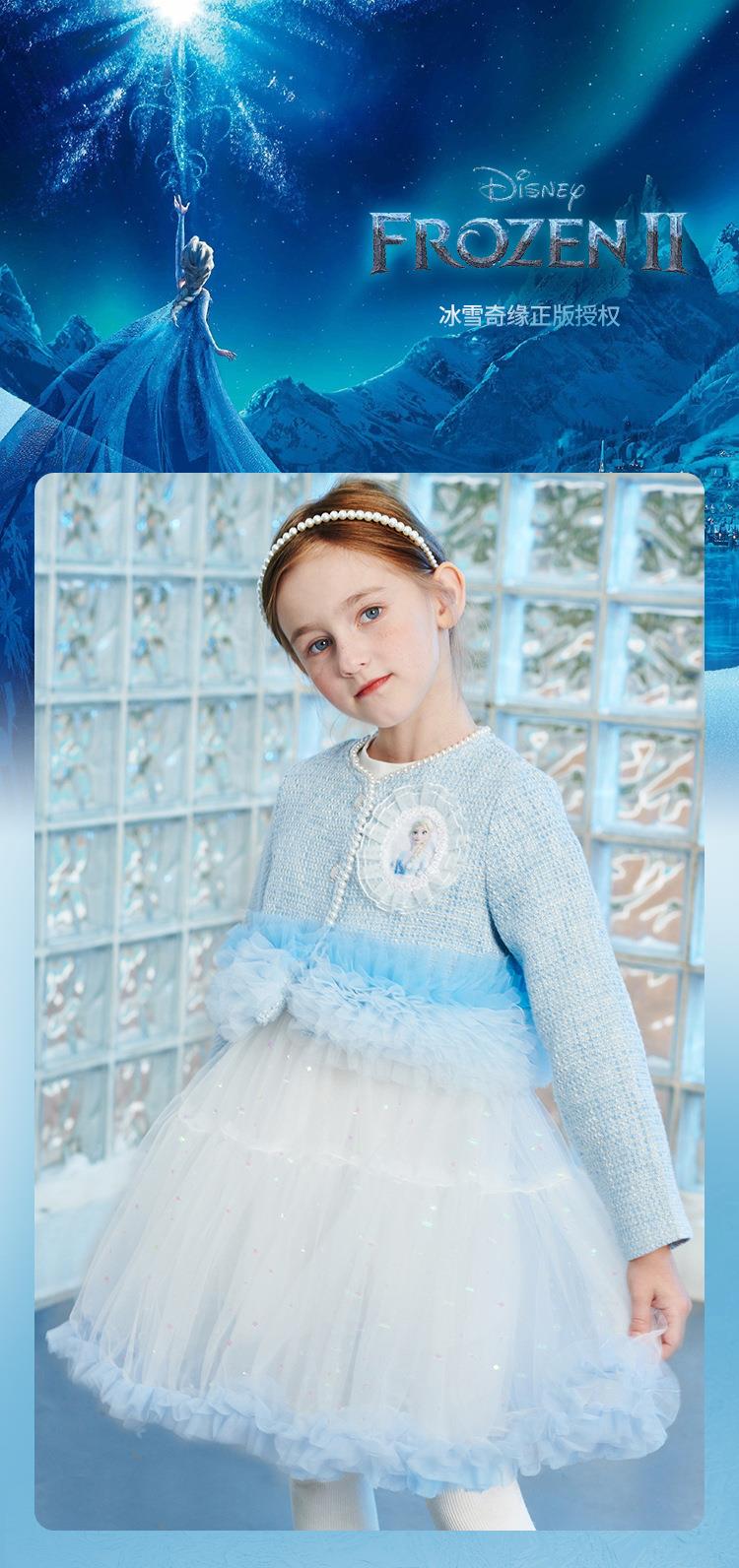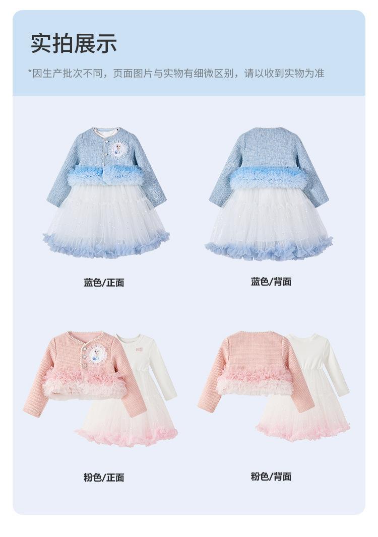 迪士尼童装女童套装女孩长袖艾莎公主裙两件套儿童小香风外套春装