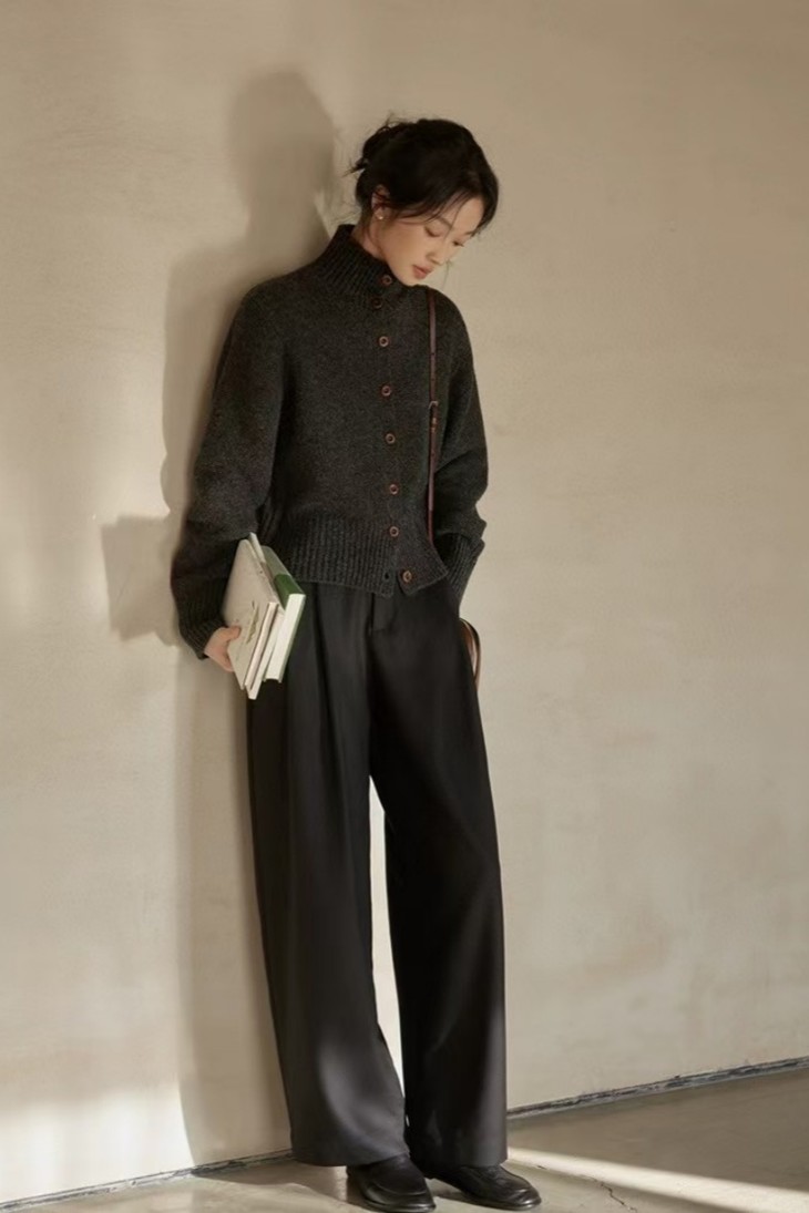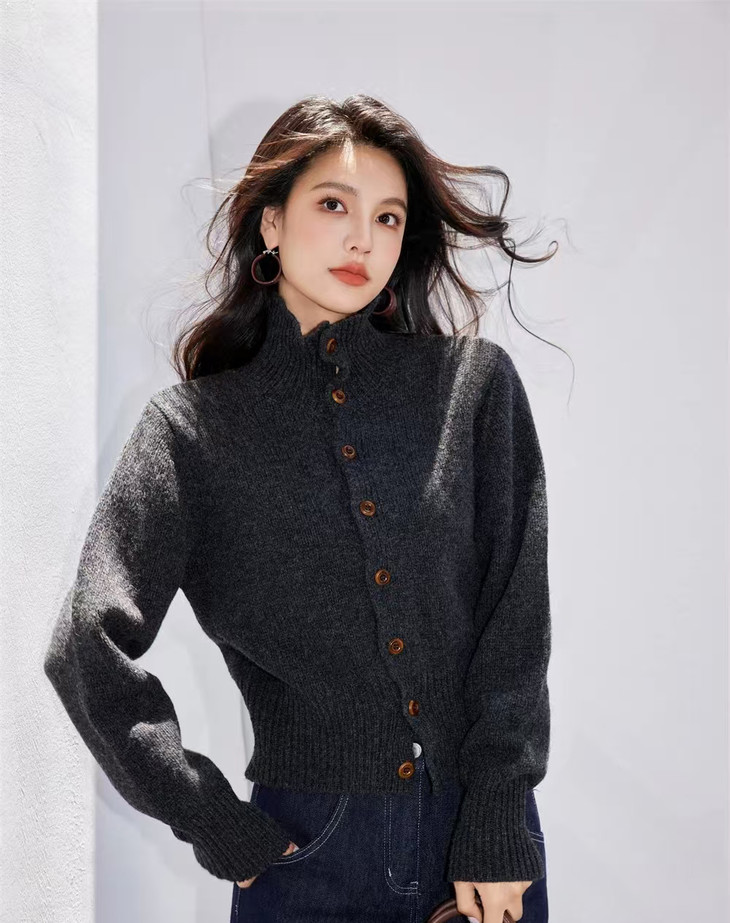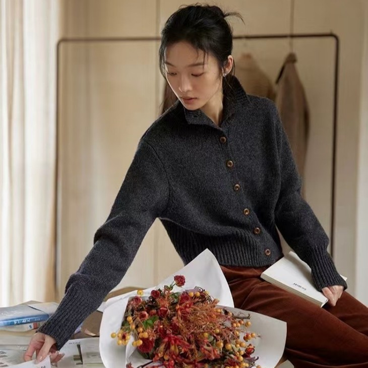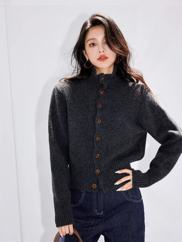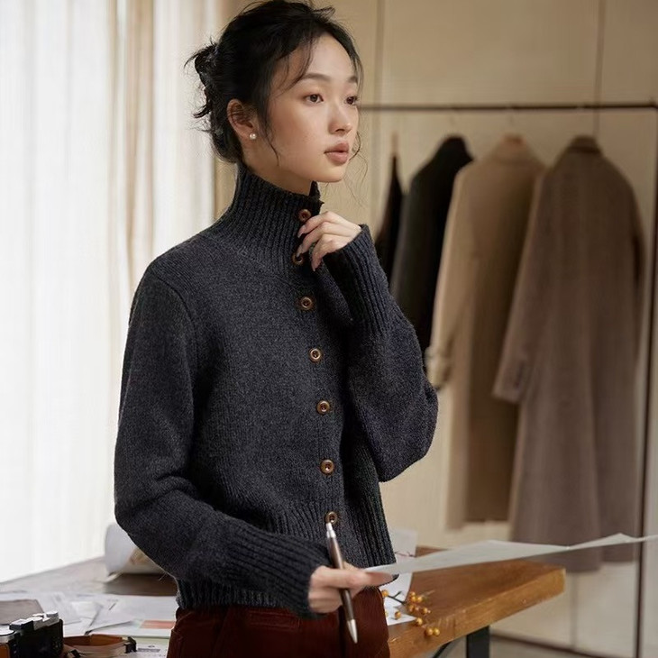 MOMOTIABIN半高领气质100%羊毛开衫】准备好自留!‼️ ✅100%羊毛花纱面料,细腻肌理承载高级质感! ✅贴身如云朵般软糯,拒绝扎肤感~ ✅半高领 防风保暖却不显厚重 显瘦显气质💥 极品!质量数一数二的好