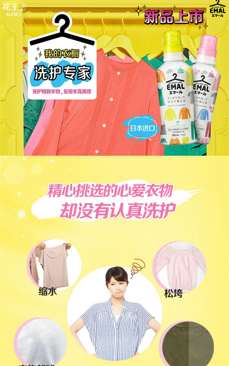 【YZ】花王进口真丝羊毛羊绒精致洗衣液500ml减轻起球缩水松垮暗淡