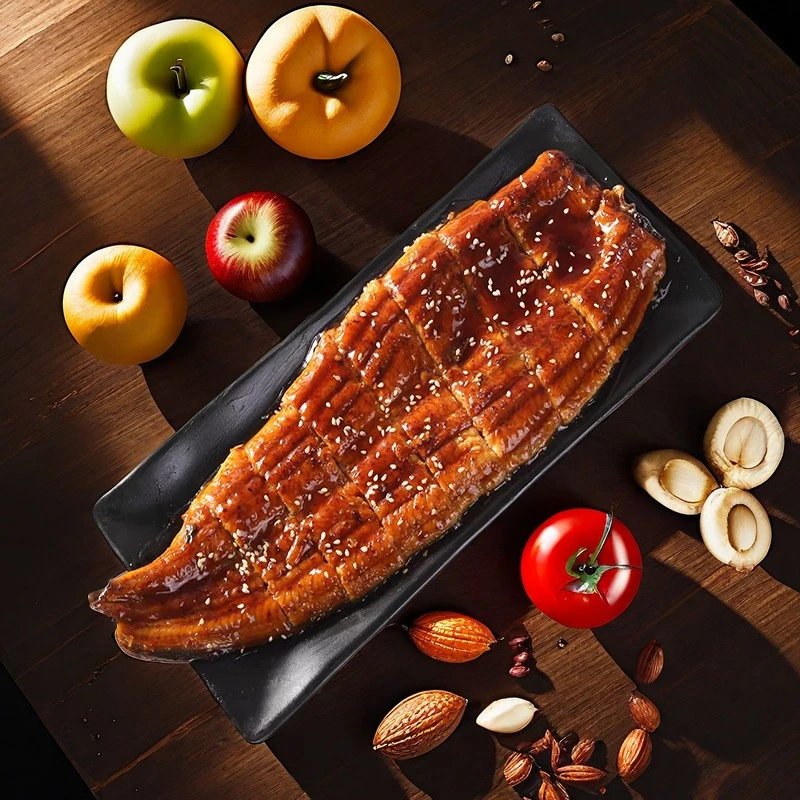 一份2条 (270g-310g)/条活鳗zai杀真的炭火烤鱼皮表面的烤斑很清晰整体增香