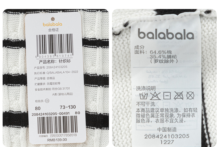 巴拉巴拉婴儿毛衣儿童冬季线衫新款男女童毛衫针织衫学院风潮