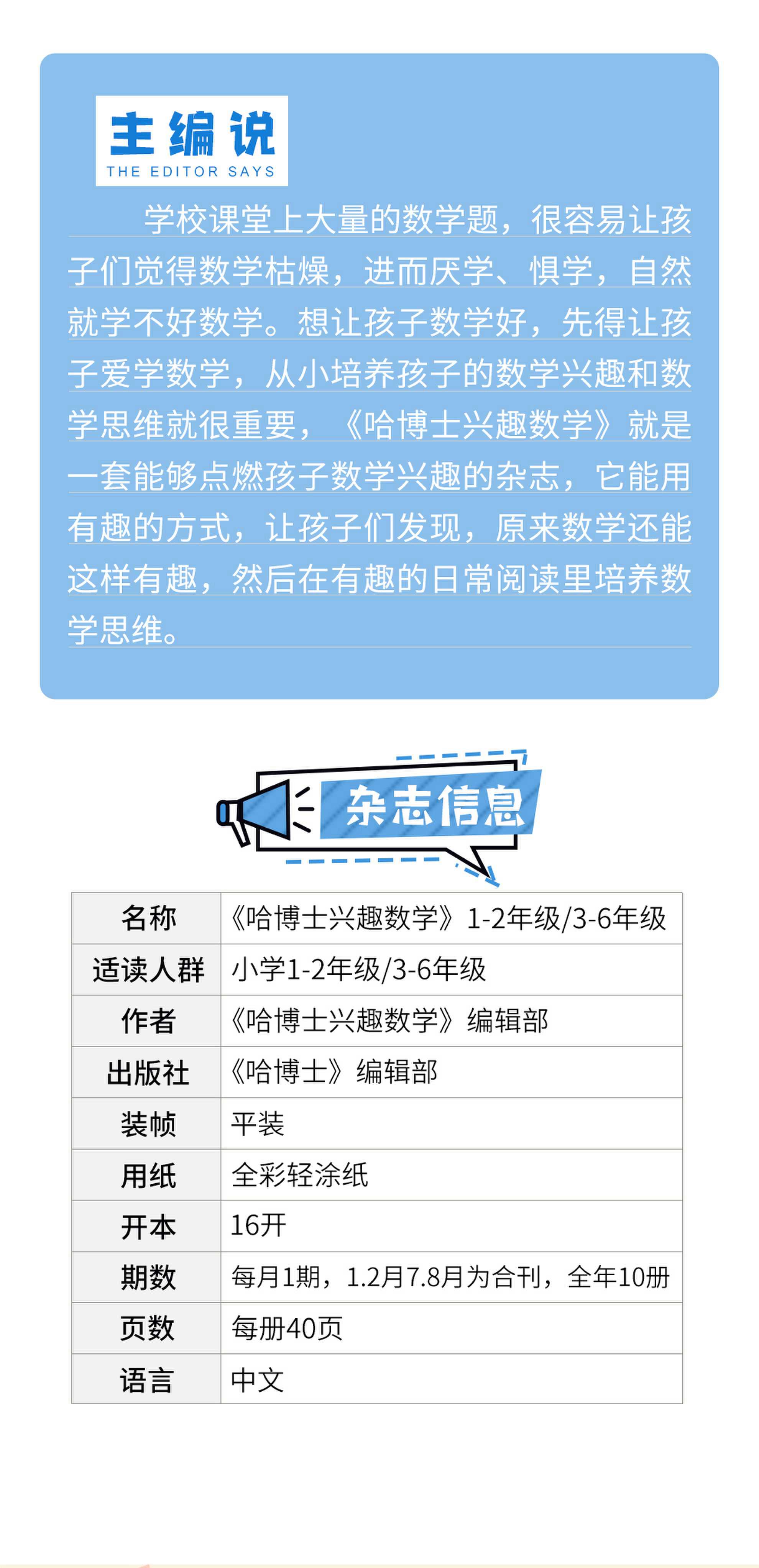 哈博士 兴趣数学级杂志 2026年1月起订 每月1期,1.2月7.8月为合刊,全年10册