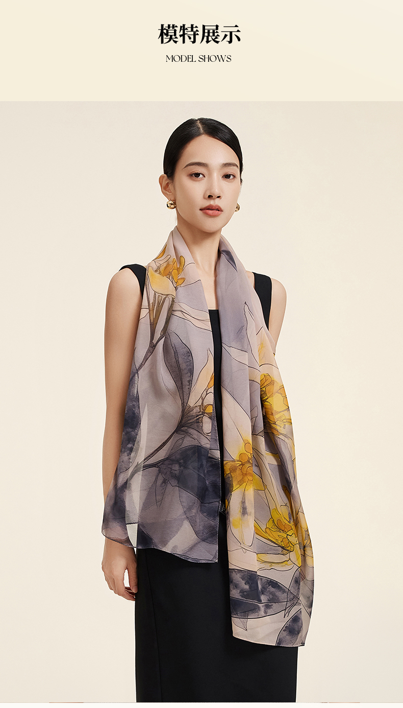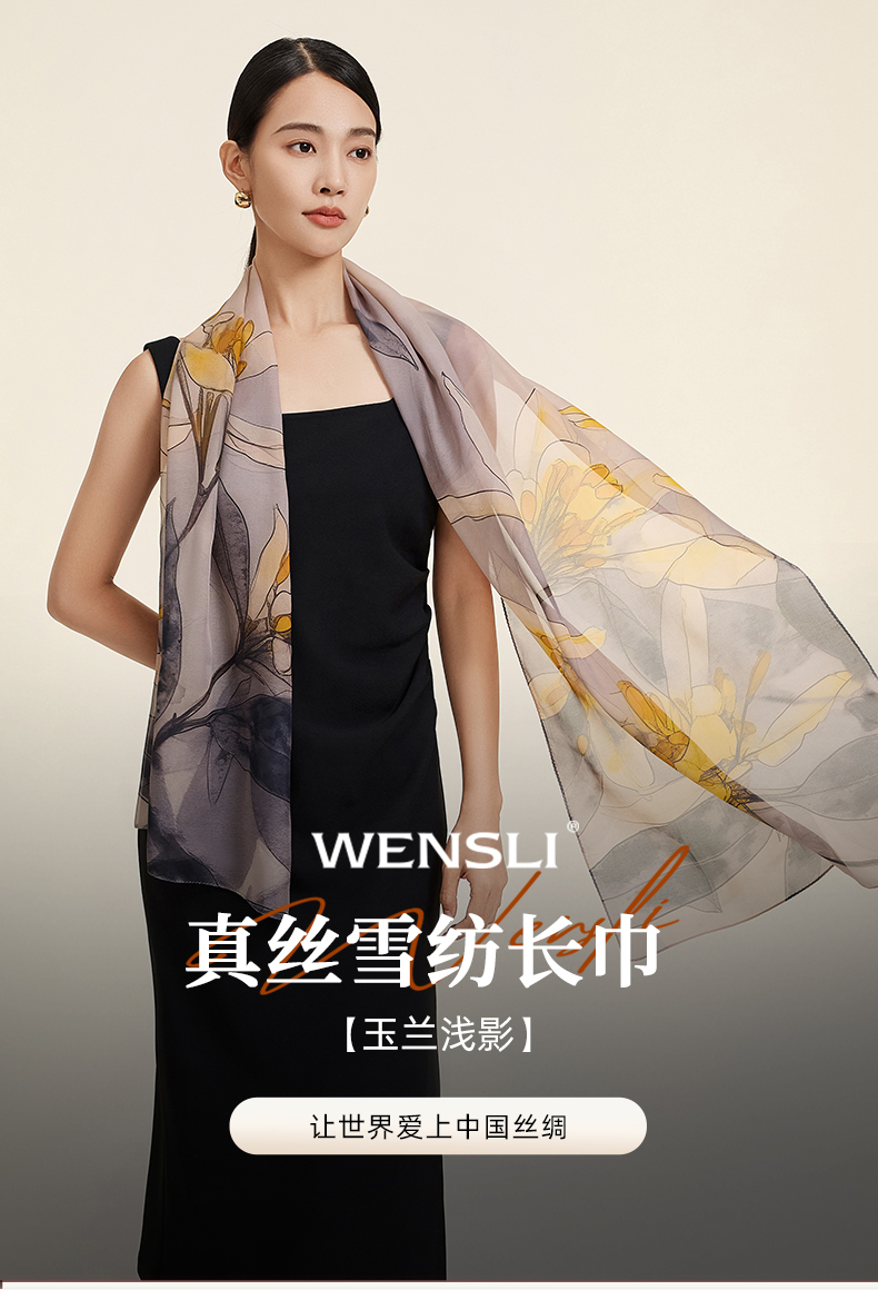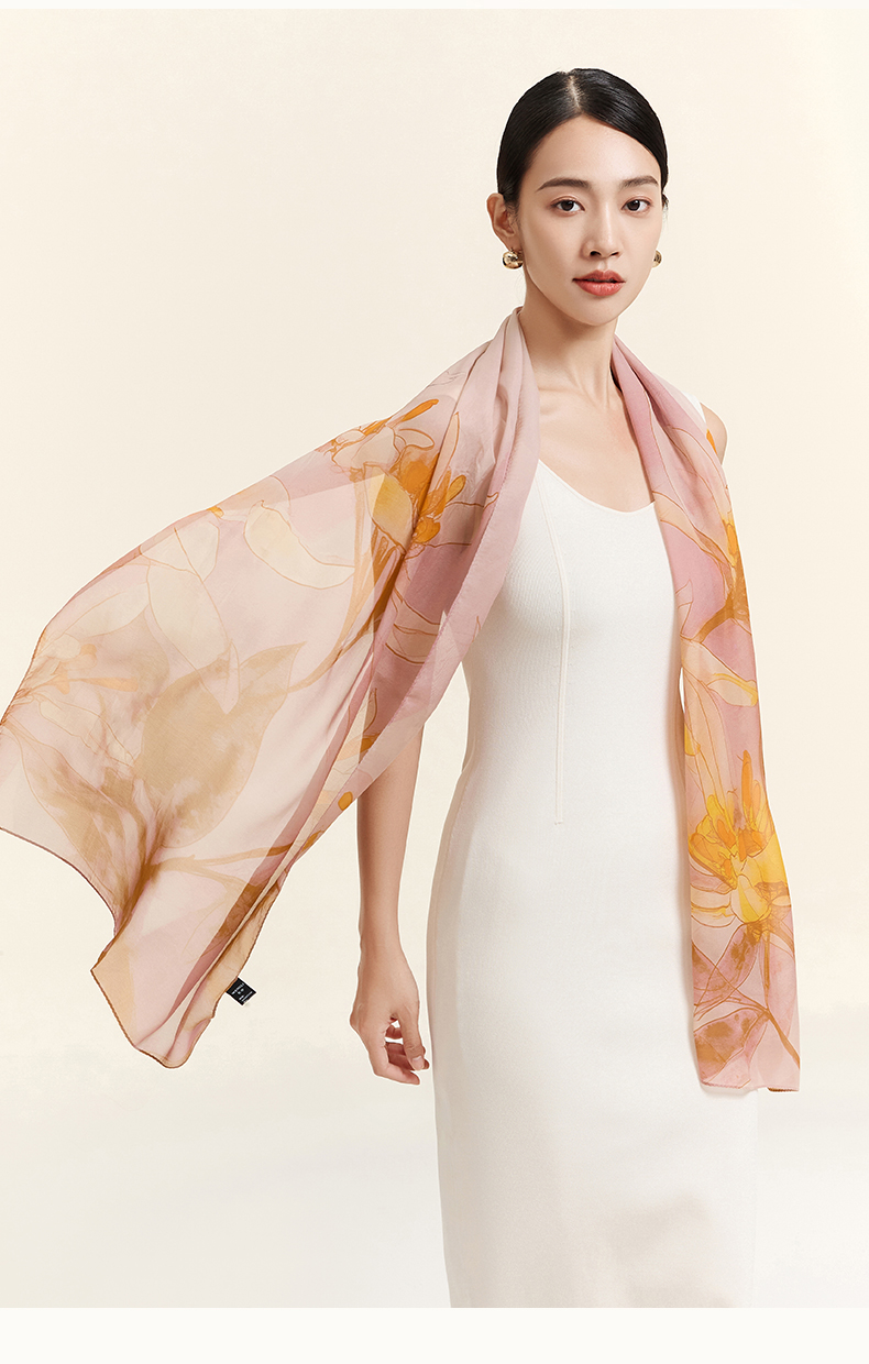 万事利“玉兰浅影”新丝绸真丝长巾