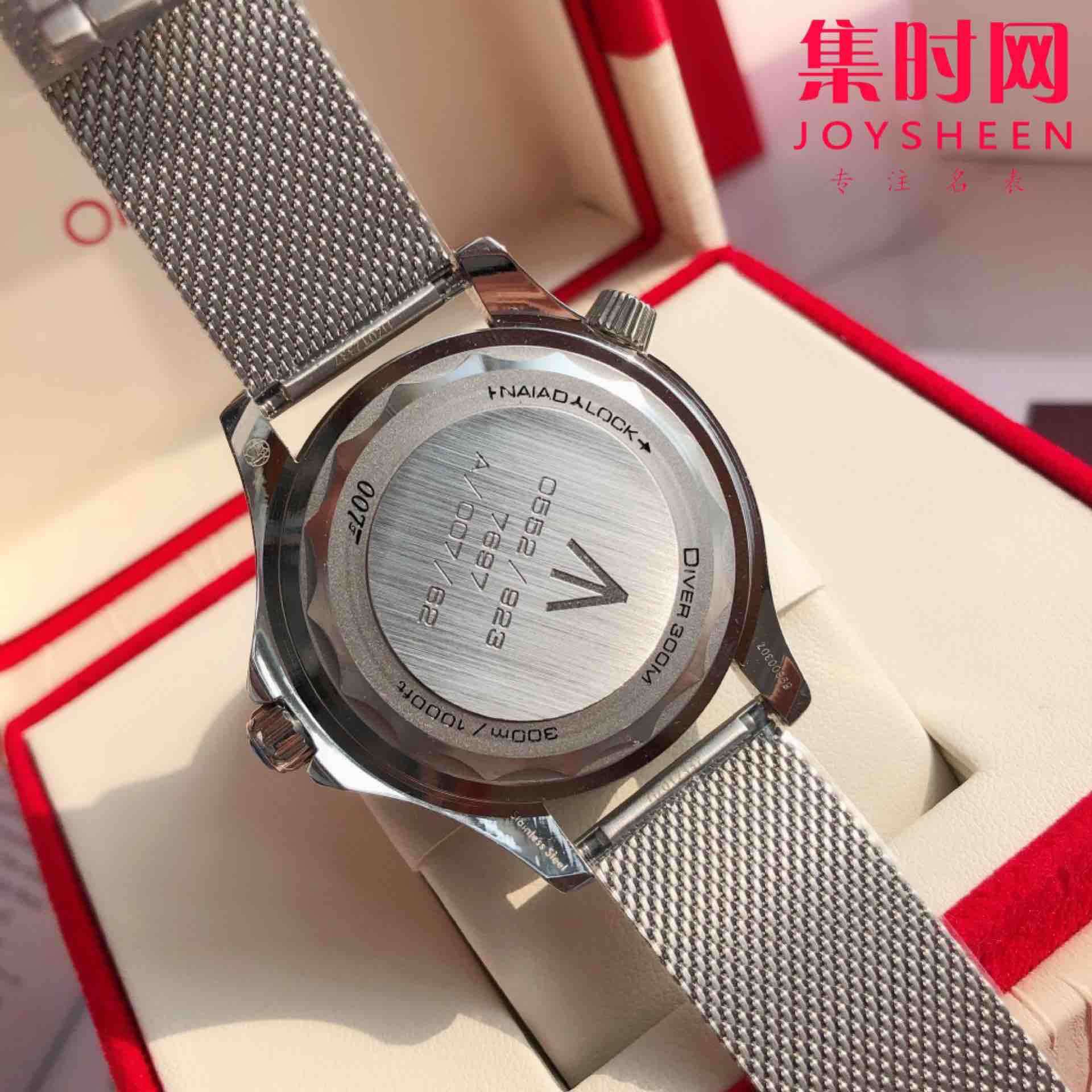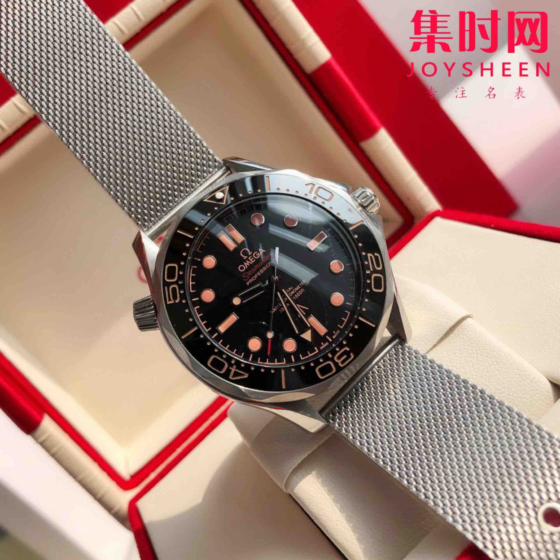 搭载原装进口西铁城自动机械机芯 走时精准 零返修!316L精钢表壳原版同步细节 蓝宝石玻璃镜面 旋转陶瓷圈口 316L精钢网状表链配原装折叠表扣