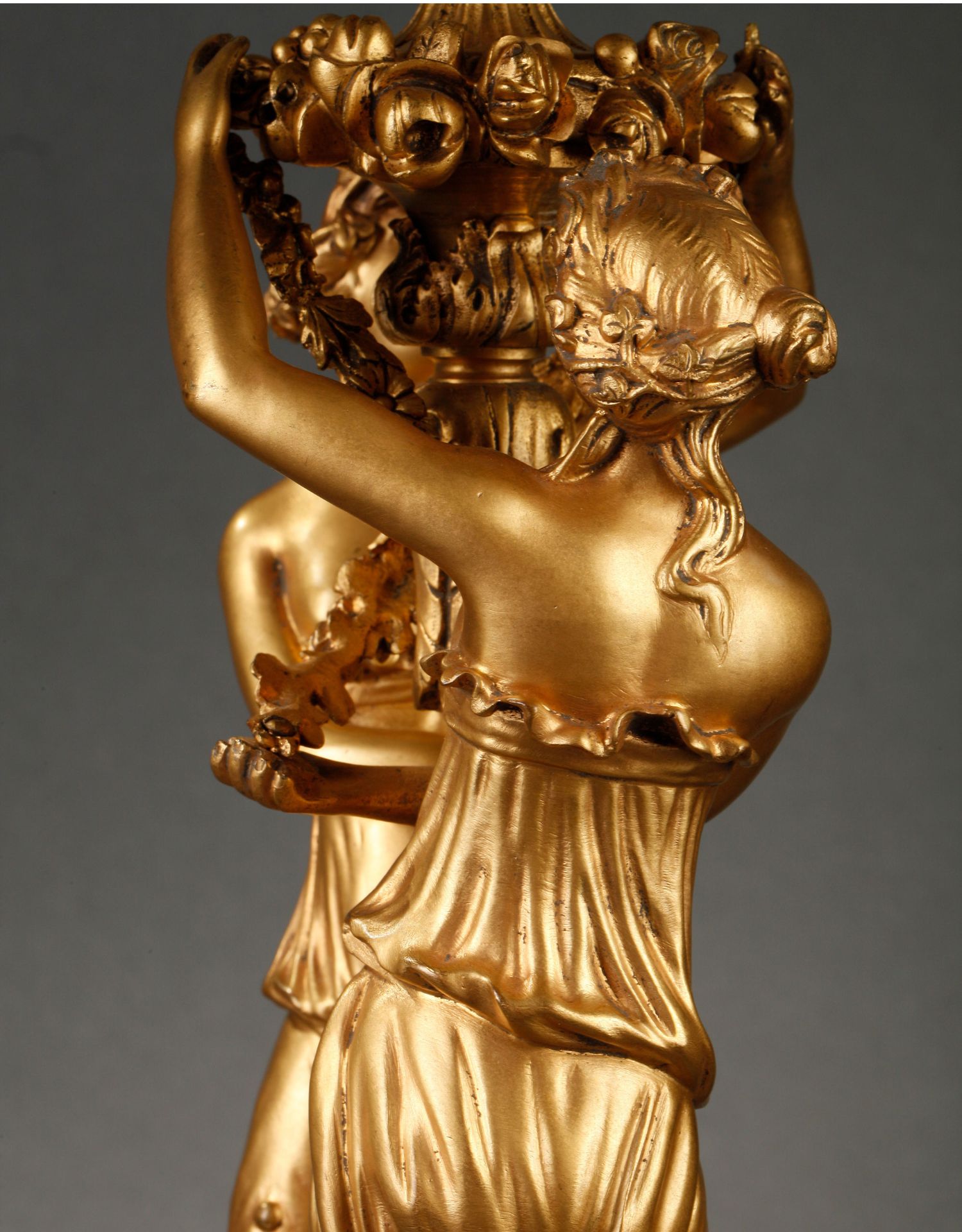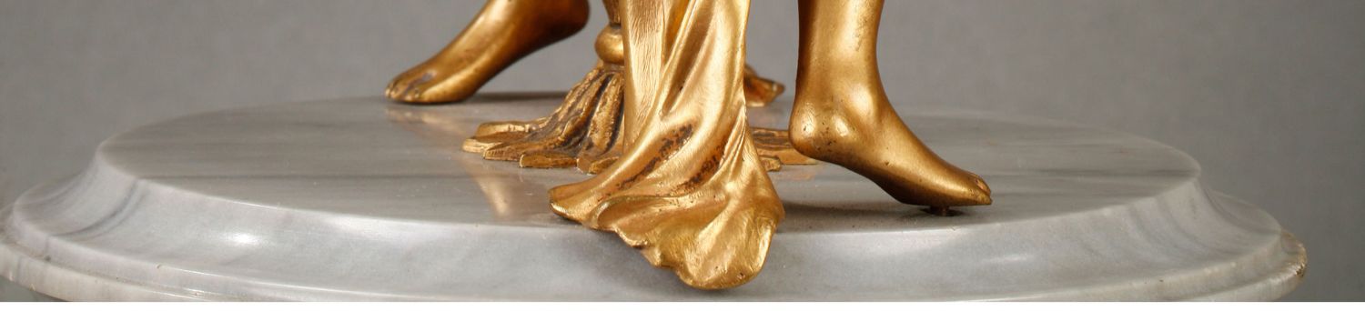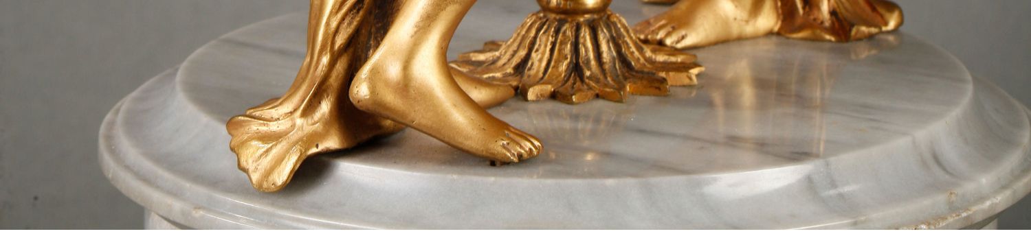 独角鹿西洋古董摆件法国大理石底座铜鎏金花环古典女神装饰台灯