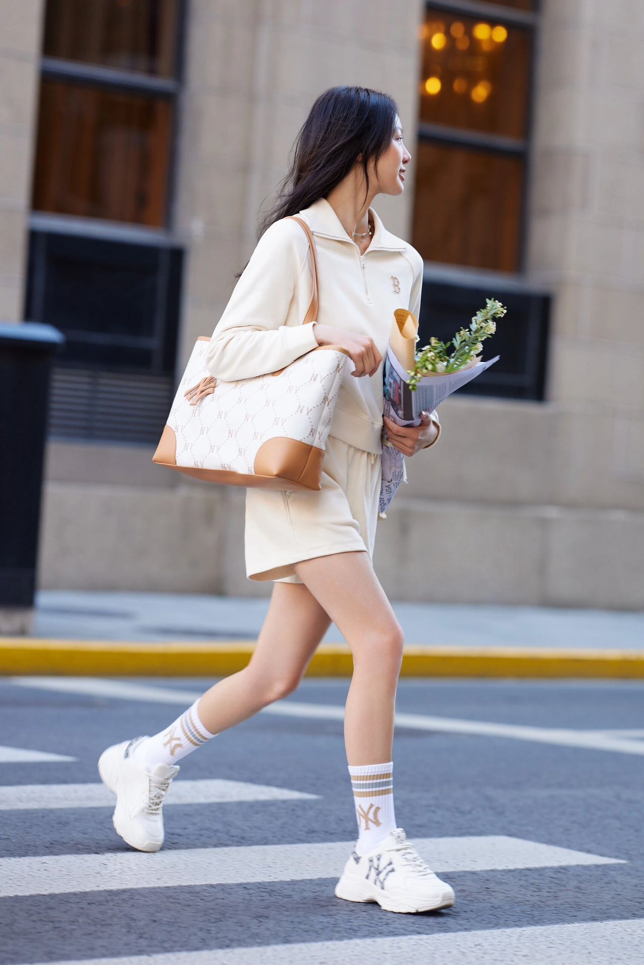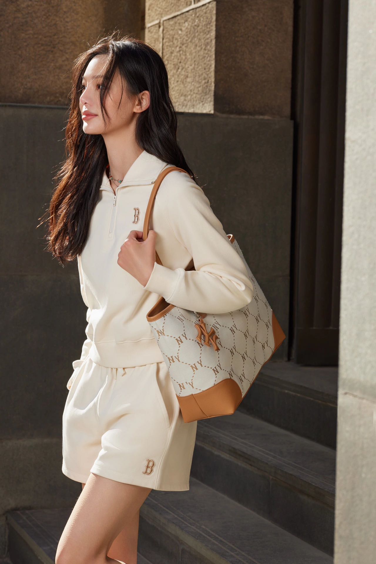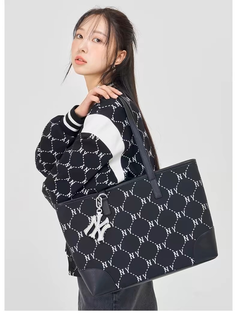 MLB斜1ogo大托特包 男女情侣百搭老花系列大容量通勤托特包24夏季新款