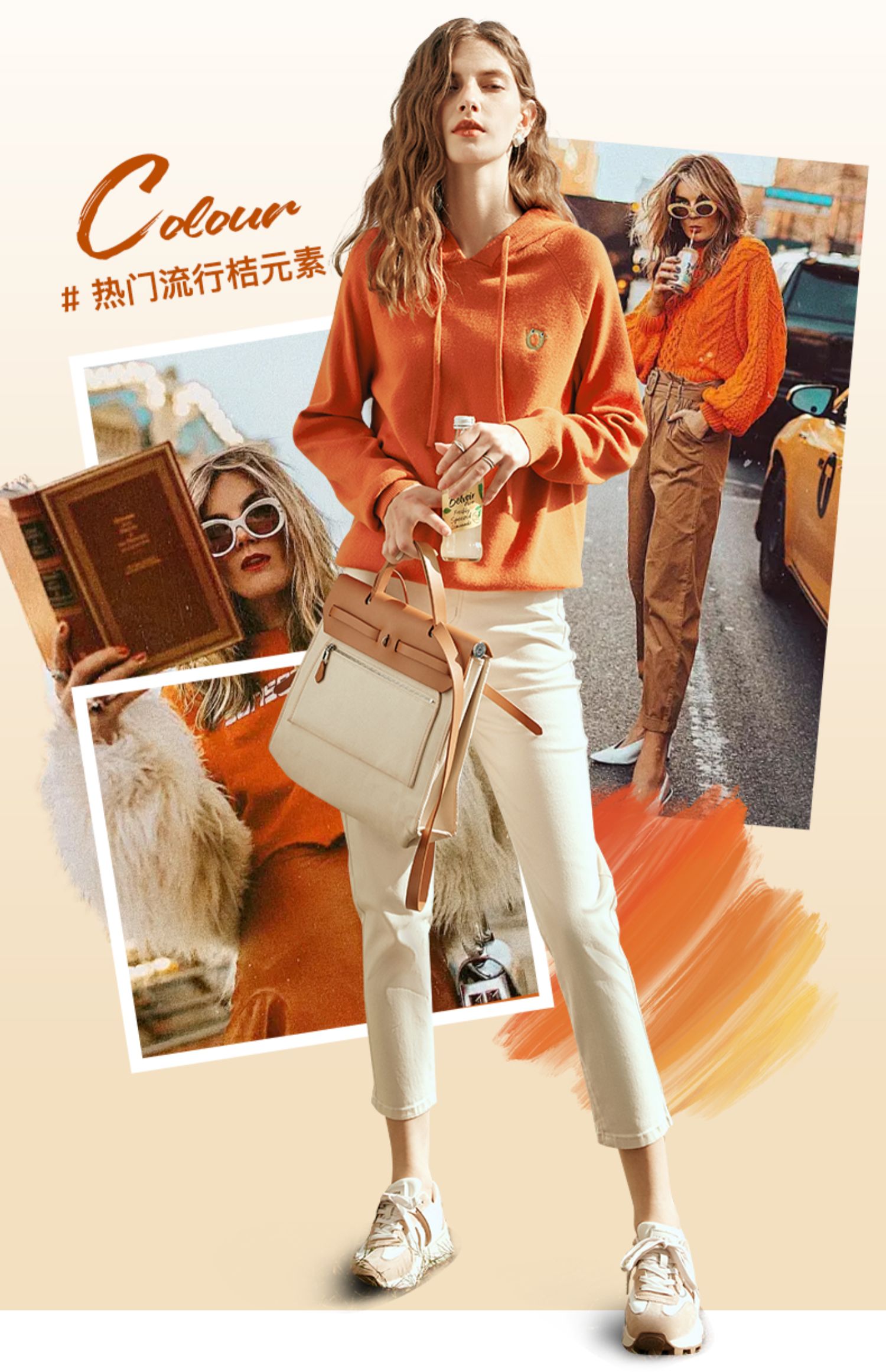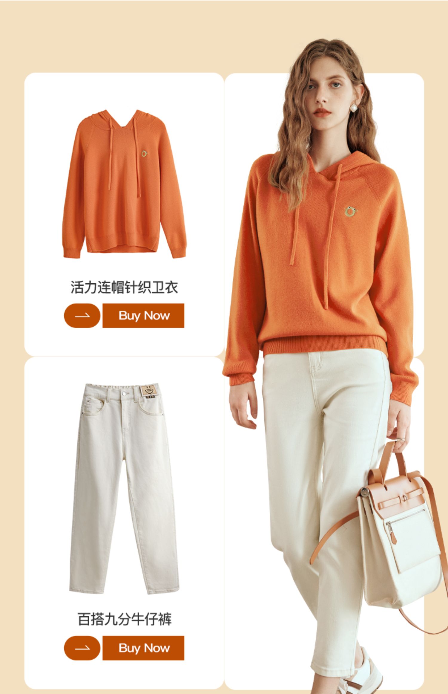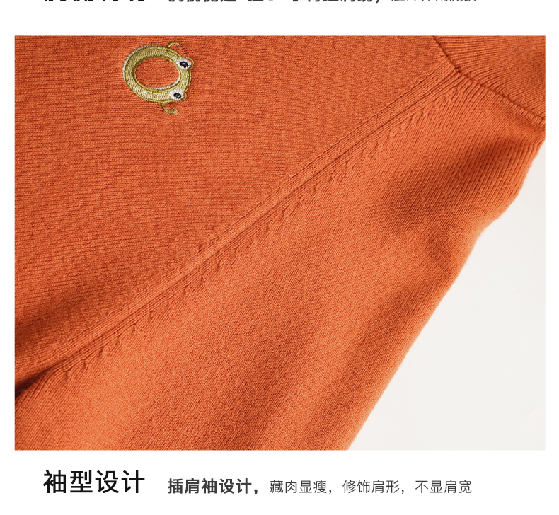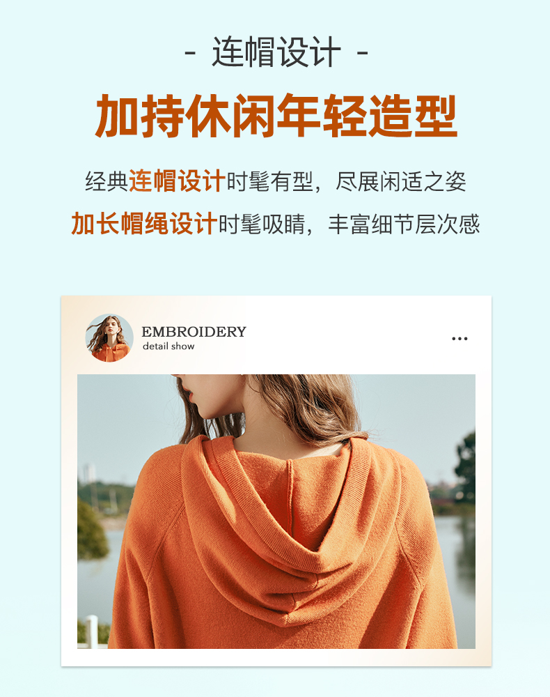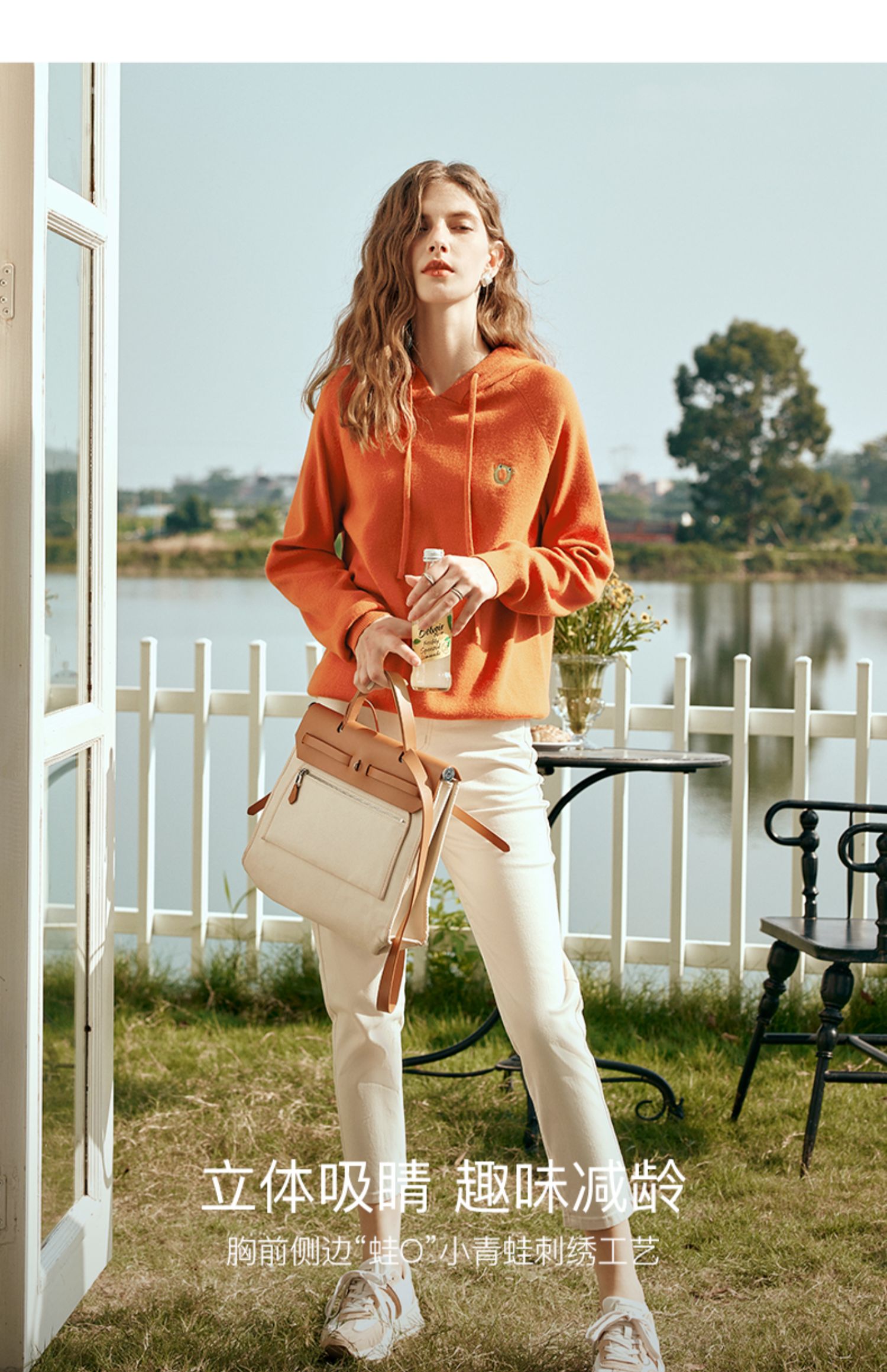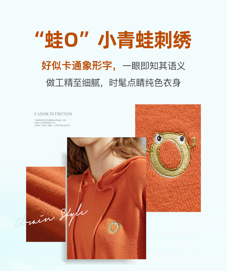 OLrain欧芮儿桔色连帽针织衫女早春2024年新款修身百搭薄款套头衫