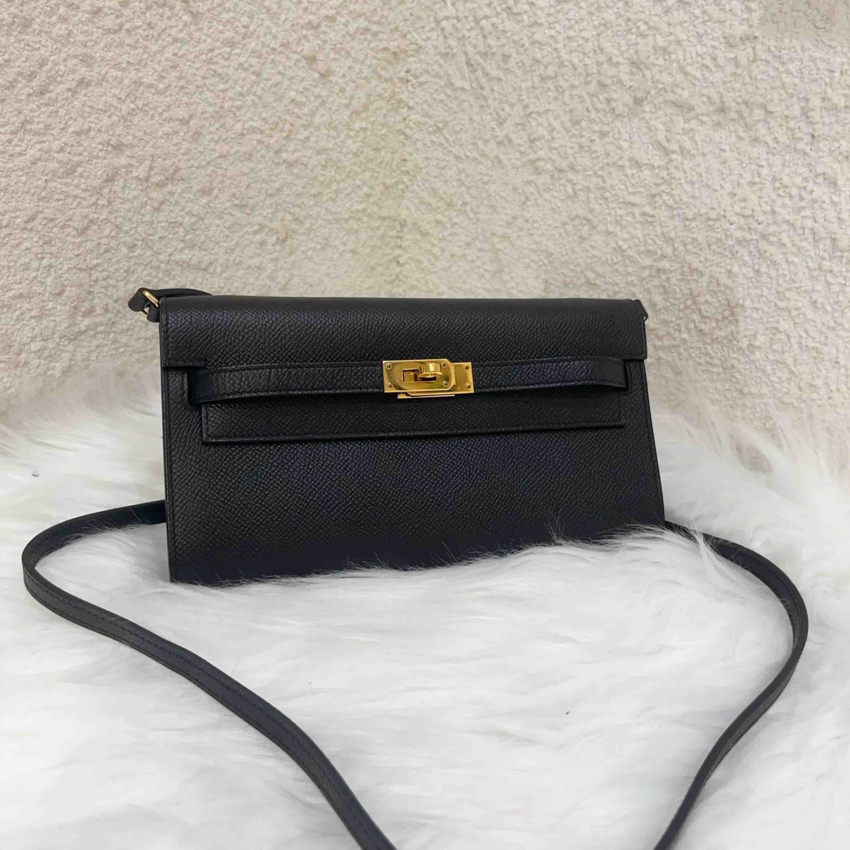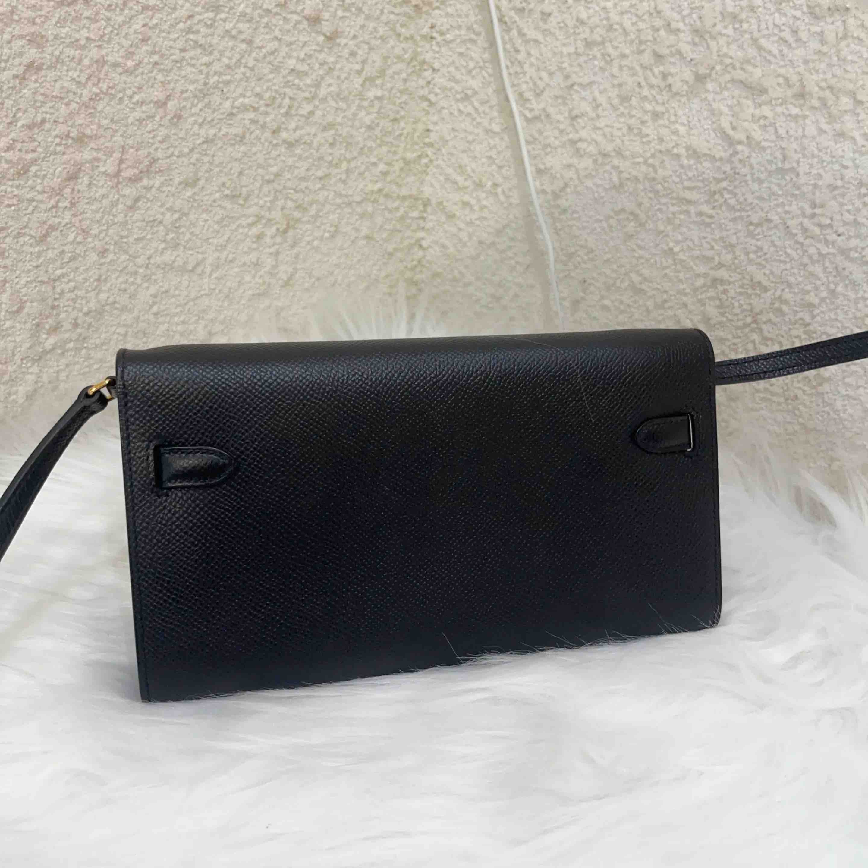 【商品详情】正品二手 爱马仕 Kelly to go ep皮 黑金 钱包👝97新 20*11 U刻 配件:防尘袋。精致小巧。