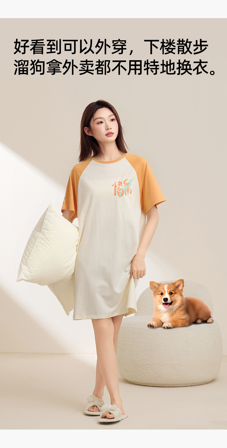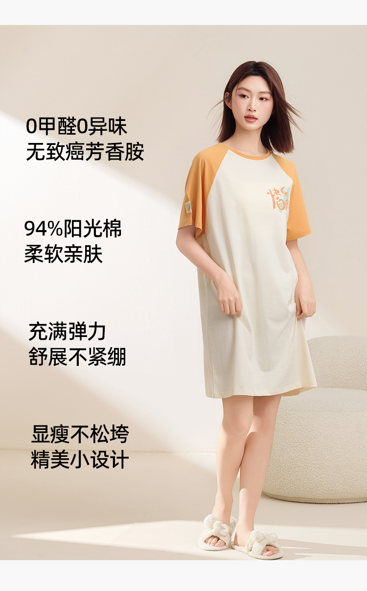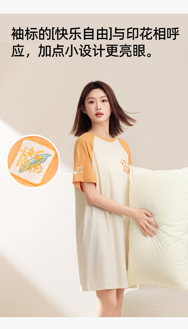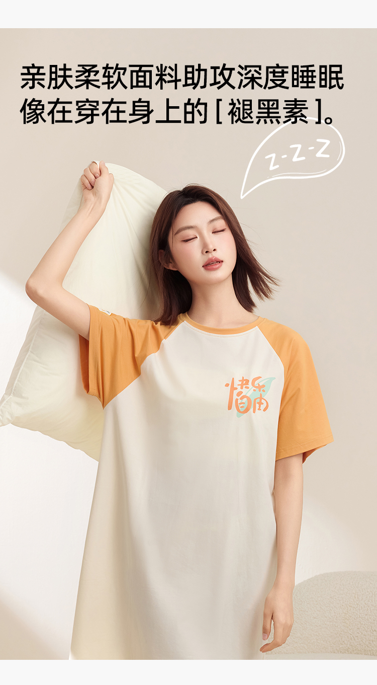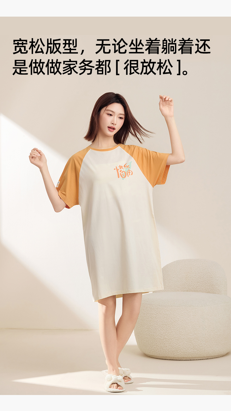 熳洁儿 94棉睡裙活力撞色休闲宽松舒适可外穿家居服24253202
