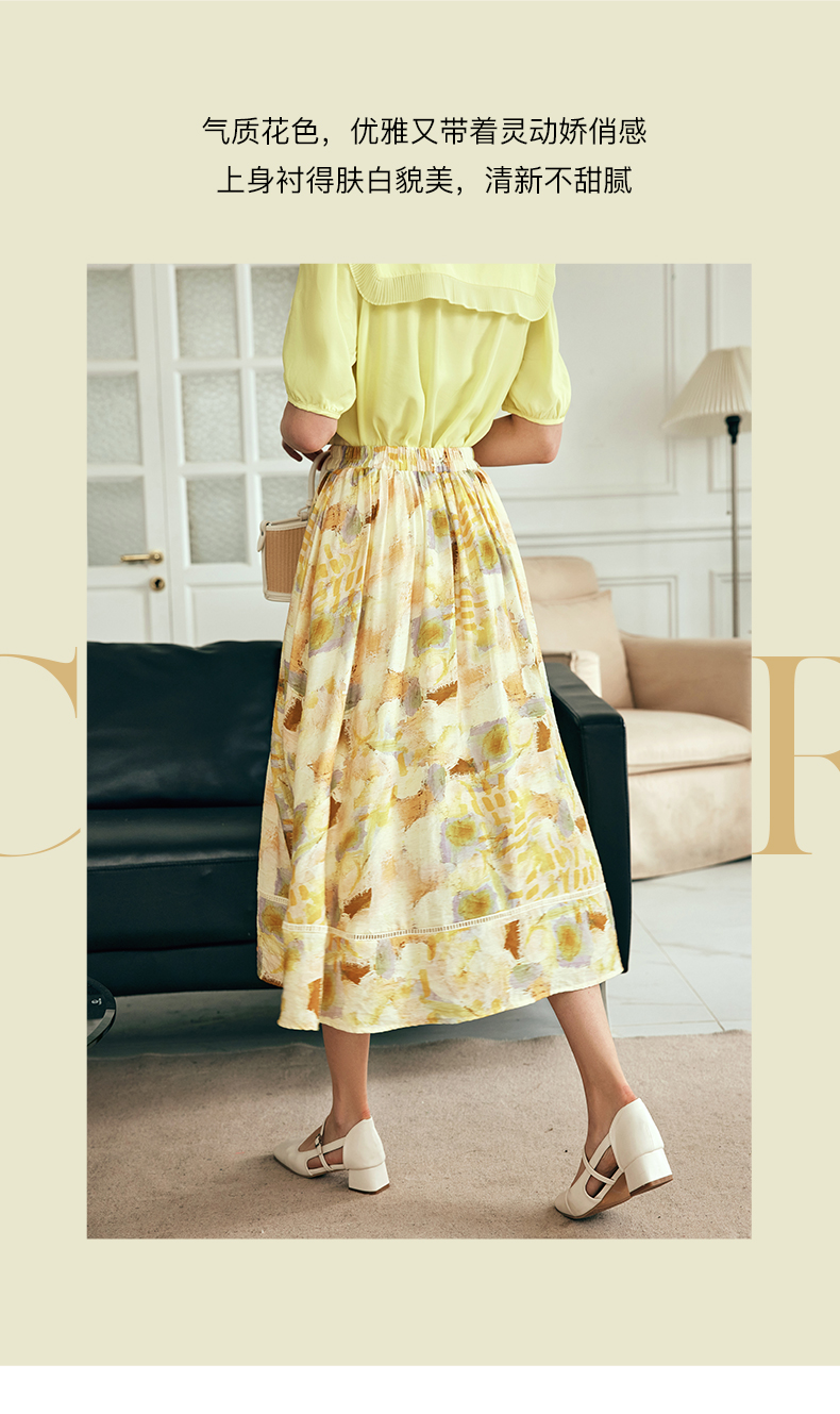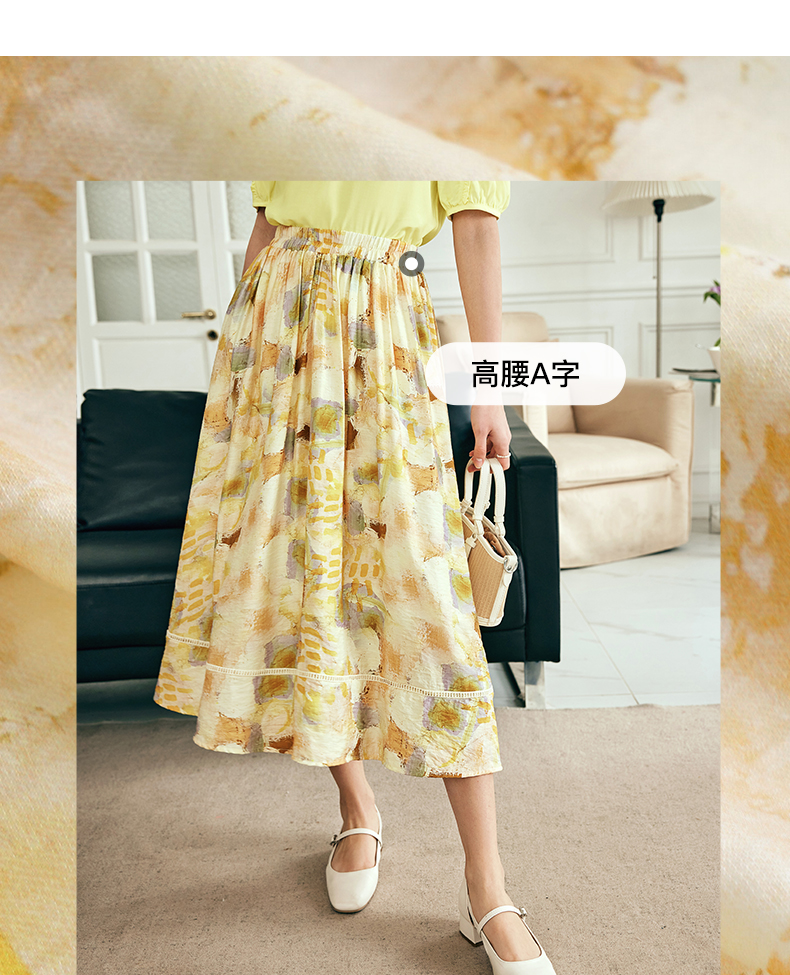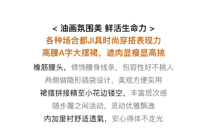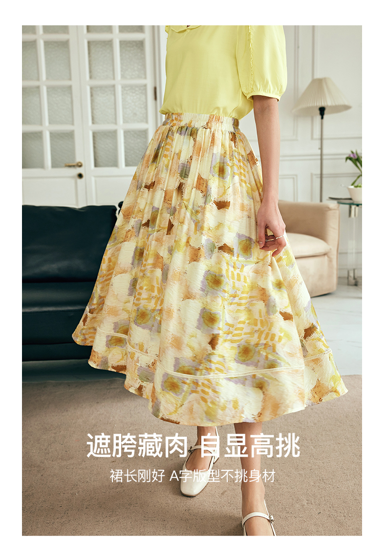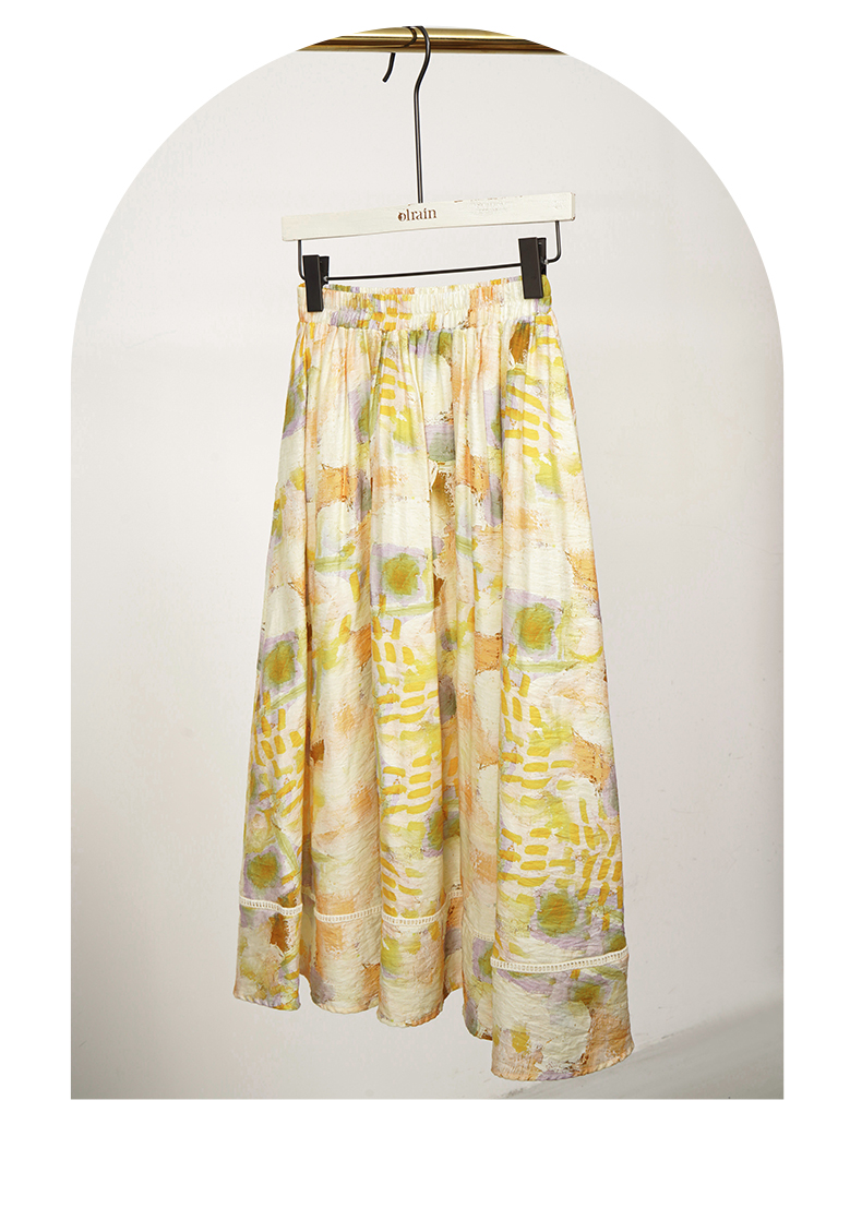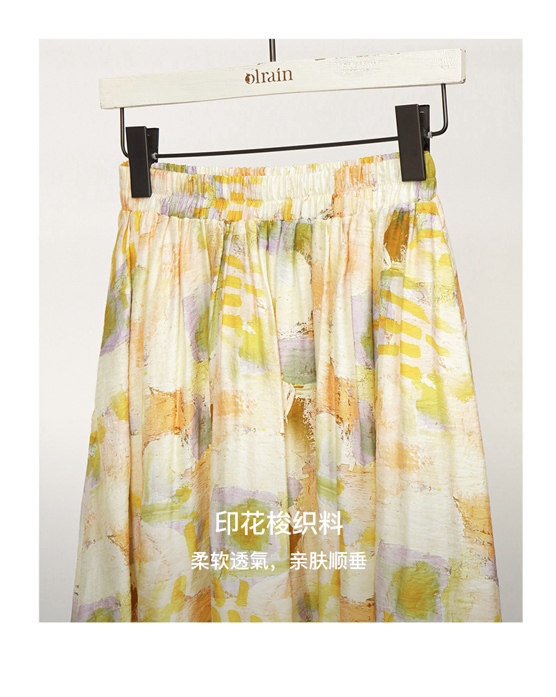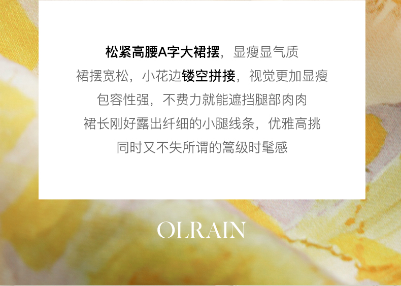 OLrain欧芮儿法式碎花半身裙女夏季2023新款高腰拼接镂空A字摆裙