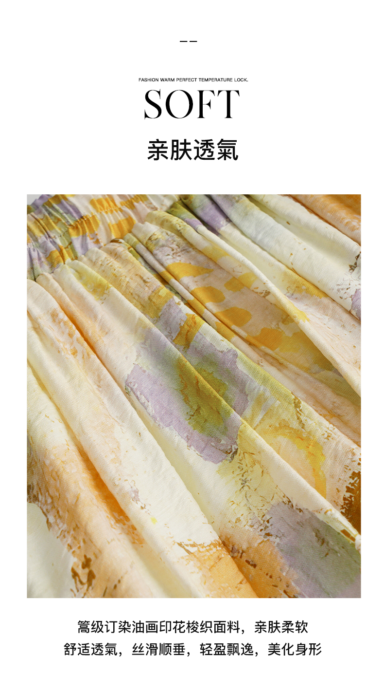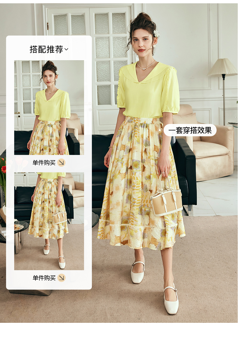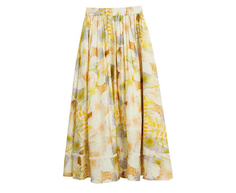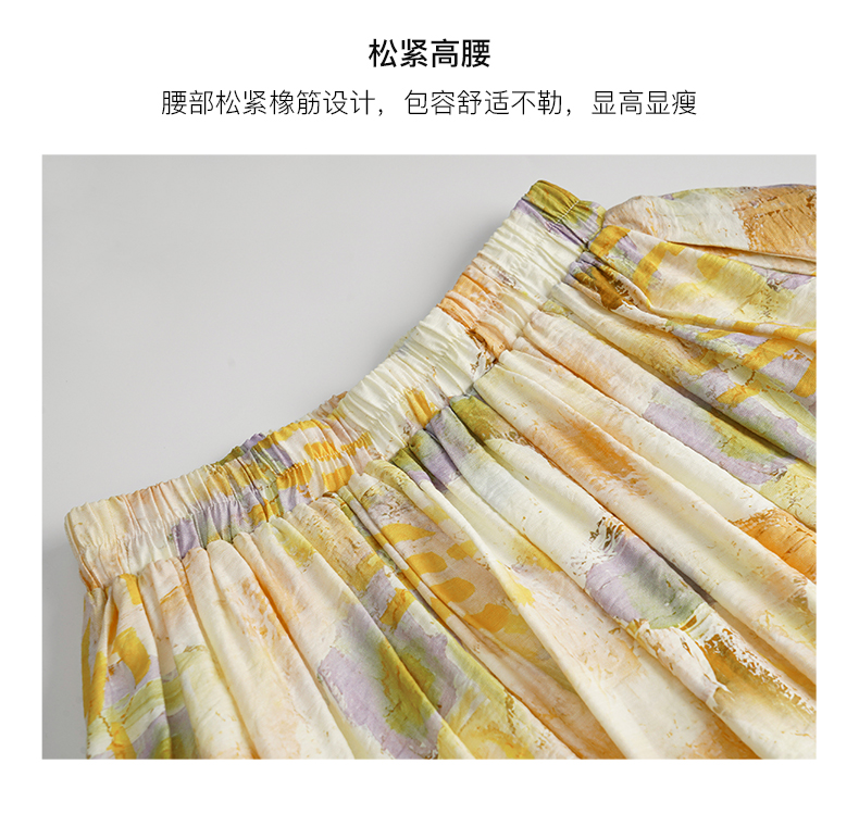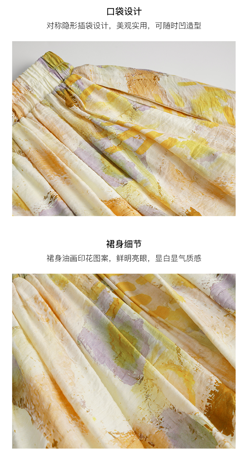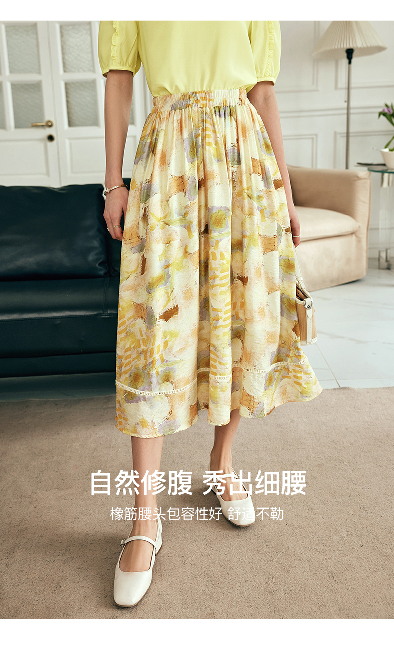 OLrain欧芮儿法式碎花半身裙女夏季2023新款高腰拼接镂空A字摆裙