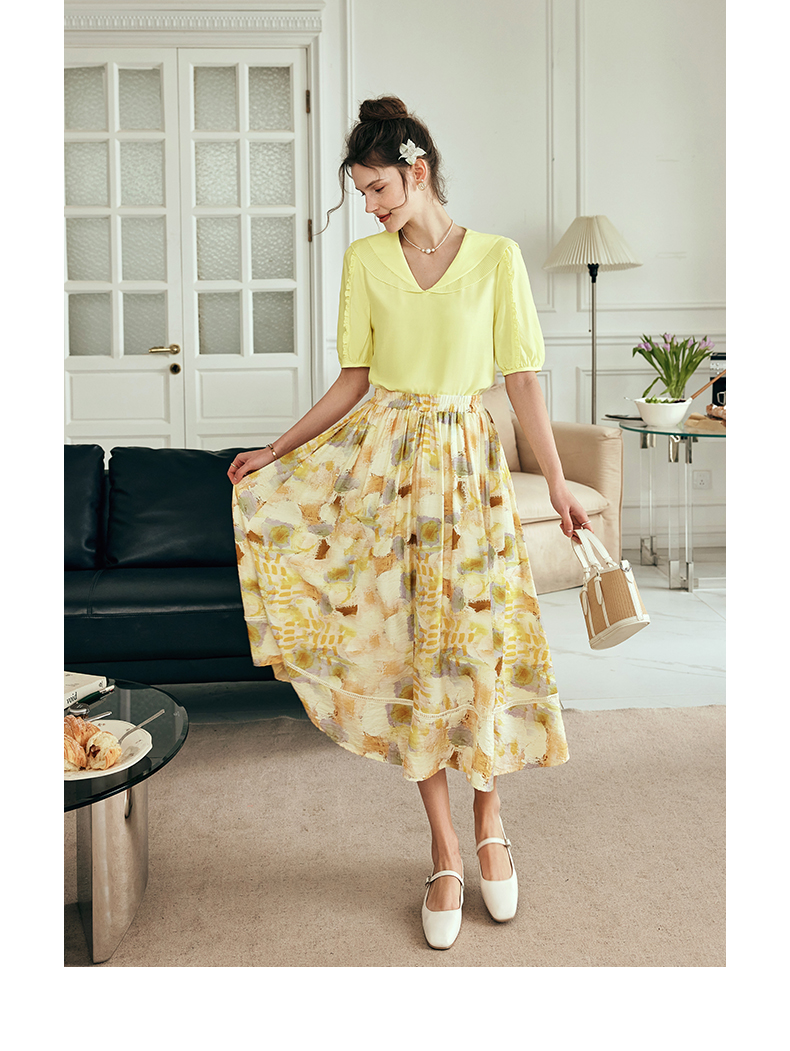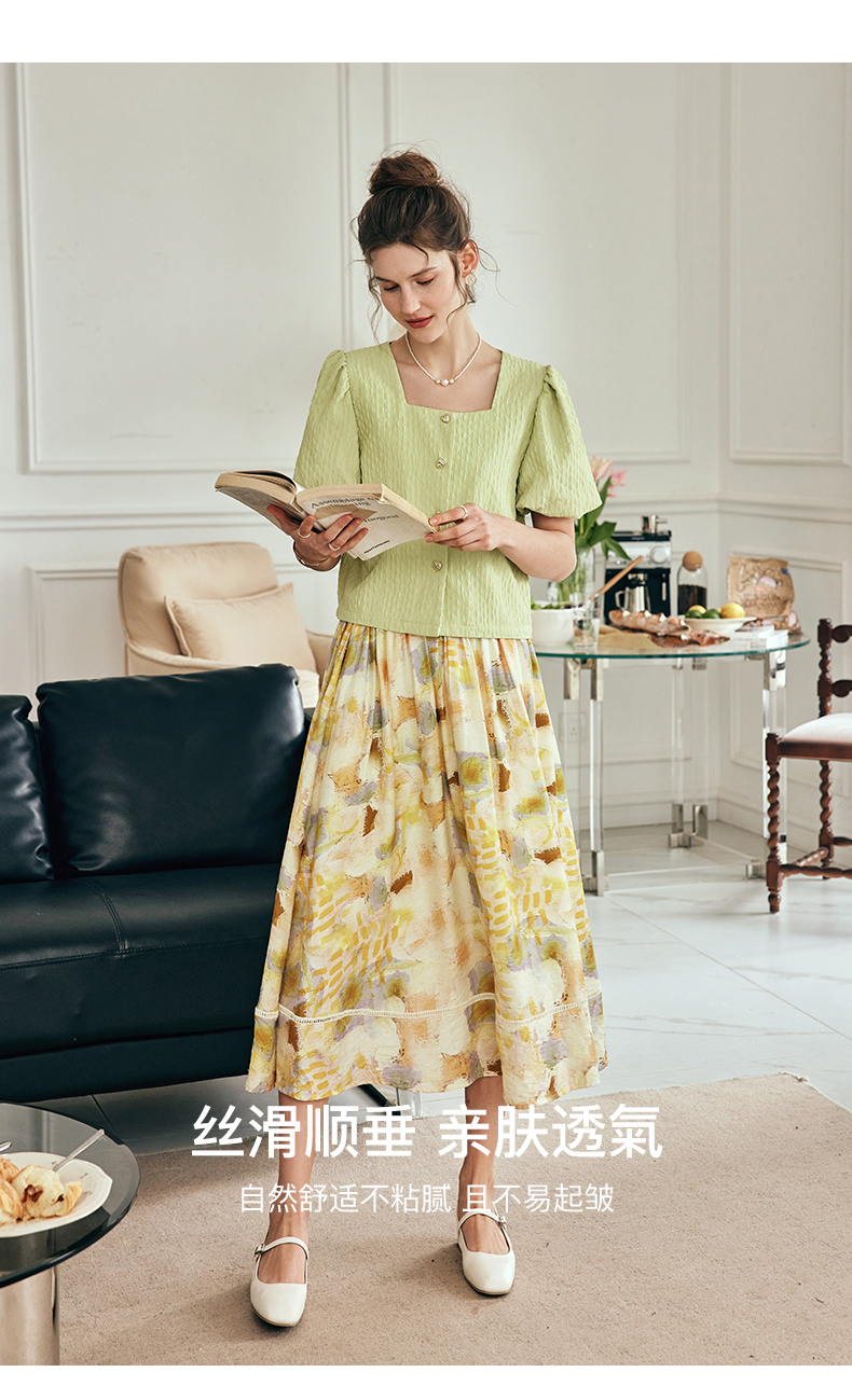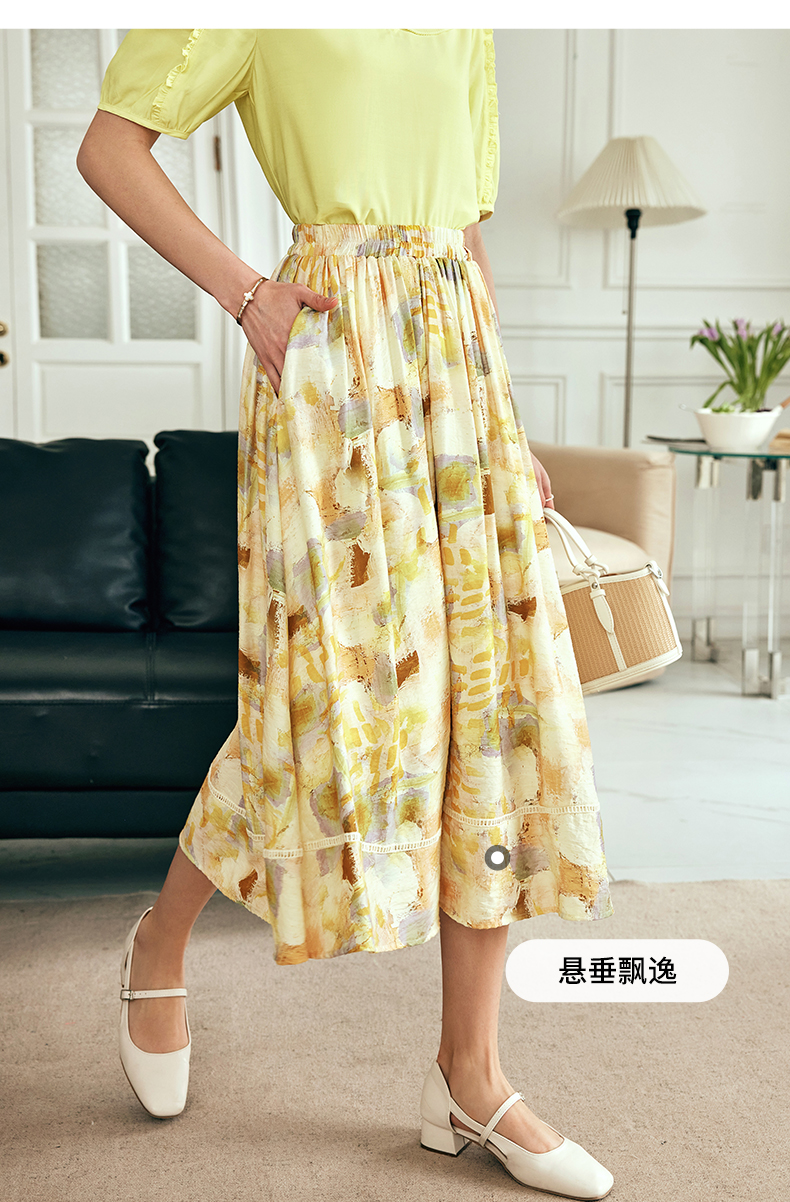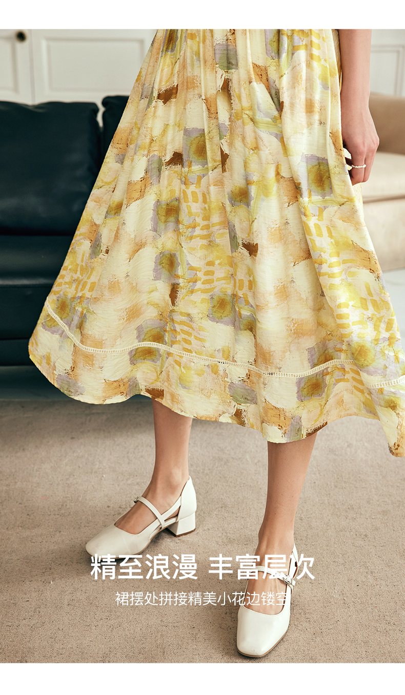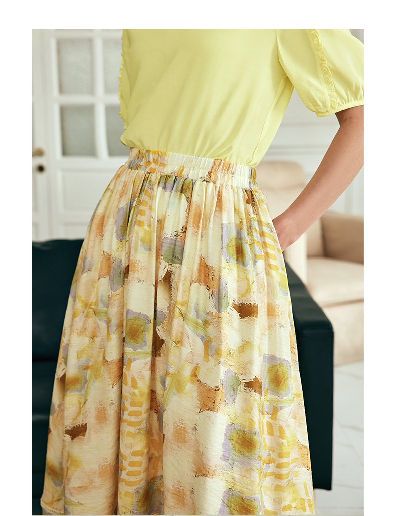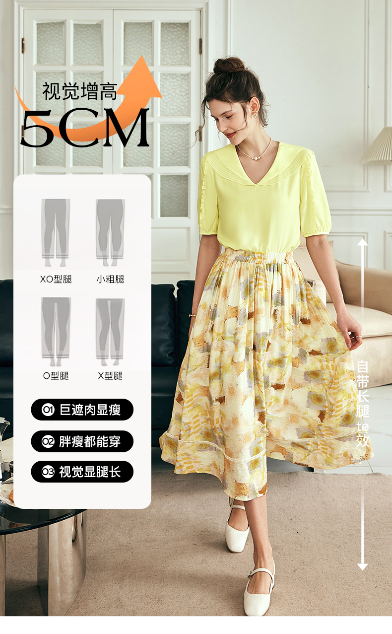 OLrain欧芮儿法式碎花半身裙女夏季2023新款高腰拼接镂空A字摆裙