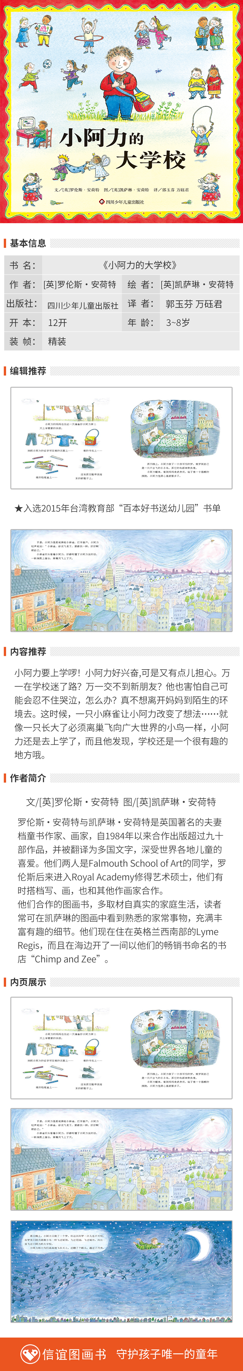 《小阿力的大学校》绘本,入学准备读物,缓解孩子对上学的抵触,给予孩子离开父母怀抱的力量(3-6岁)
