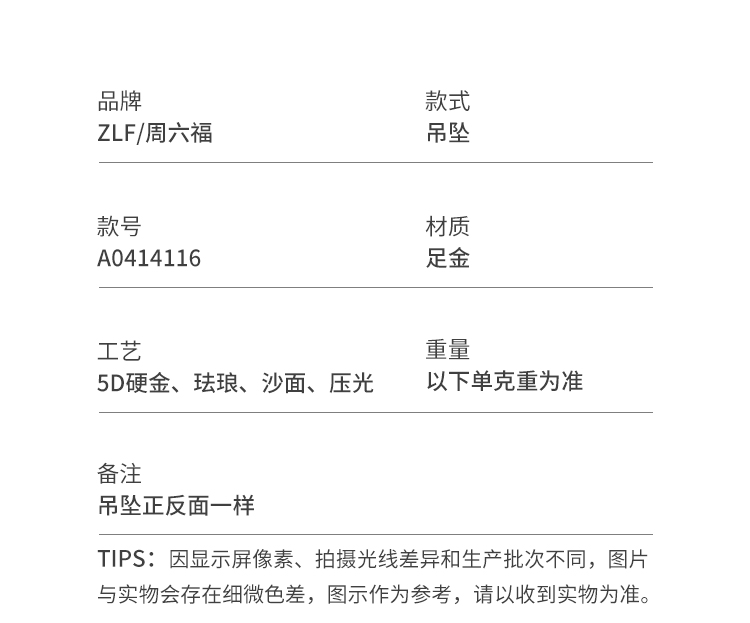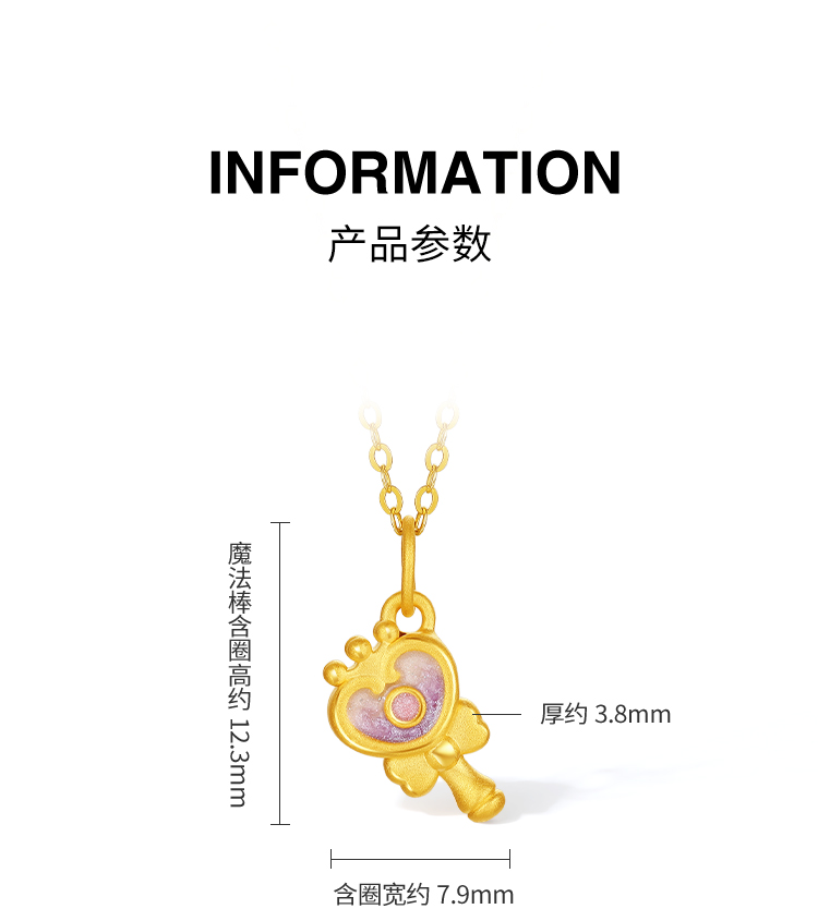 周六福黄金吊坠女款5d硬金珐琅魔法棒定价吊坠节日礼物官方旗舰店