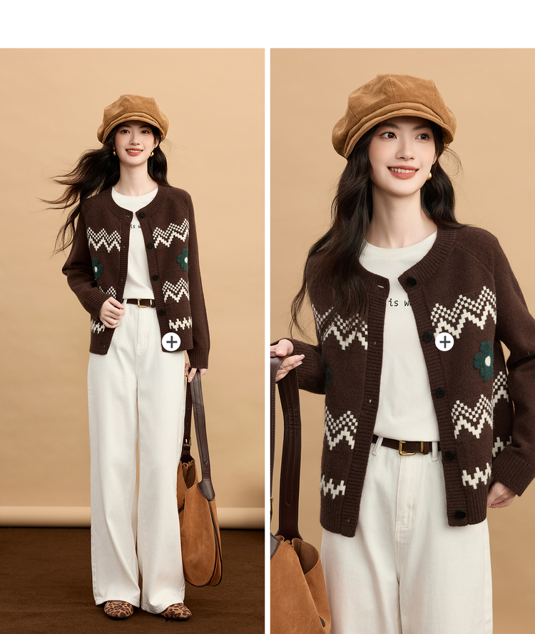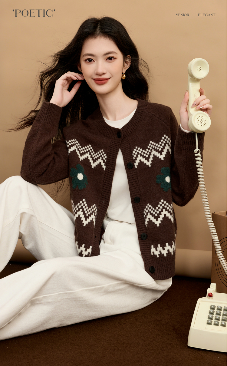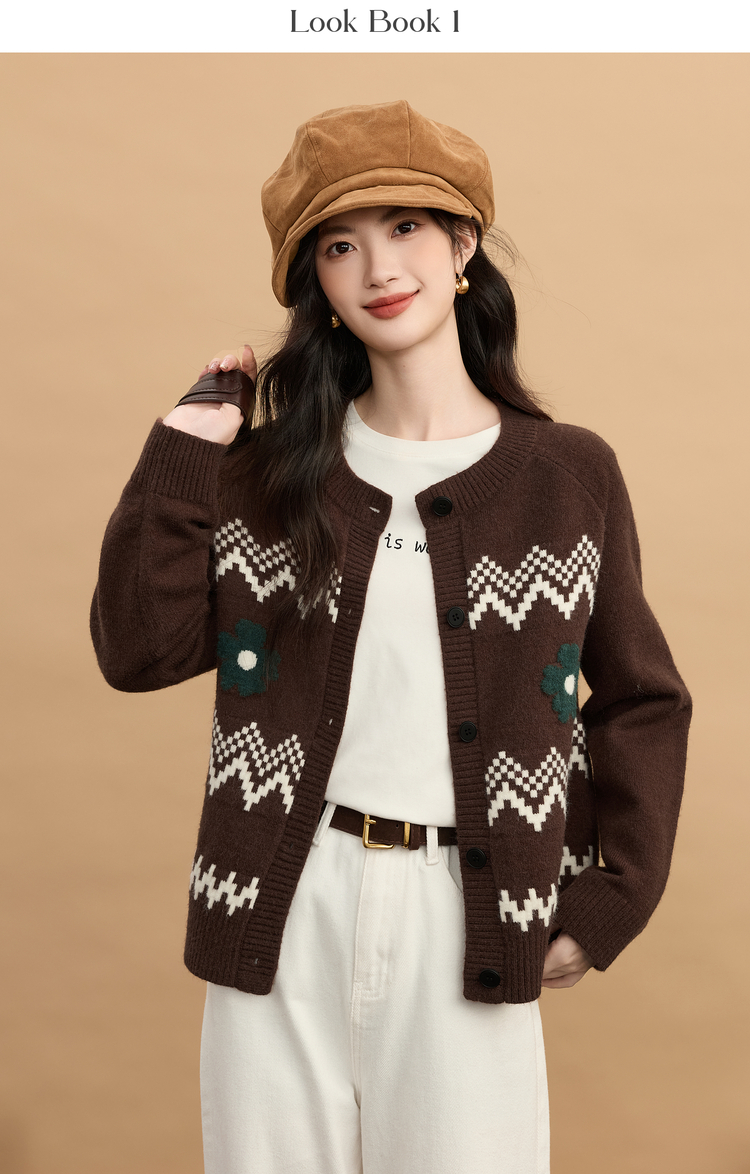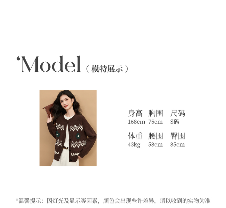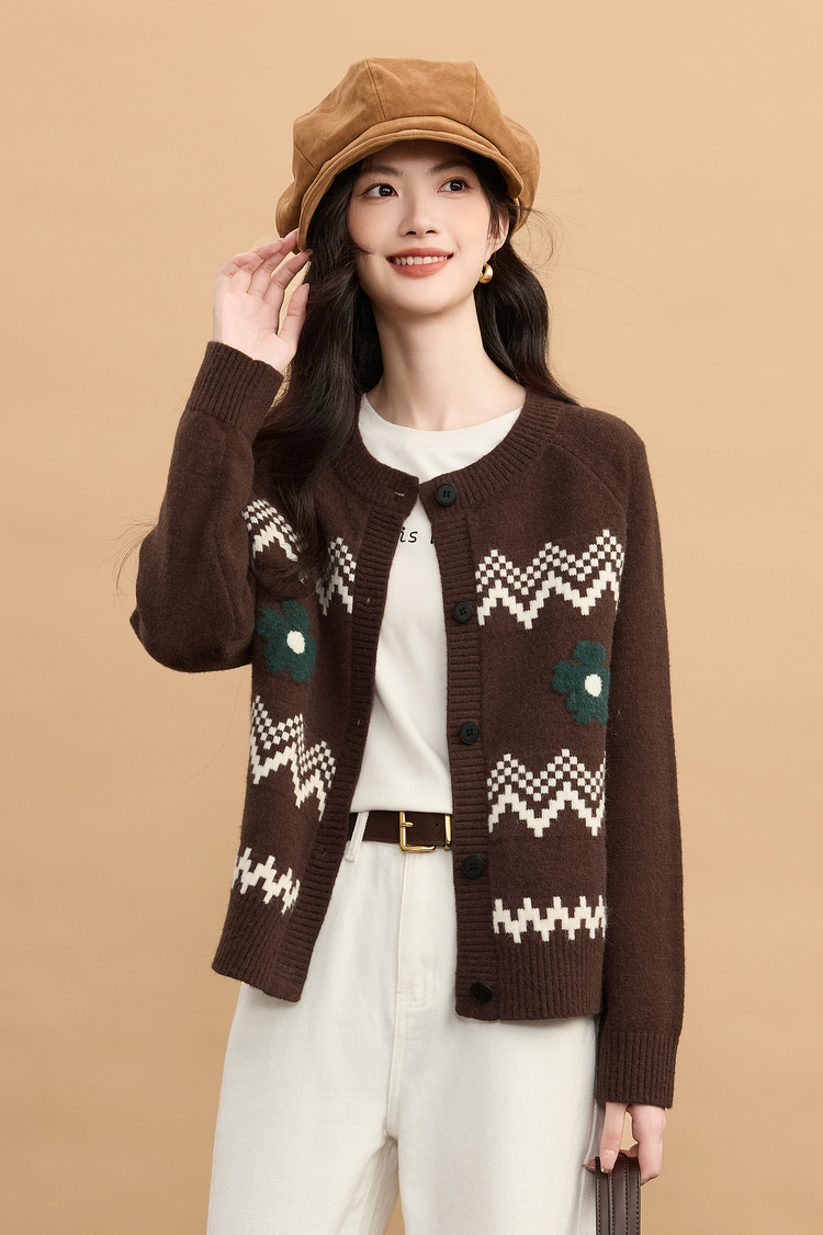 【周末秒杀】熙世界【费尔岛圣诞毛衣】复古提花针织开衫女秋冬长袖圆领短外套