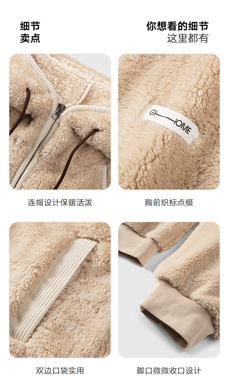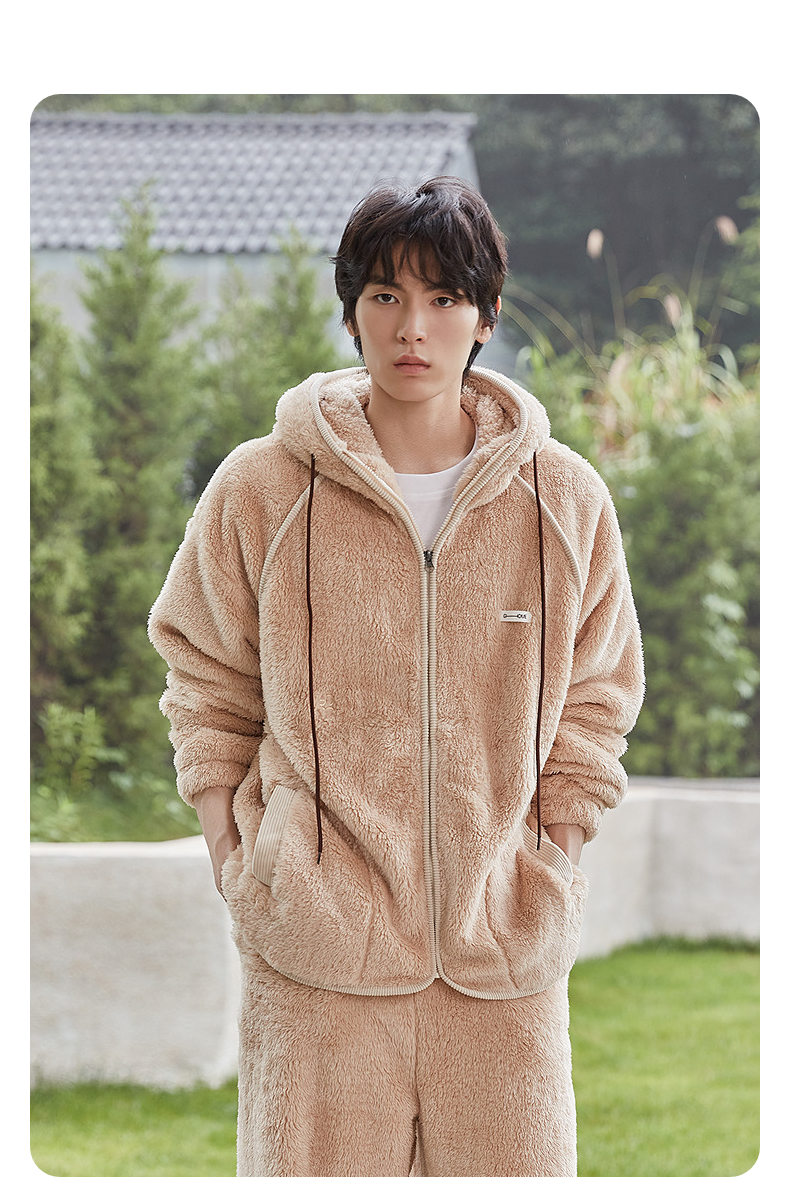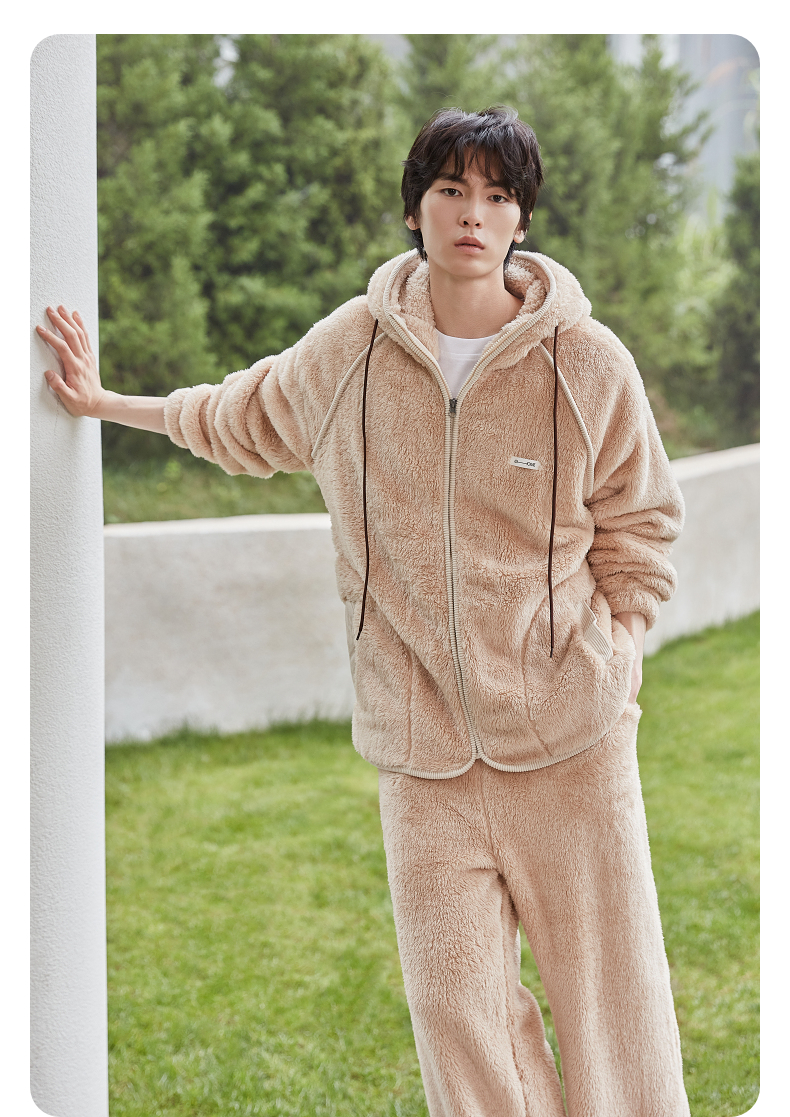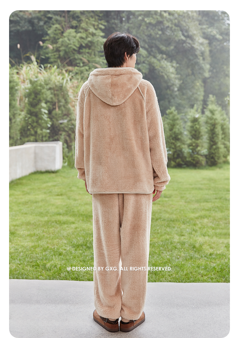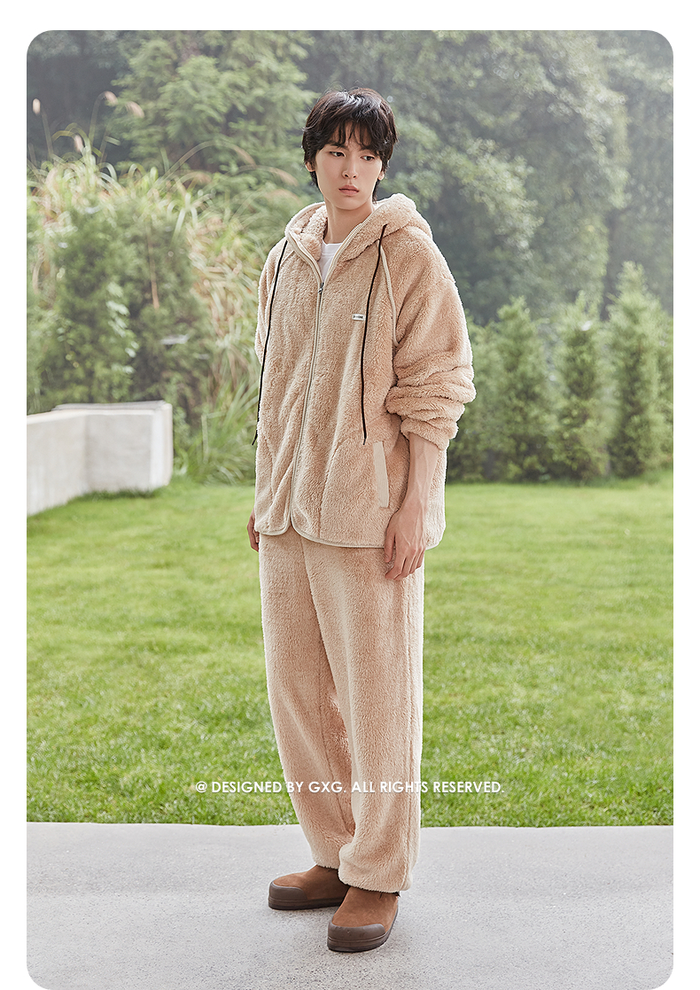 GXG男士家居服 肌理绒感拉链连帽睡衣外套休闲舒适睡衣套装冬季