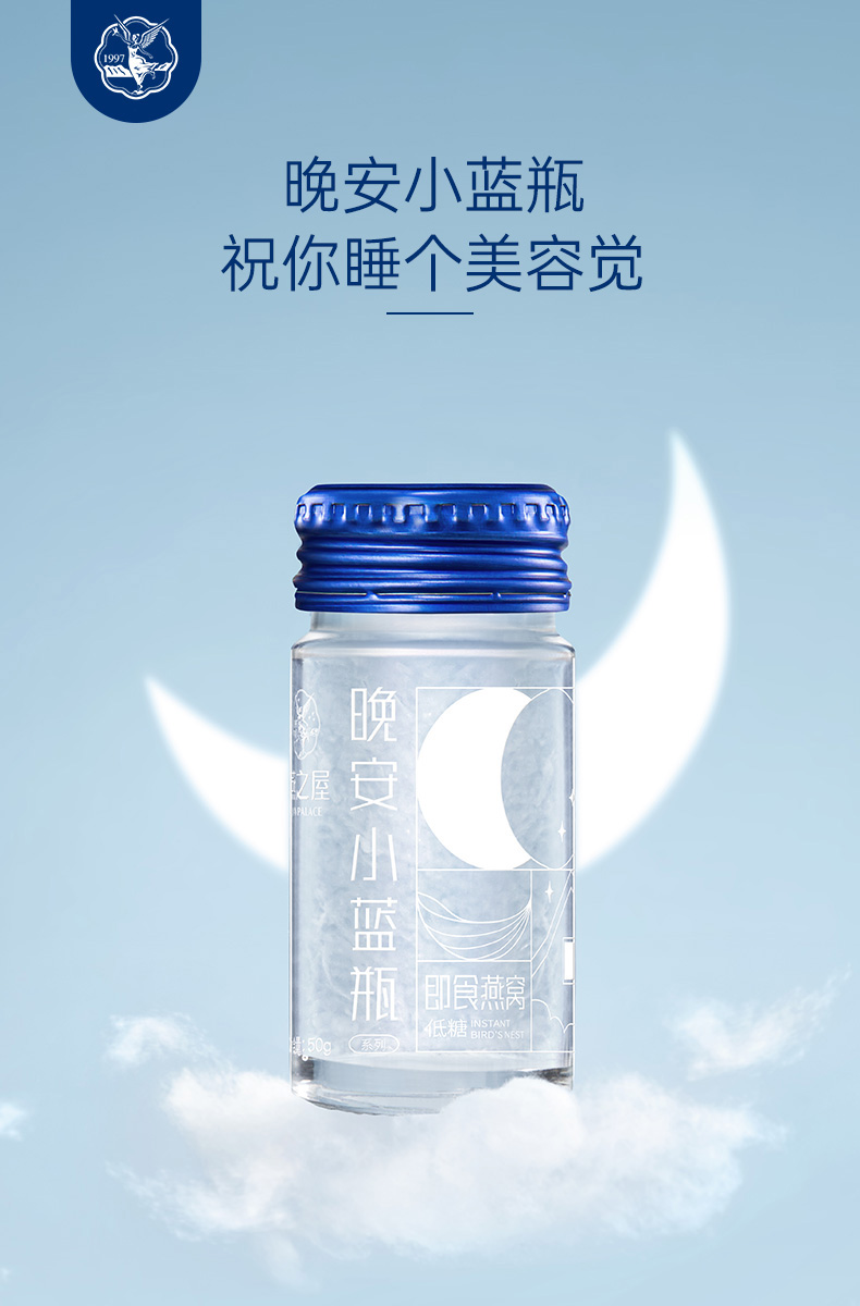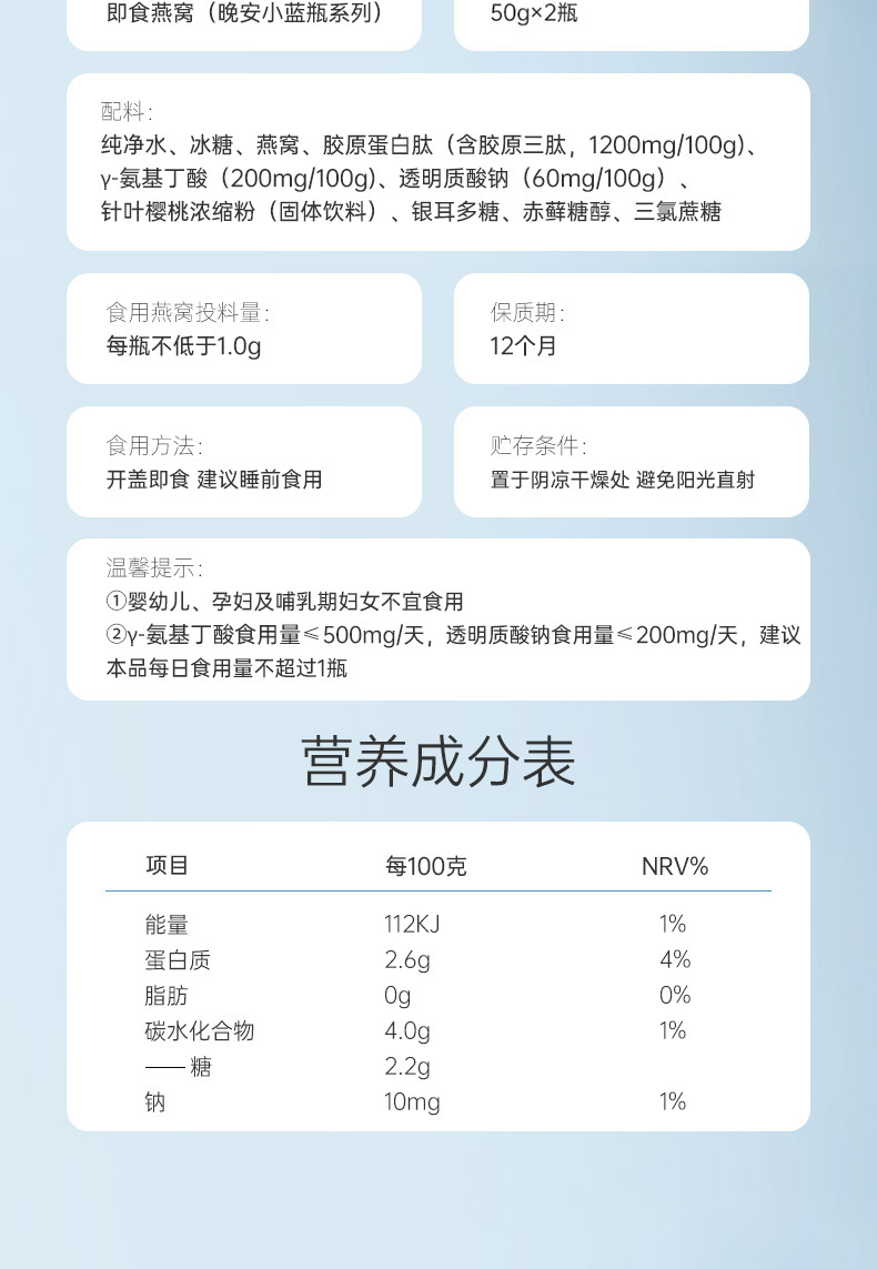 燕之屋即食燕窝晚安小蓝瓶50g*2瓶*15盒 燕窝饮含GABA晚安好眠【月套餐】