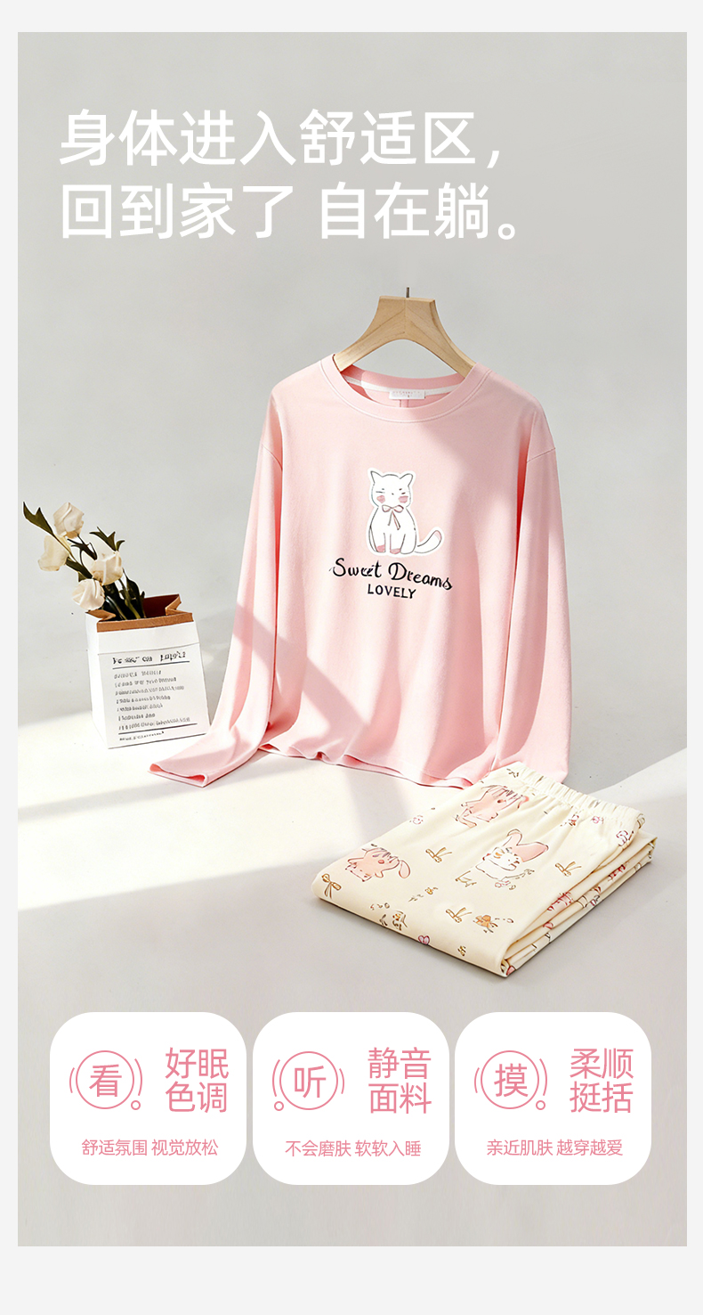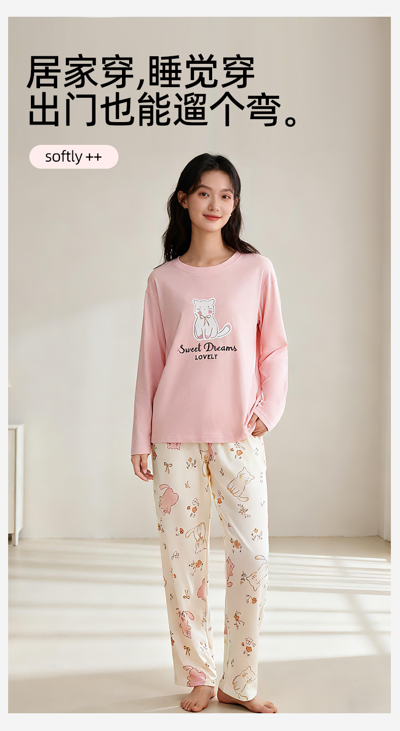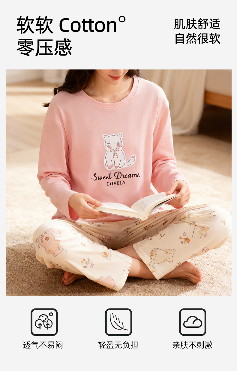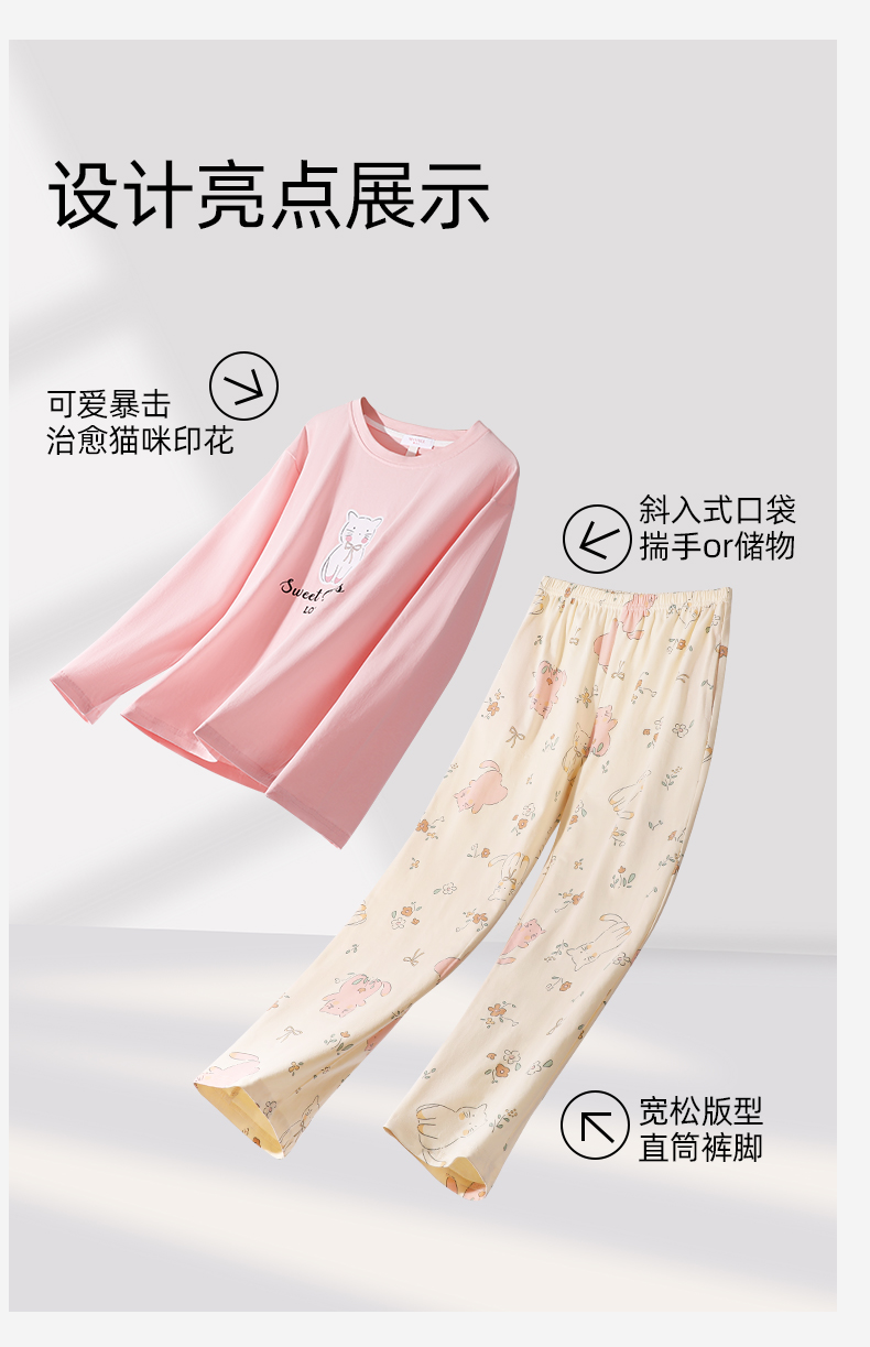 熳洁儿 纯棉女士家居服秋冬新款长袖长裤治愈猫咪印花25763206