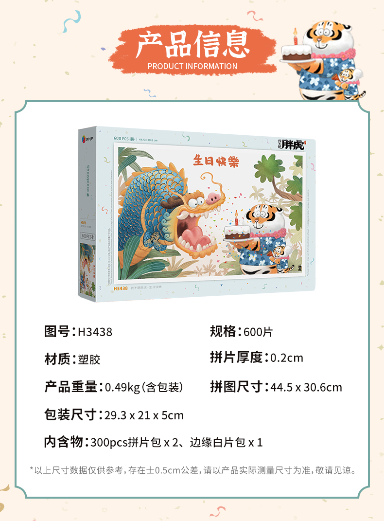 【折扣商品 不退不换】600片 平面塑料拼图 H3438 我不是胖虎-生日快乐