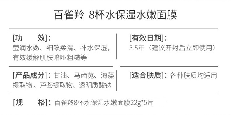 百雀羚草本精粹8杯水保湿水嫩面膜22g