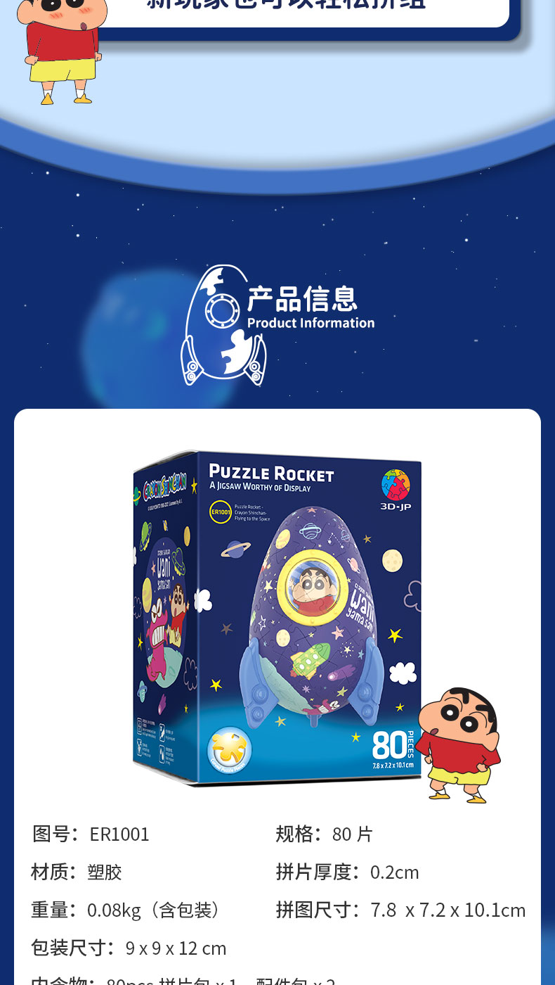 80片 火箭塑料拼图 ER1001 蜡笔小新-飞向太空