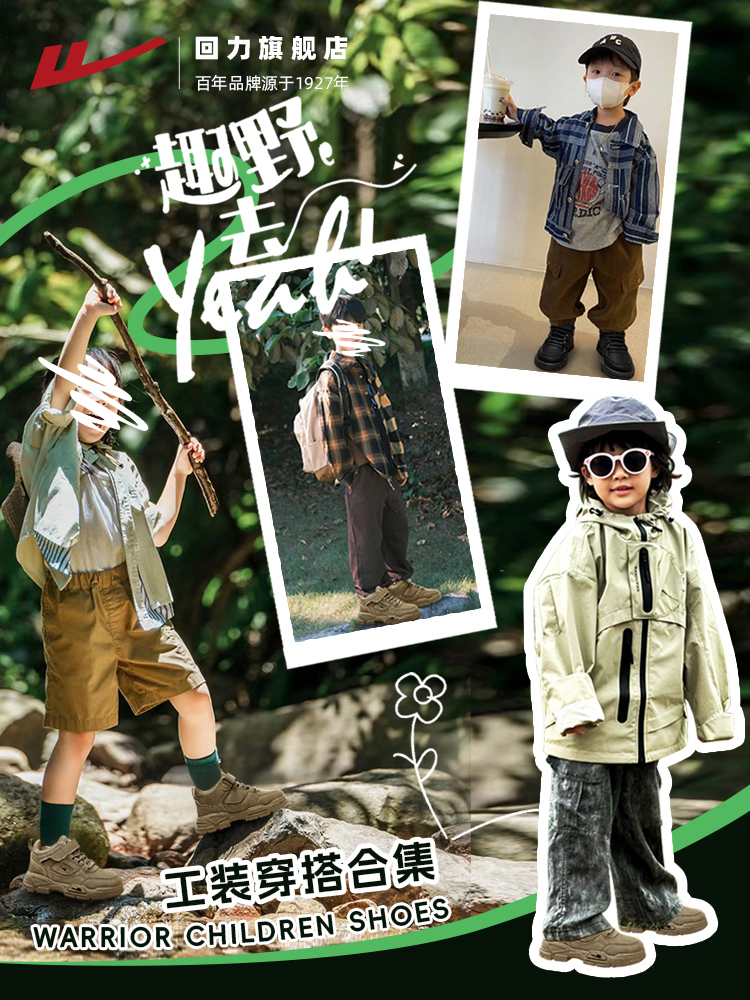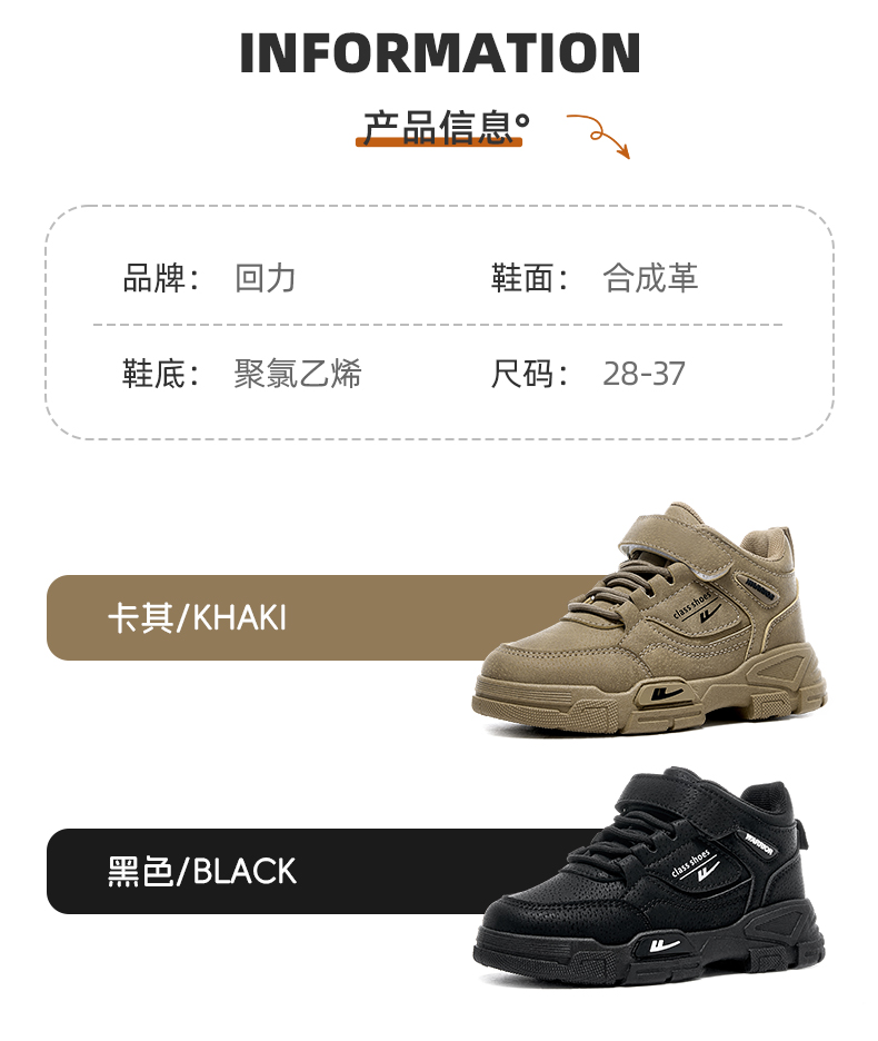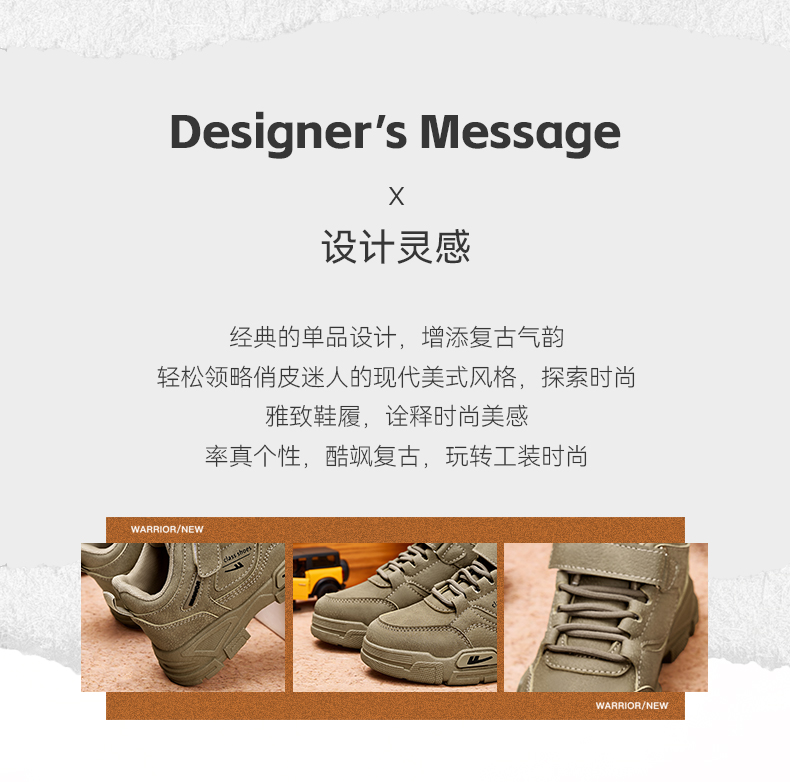回力儿童工装鞋男童冬季新款男孩小学生靴子男青少年户外登山童鞋