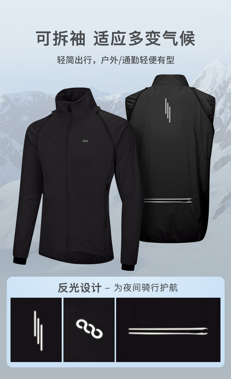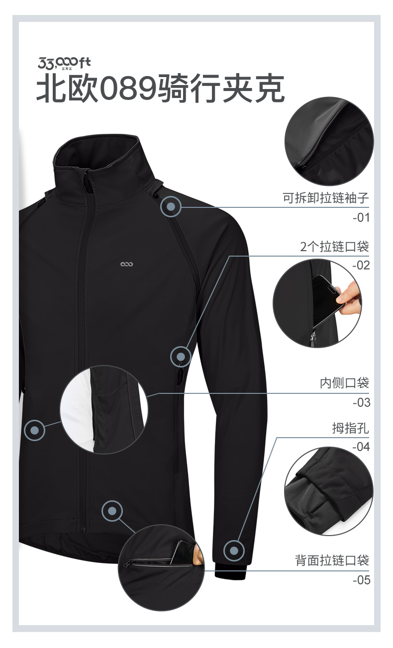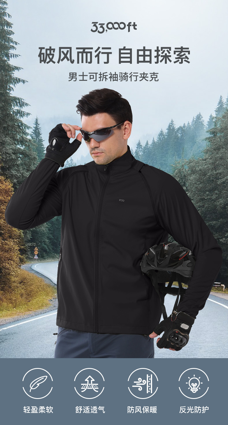 【199秒杀】33000ft户外骑行服男款防水袖子可拆卸安全反光条春秋轻薄软壳衣上衣