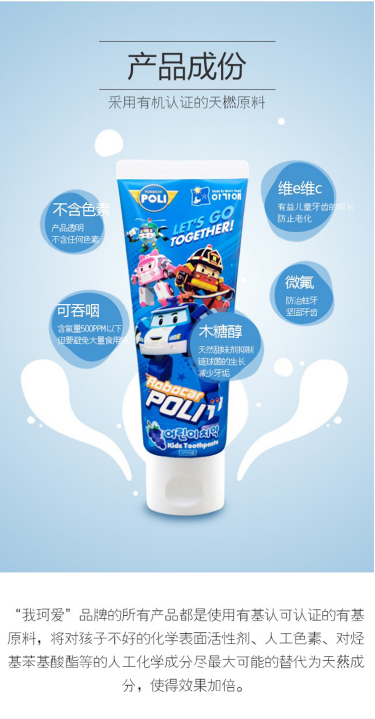POLI 我珂爱变形汽车牙膏草莓香80g【中】