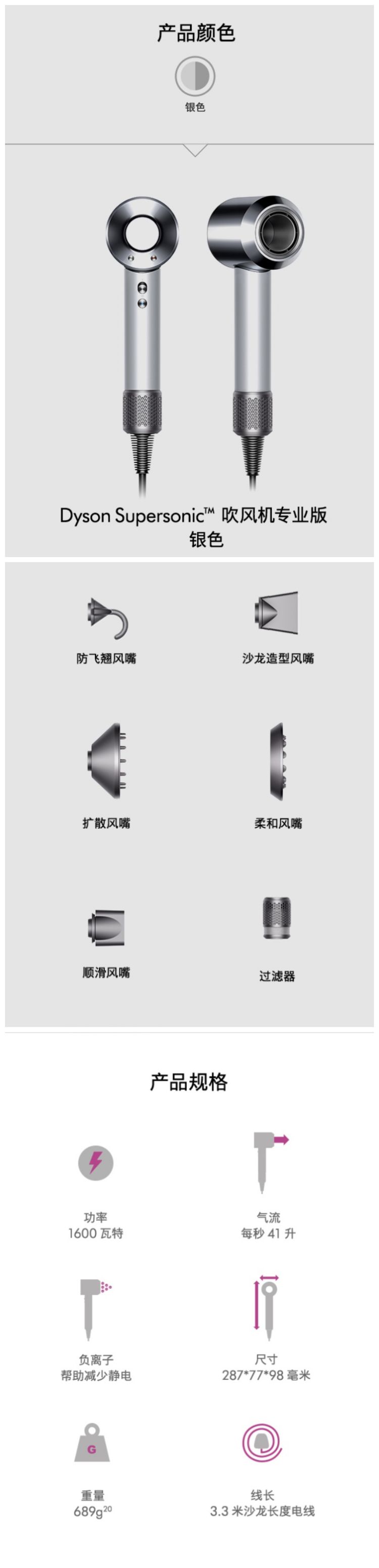 Dyson戴森戴森吹风机专业版 Dyson Supersonic HD12(银色)