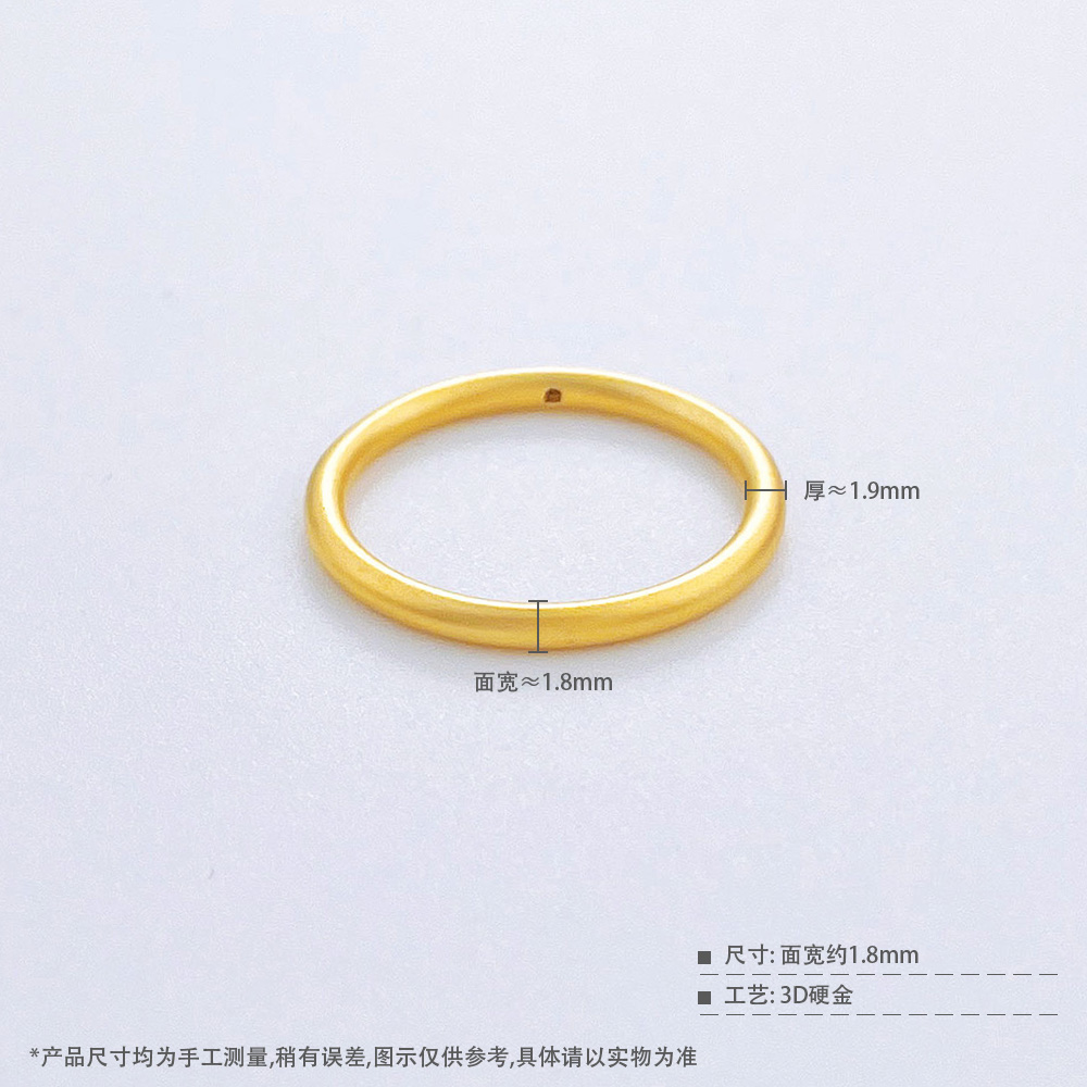 【限时克减150元】足金 3D硬金空心固口三生三世磨砂素圈戒圈戒(面宽约1.6-2mm)(AR3DJZ00020)(预售产品下单后不退款不退货不换货不补差价)