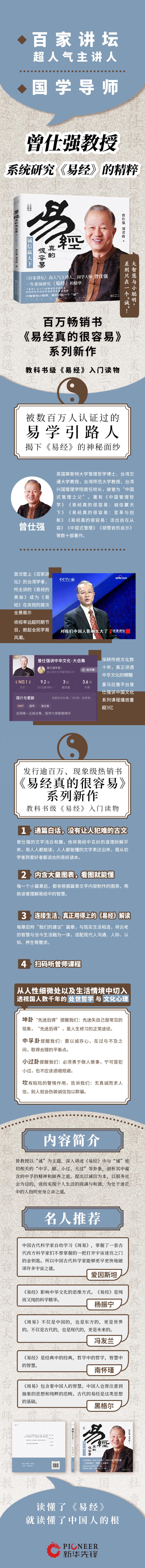 1、国学大师、百家讲坛主讲人曾仕强:一生研究《易经》的精粹,全新解读,重磅力作。2、文字浅白,内含大量配图,搭配音频课程:用特别简单的话讲透特别本质的规律,《易经》从入门到精通其实很容易。3主题式解读,卦爻拆解:本书以10大版块,60个小节,从性格、环境、认知、精神等方面阐述《易经》中蕴含的人生至理,为处于迷茫的人们指明幸福之道。4、教科书级易经入门读物:现代人要深入研读《易经》,首先就要从《易经真的很容易》系列开始。
