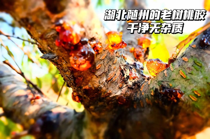 采撷随州当季新鲜桃胶,富含膳食纤维、桃胶可多糖、水分、蛋白质和维生素等多重营养