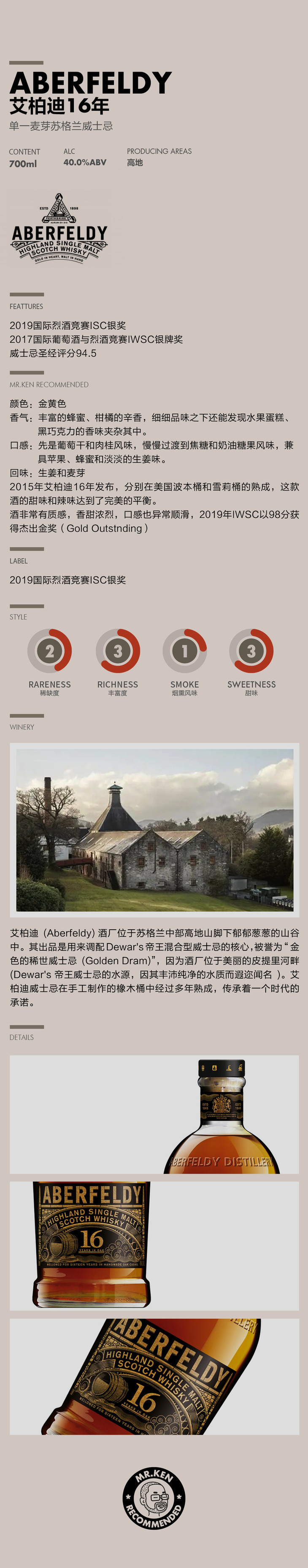 【39900积分】艾柏迪(Aberfeldy)16年单一麦芽苏格兰威士忌