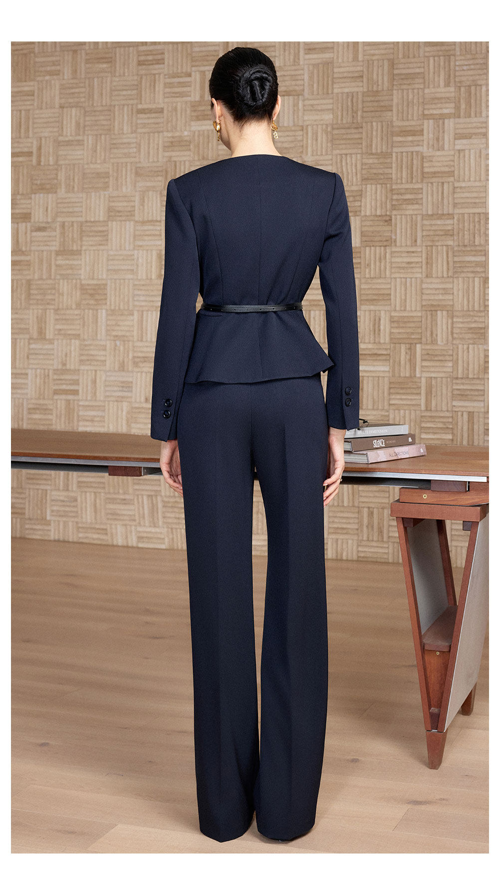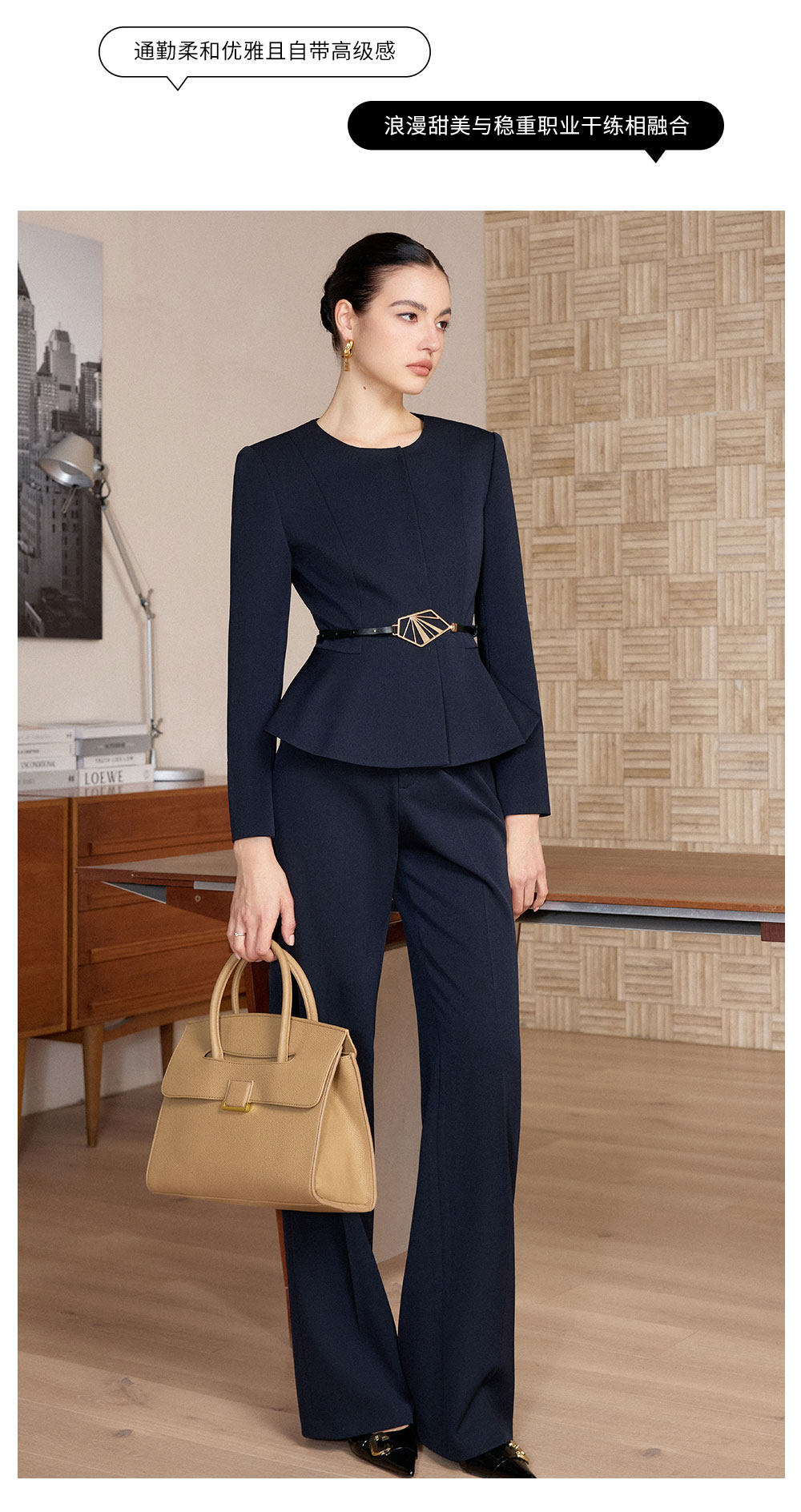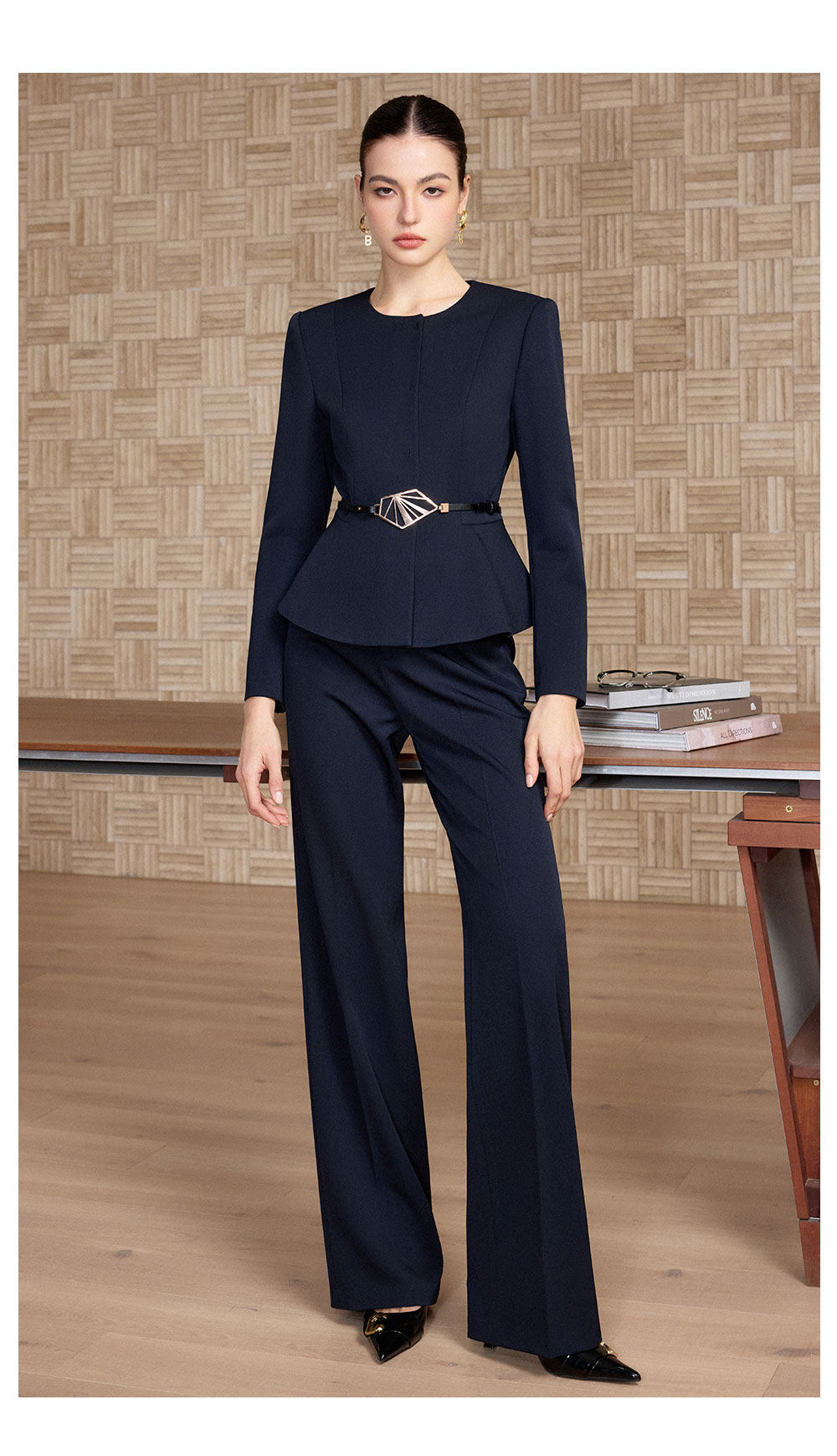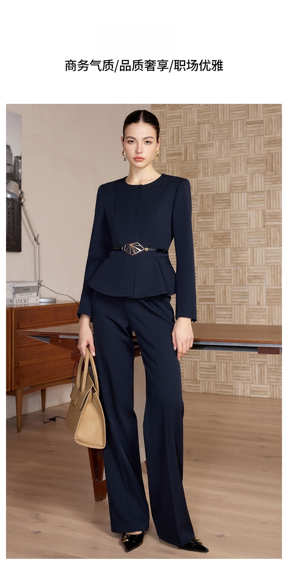 IWY/春季新款藏蓝色西装套装女职业装阔腿裤商务总裁两件套正装CP2733