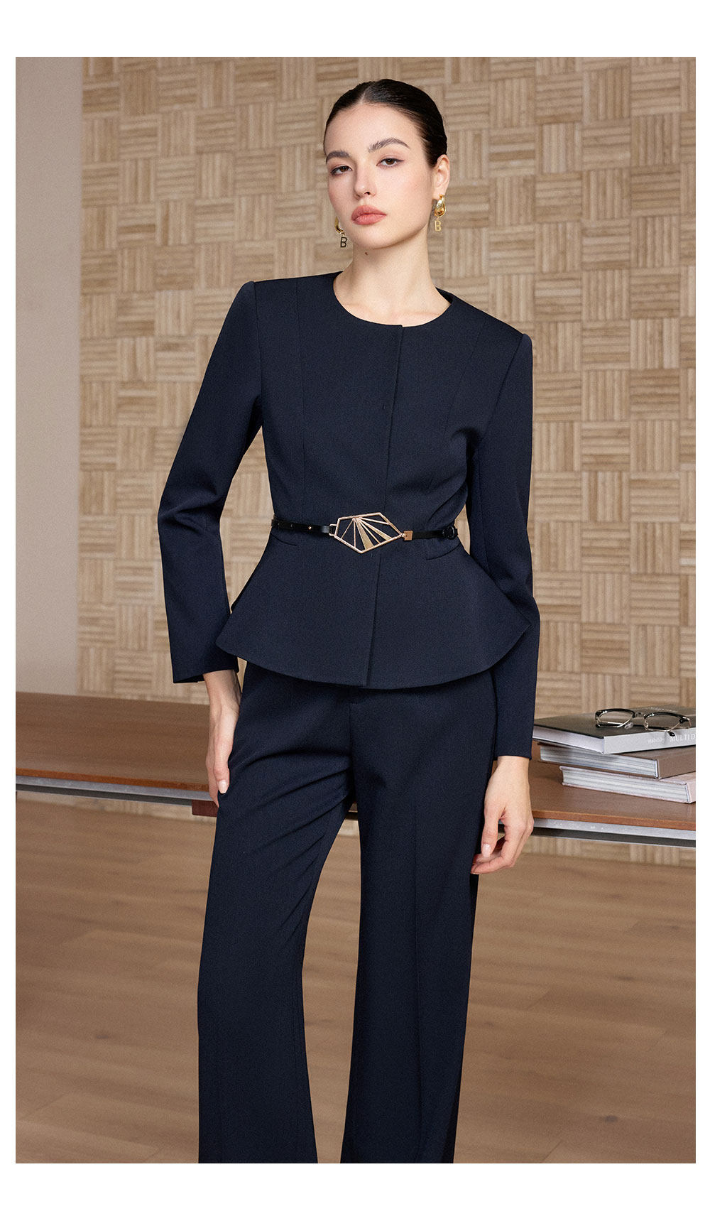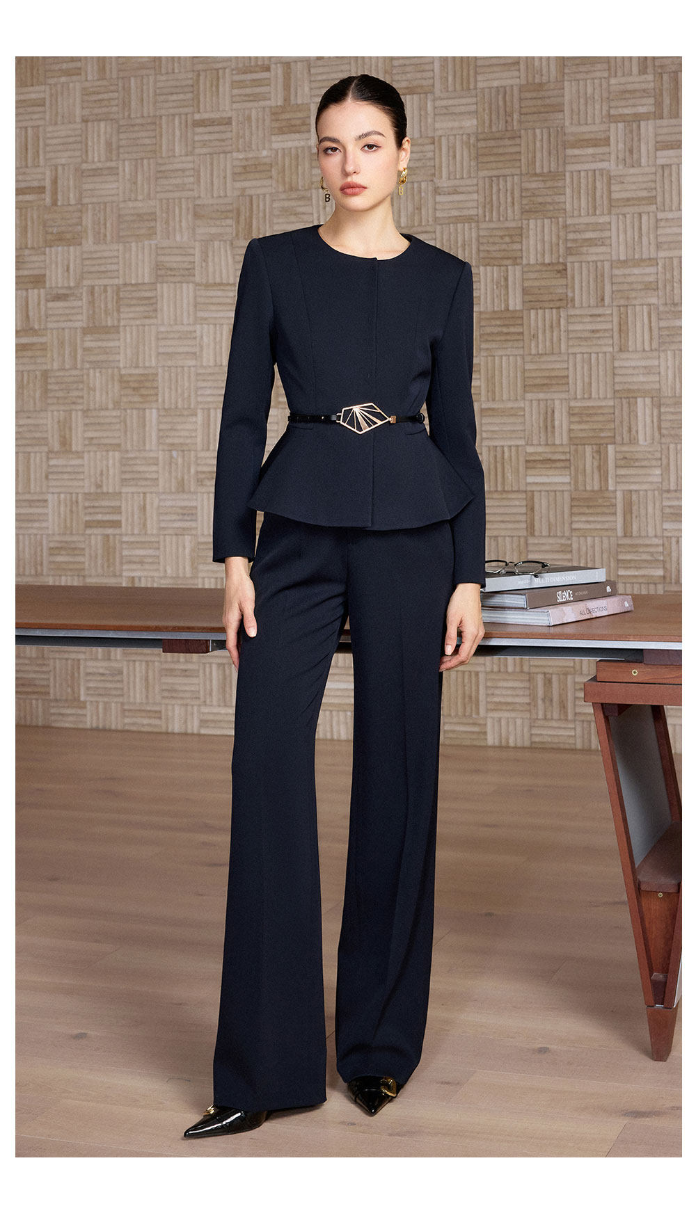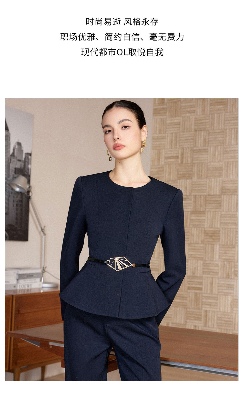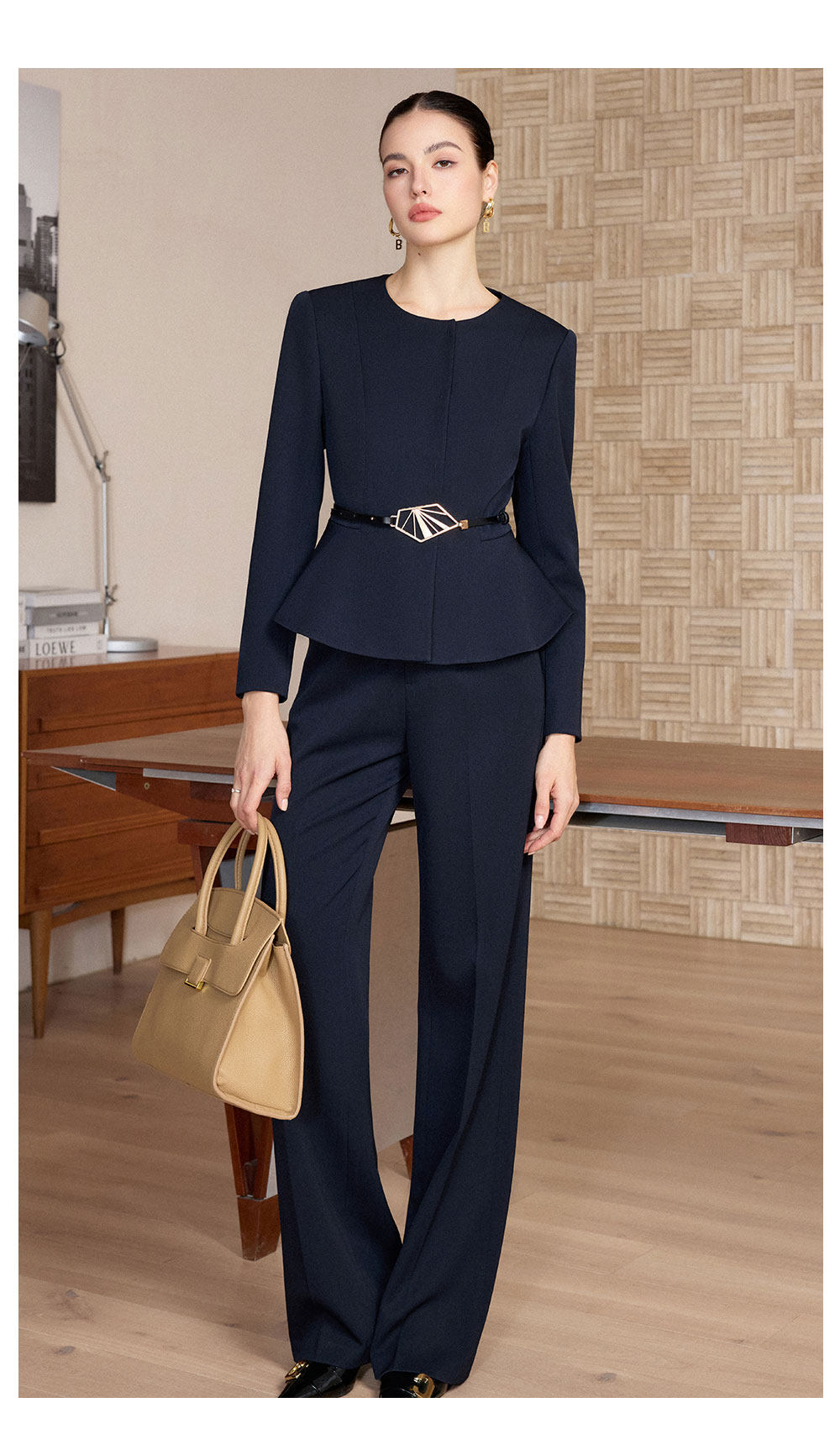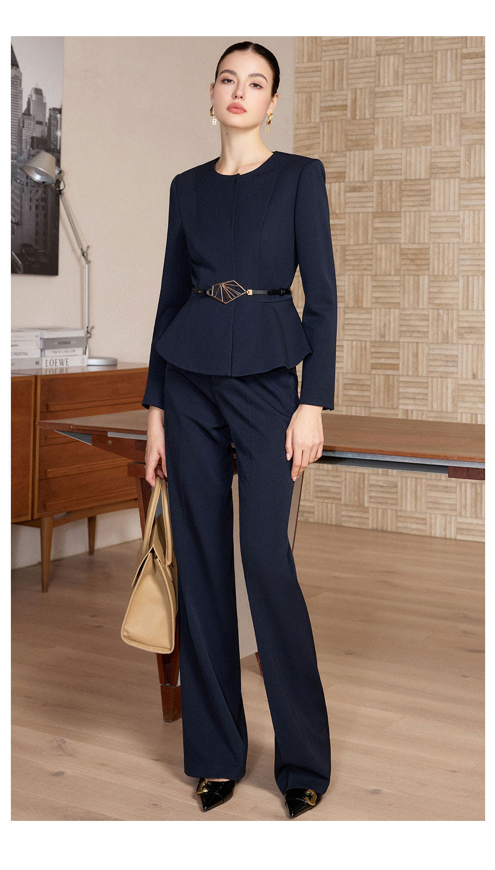 IWY/春季新款藏蓝色西装套装女职业装阔腿裤商务总裁两件套正装CP2733