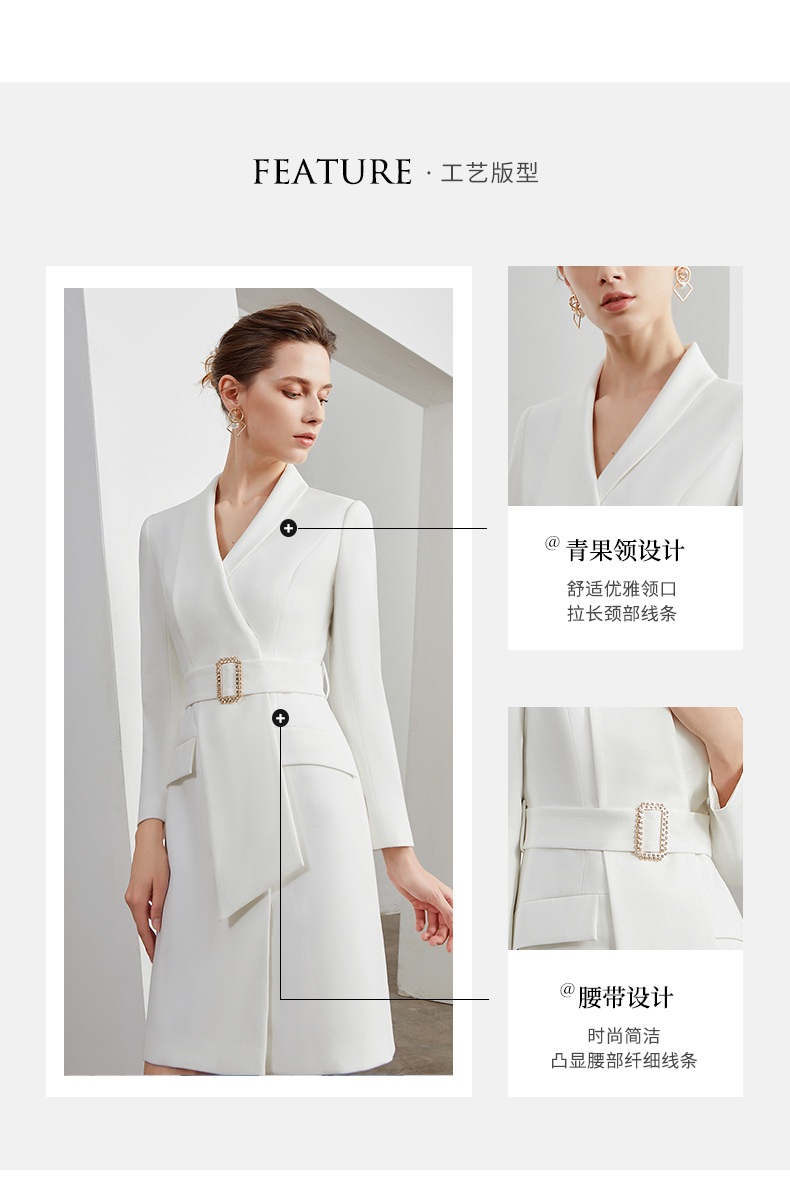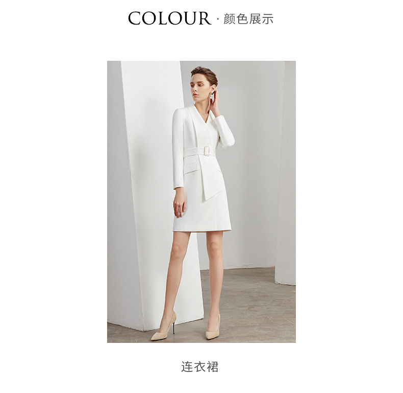 IWY/白色西服连衣裙收腰显瘦工作服女播音主持艺考正装职业装Q11112-W