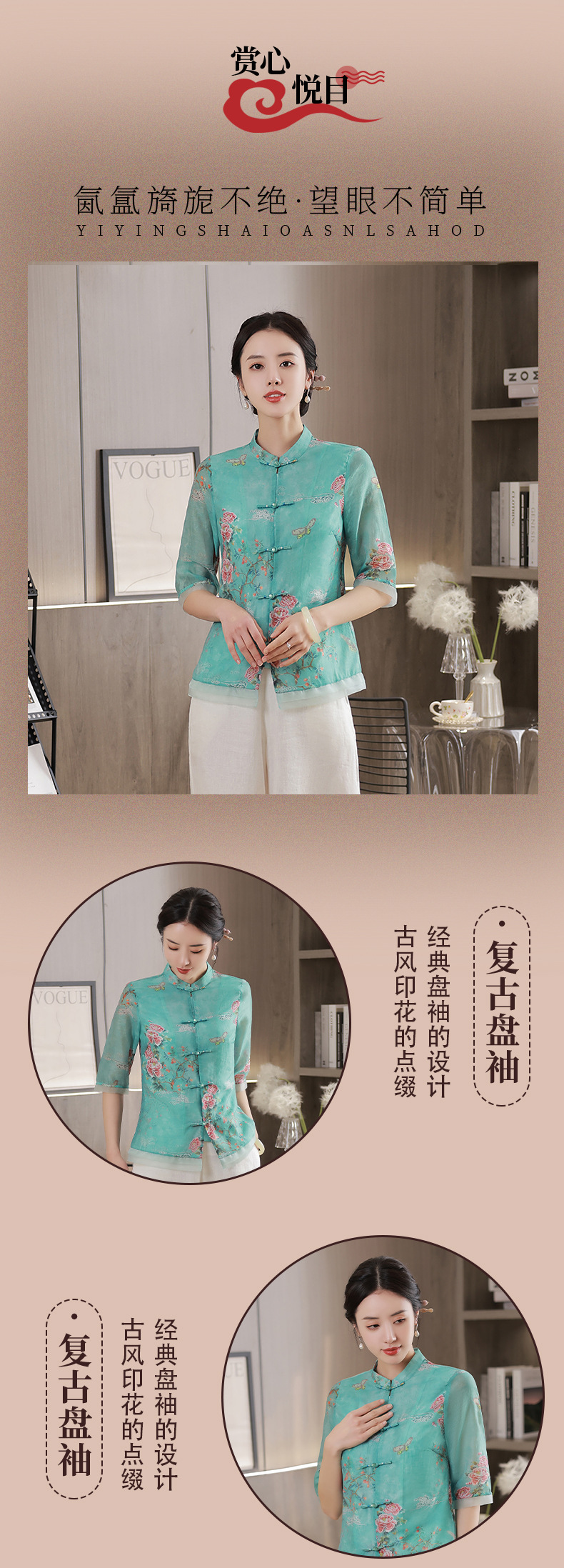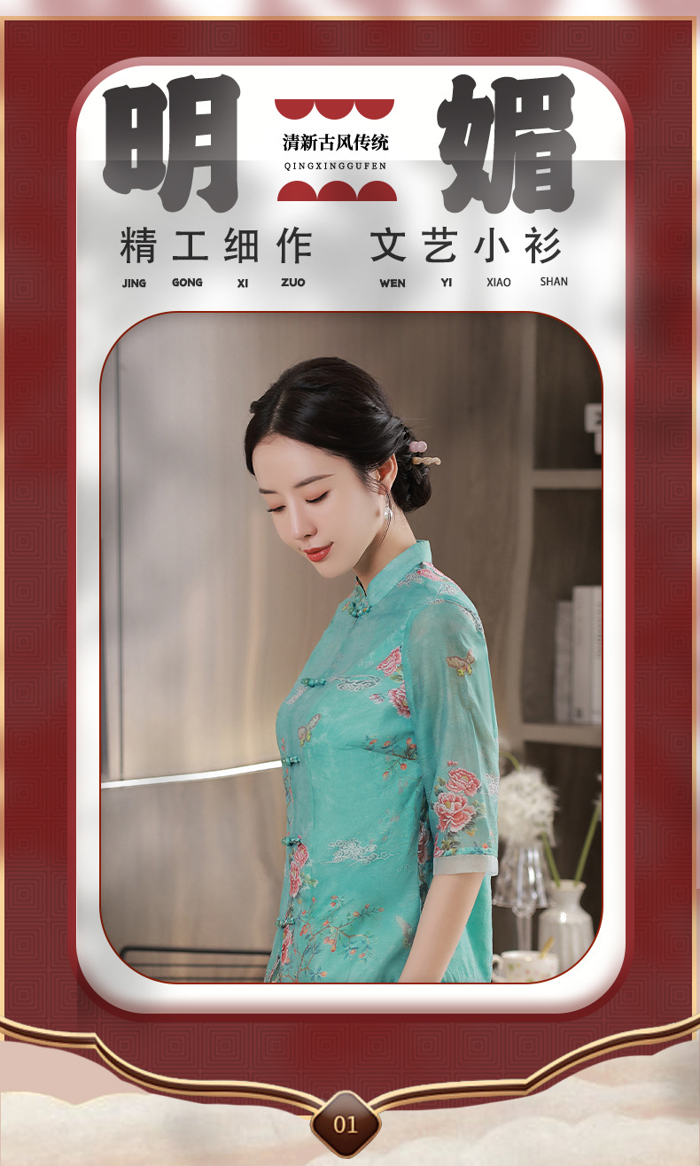 旗袍2022新款复古中式中国风蚀骨日常装上衣改良版 JLM2251