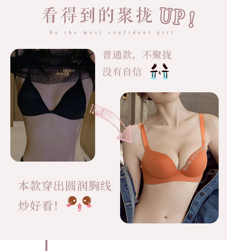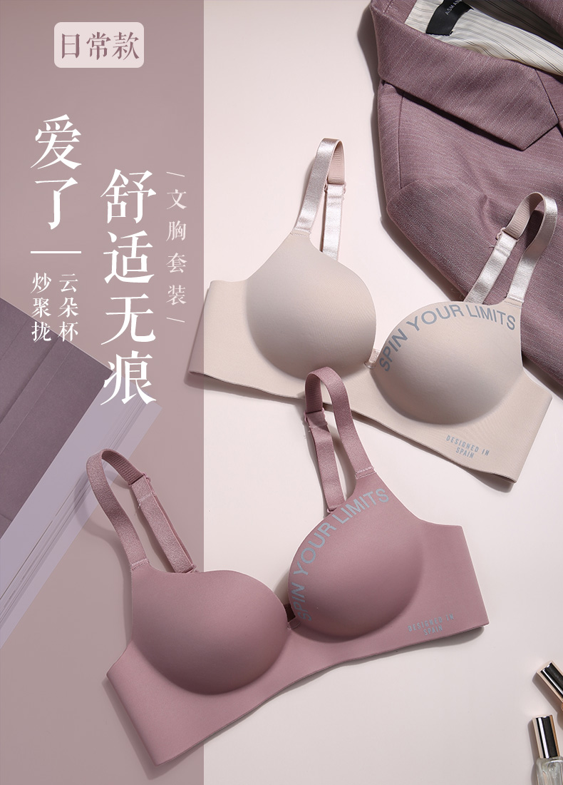 黛唯梵无痕内衣女小胸聚拢无钢圈加厚美背胸罩调整型上托一片式文胸套装