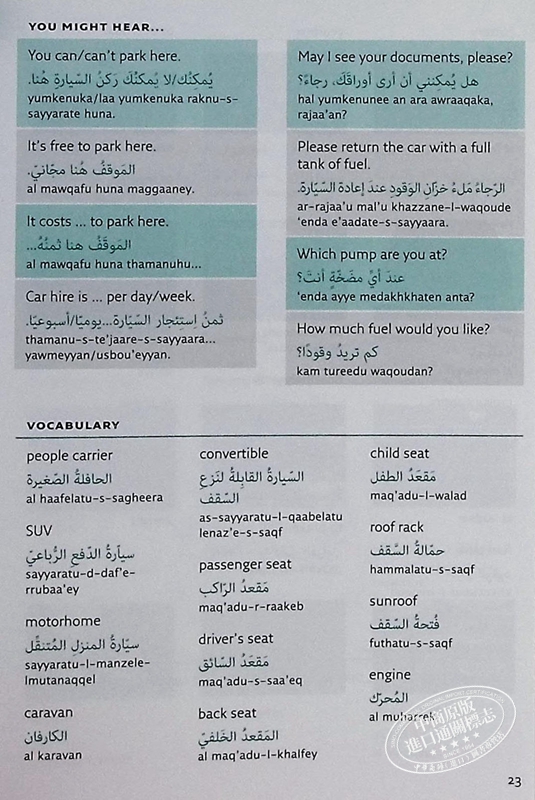 3,000 essential words and phrases for modern life in Arabic-speaking countries are at your fingertips with topics covering food and drink, home life, work and school, shopping, sport and leisure, transport, technology, and the environment.