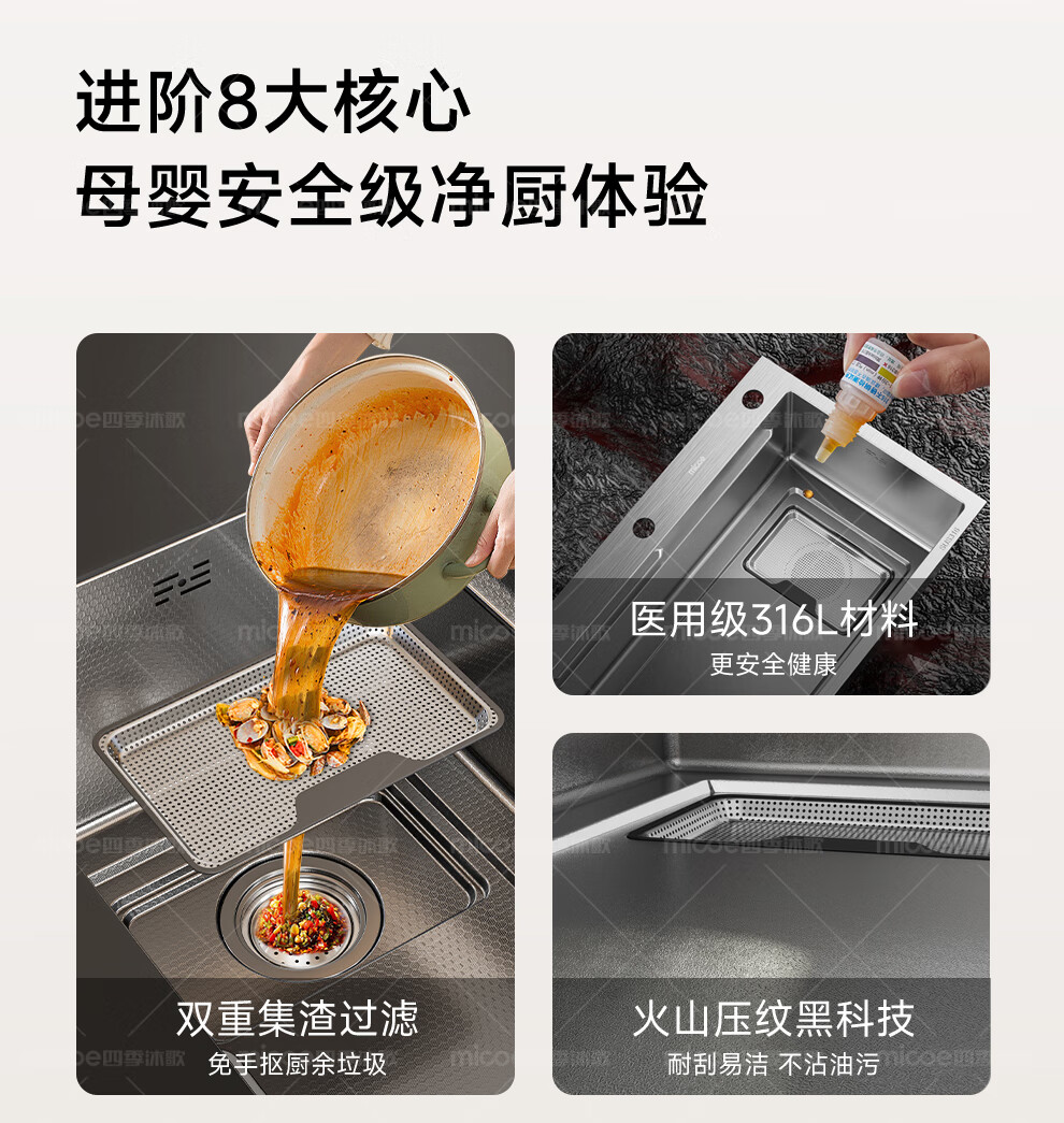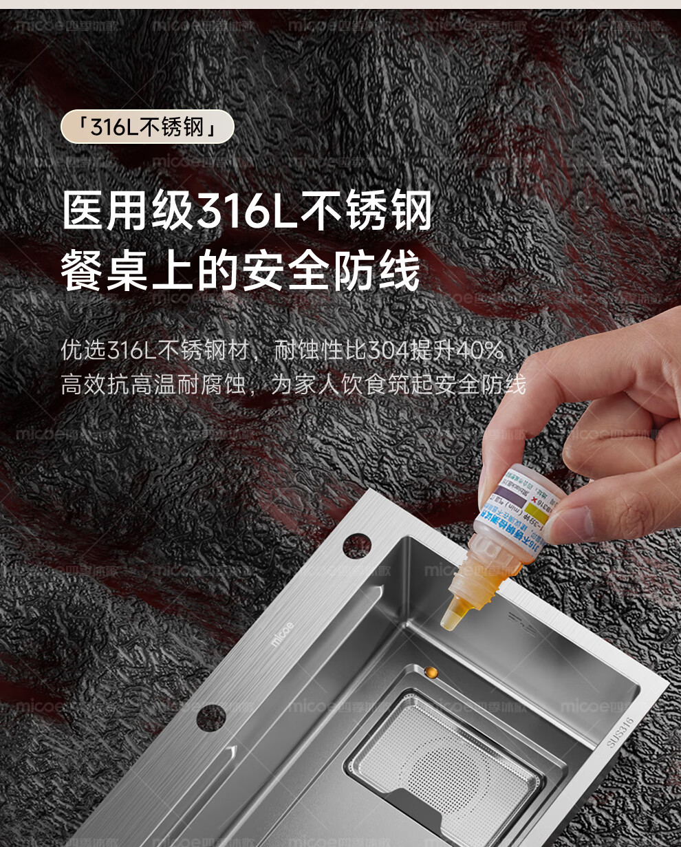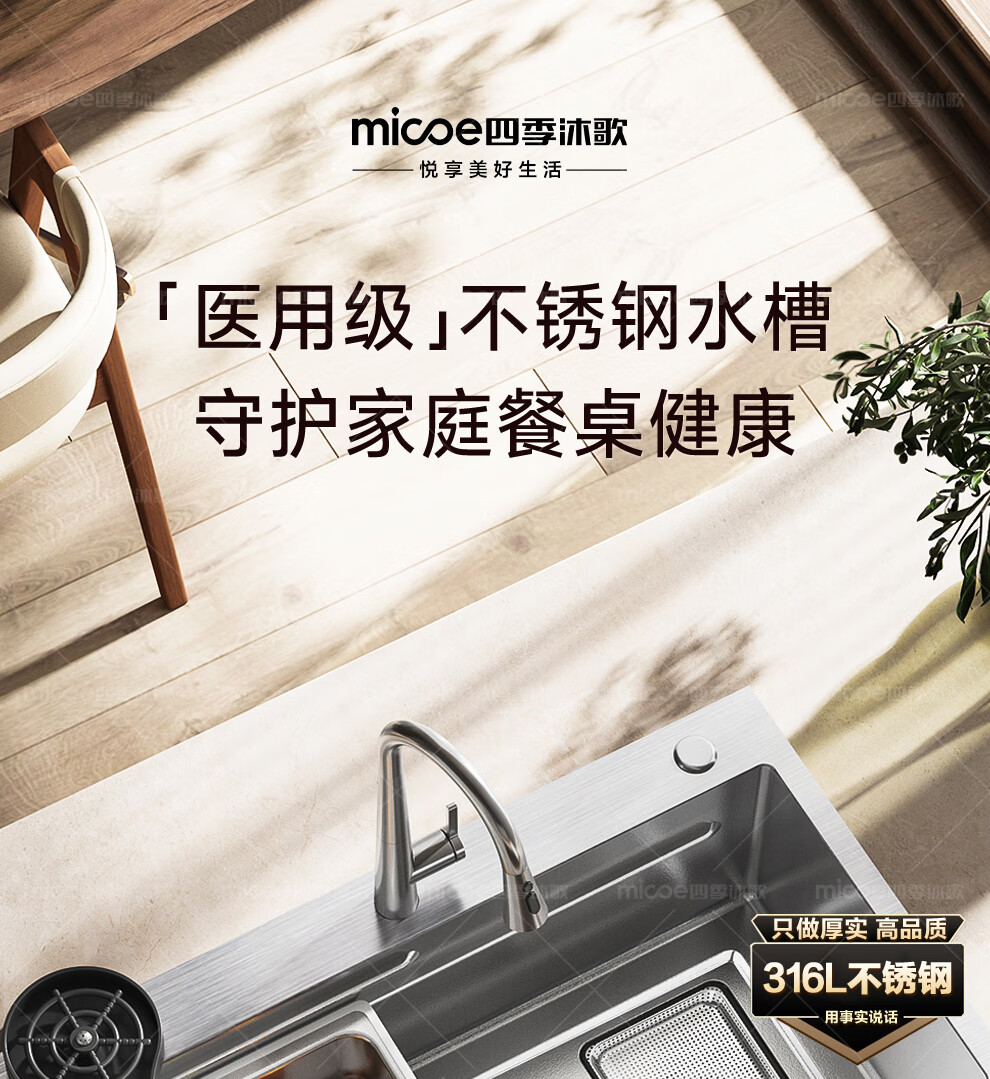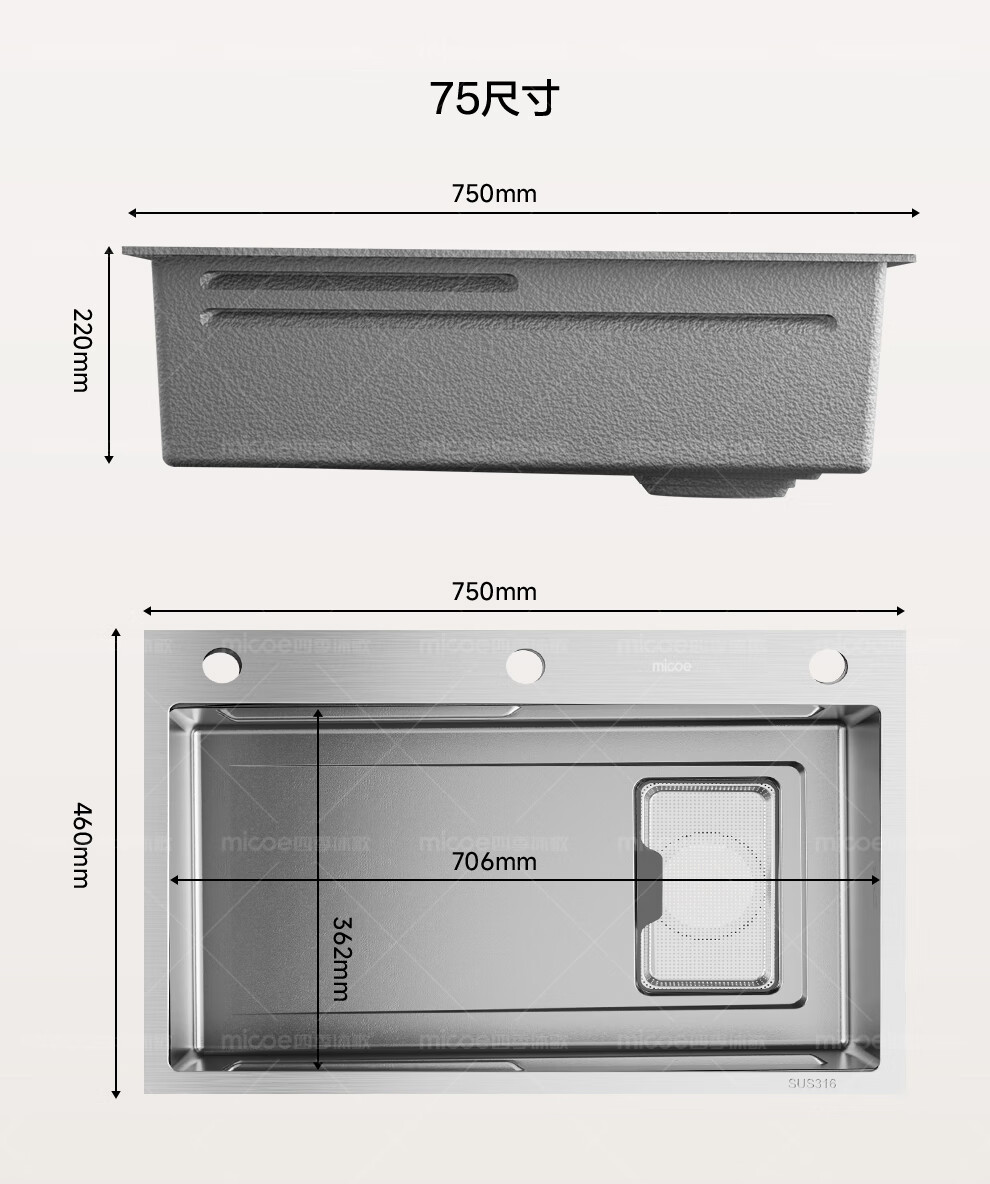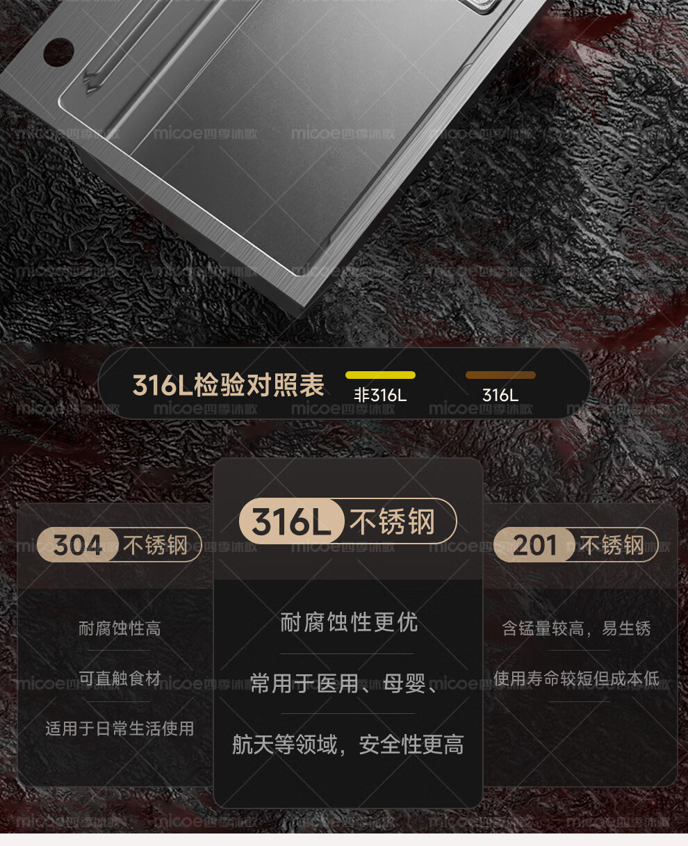 四季沐歌(MICOE)厨房手工水槽316L不锈钢洗菜盆洗碗槽大容量单槽 万家 【M-B120福禄盆L9】68*46/75*46 医用级316