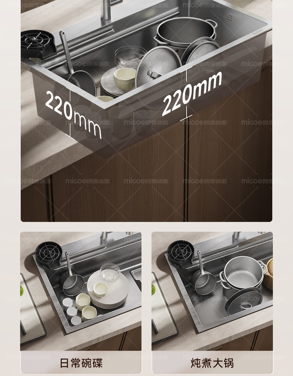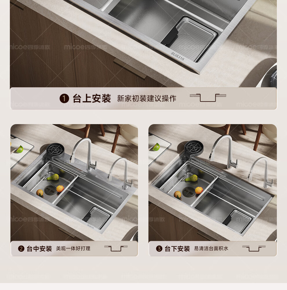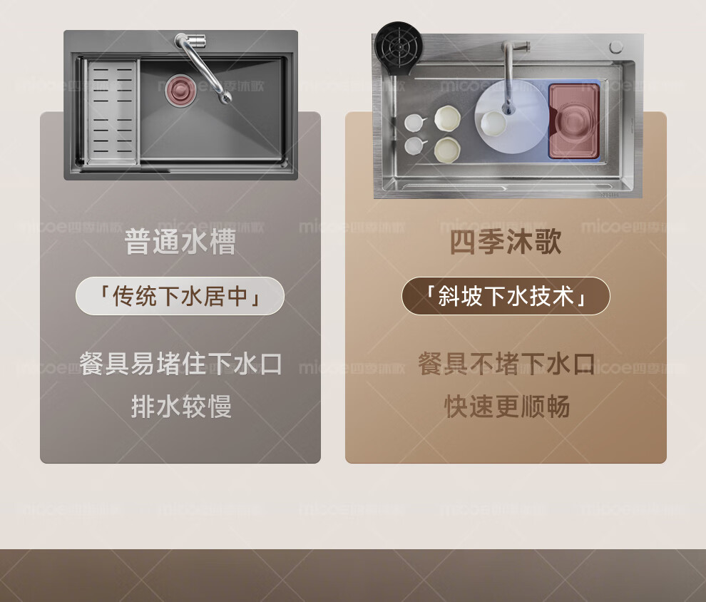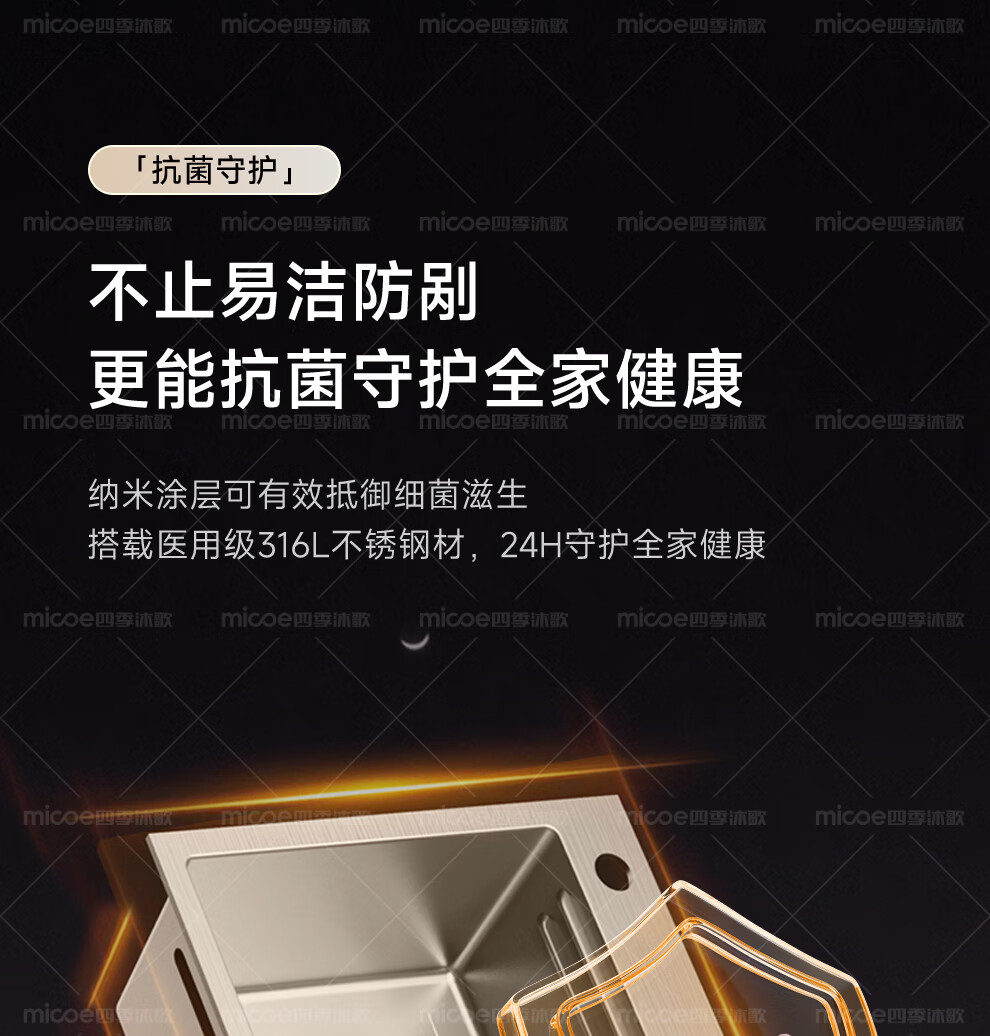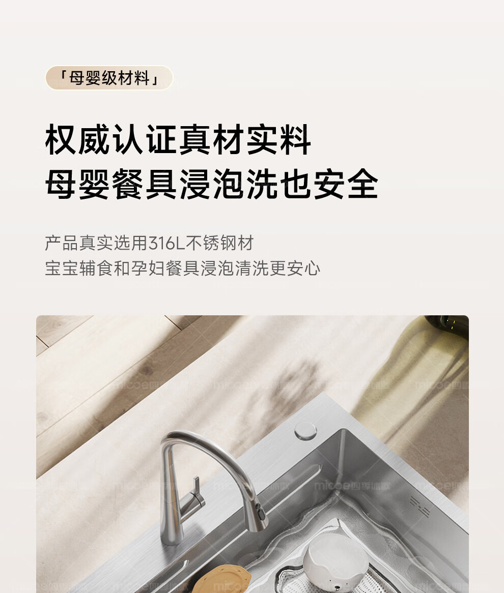 四季沐歌(MICOE)厨房手工水槽316L不锈钢洗菜盆洗碗槽大容量单槽 万家 【M-B120福禄盆L9】68*46/75*46 医用级316