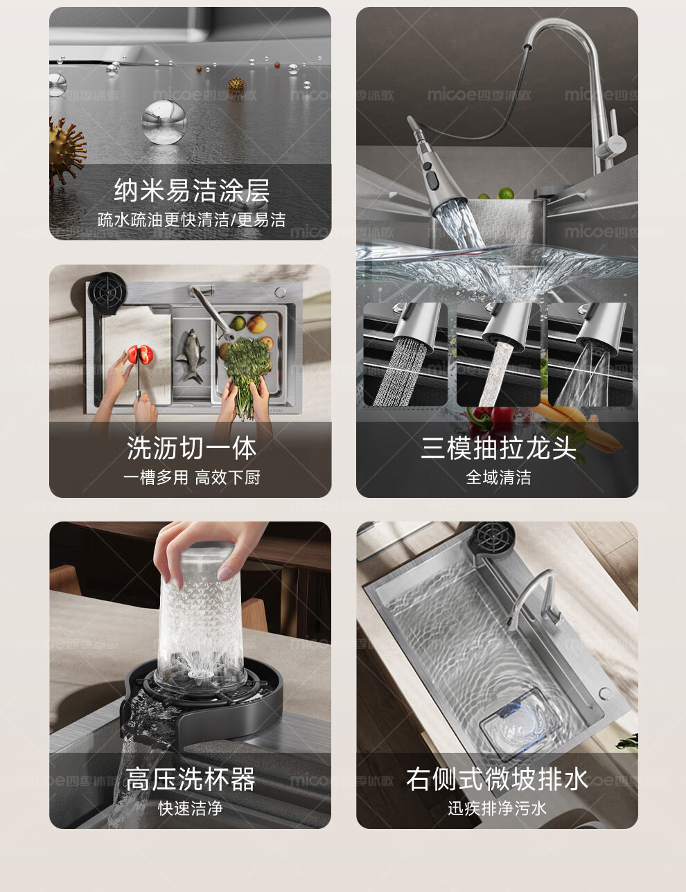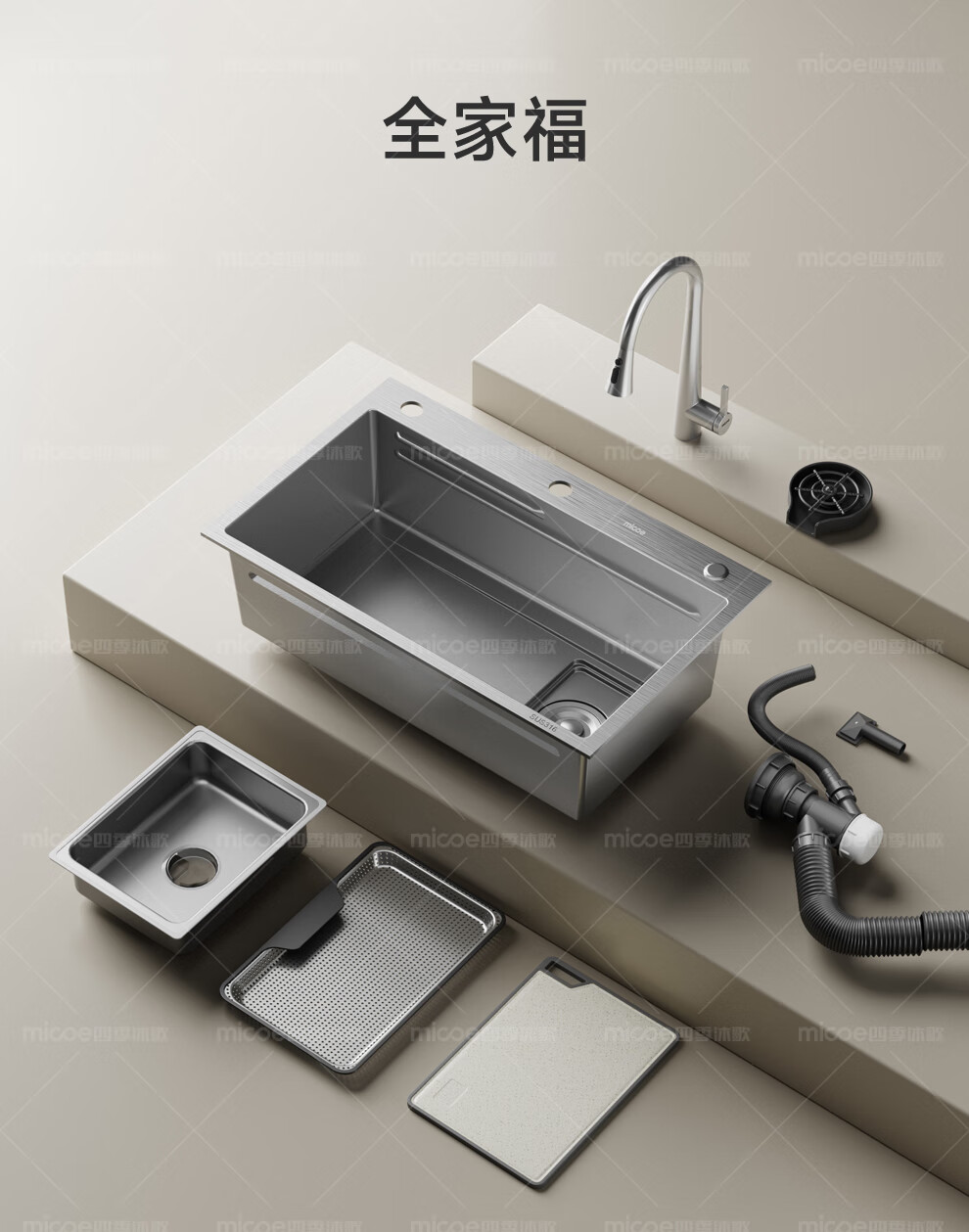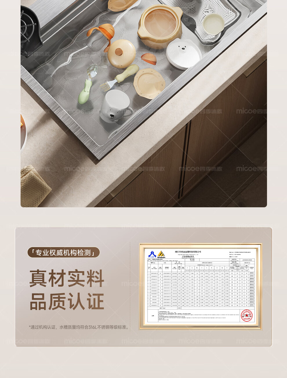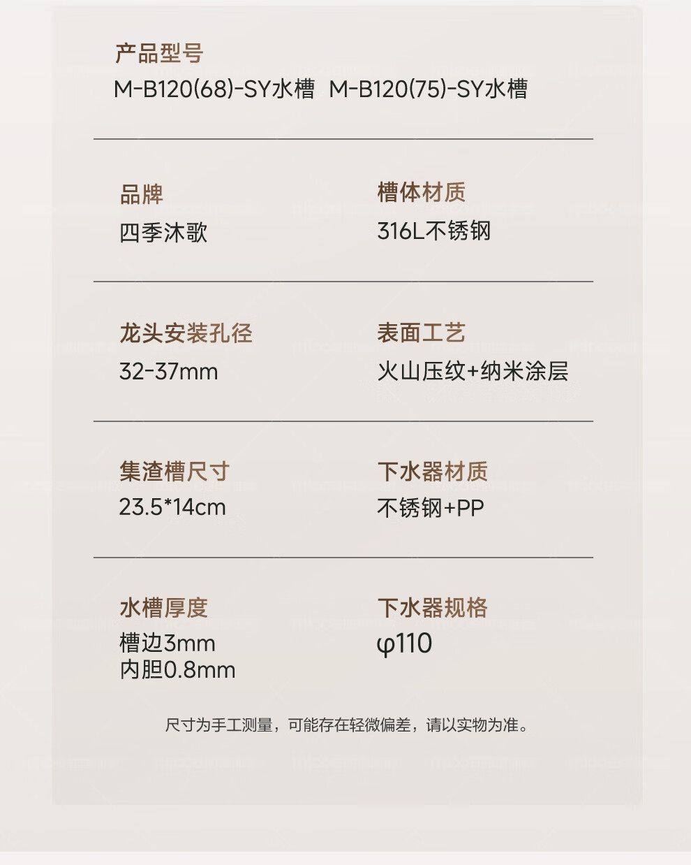 四季沐歌(MICOE)厨房手工水槽316L不锈钢洗菜盆洗碗槽大容量单槽 万家 【M-B120福禄盆L9】68*46/75*46 医用级316